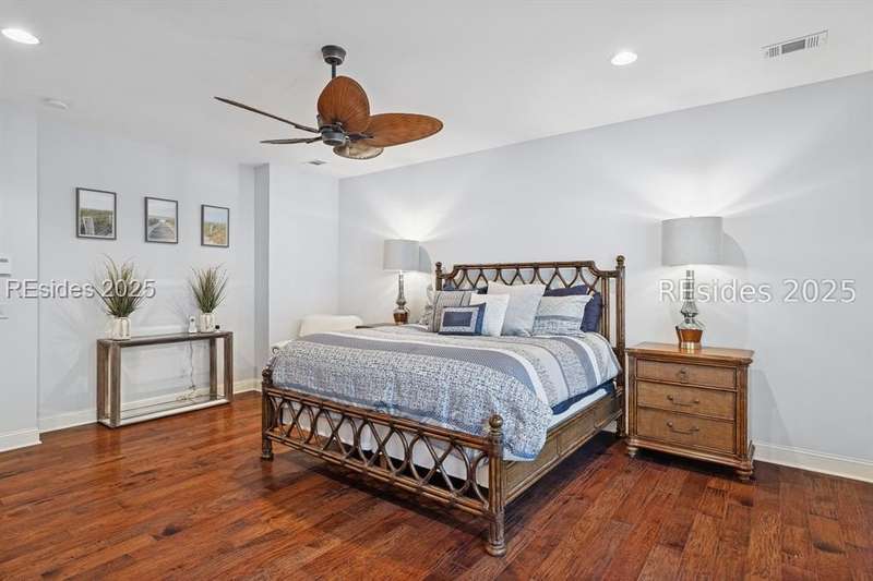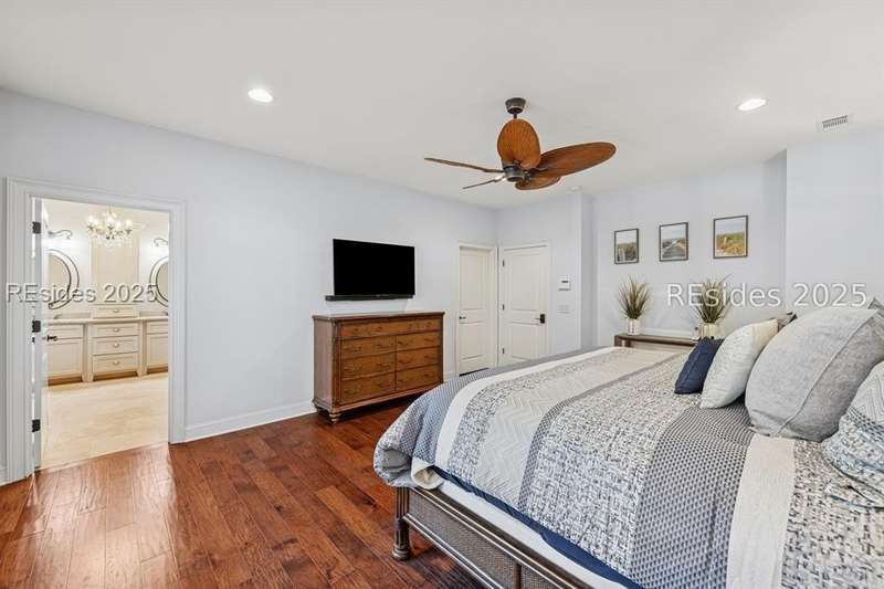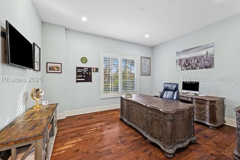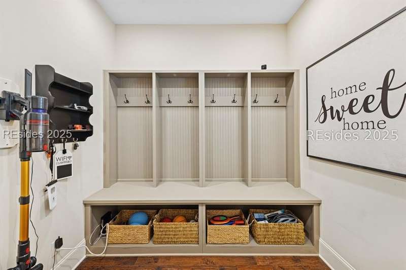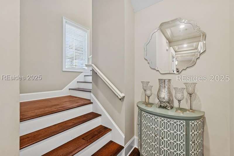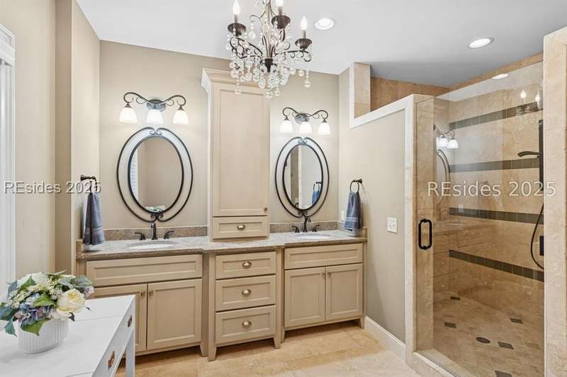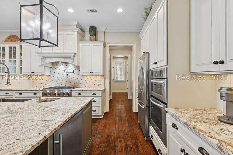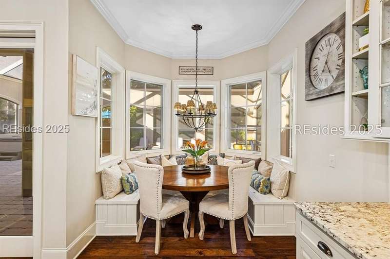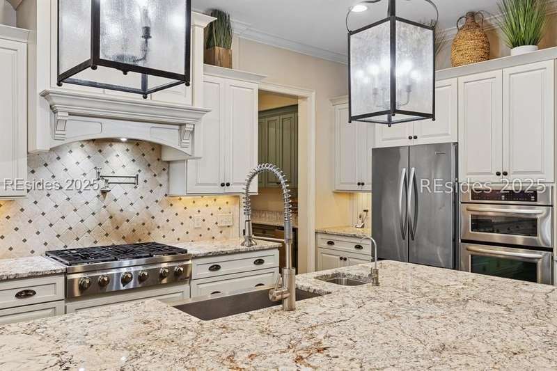 Exceptional custom home in Broad Pointe at Indigo Run offering an unparalleled indoor-outdoor living experience. Designed with a thoughtful layout, open floorplan and higher ceilings throughout, this nearly new home has been sparingly used as a second residence and is in pristine, move-in-ready condition. The heart of the home is the gourmet kitchen featuring a 6-burner gas cooktop, large island with seating, stainless farm and prep sinks, separate beverage fridge, plus a charming breakfast nook and butlers pantry with built-in cabinetry, wine cooler, and additional beverage fridge. The Great Room boasts a coffered, wood-inlay ceiling and striking stacked stone fireplace, and is open to the kitchen and dining room, creating a warm and inviting space for everyday living and entertaining. A first-floor guest bedroom with adjoining full bath offers direct access to the lanai and pool area. Additional functional spaces on the main level include a drop zone with built-in cubbies, 2-car garage, and outdoor shower. The screened lanai is enhanced by architectural walls with pavers surrounding a gorgeous pool, separate saltwater hot tub, and covered outdoor living area complete with a stacked stone fireplace, built-in grill, sink, beverage fridge, bar and dining area - perfect for entertaining or relaxing in privacy. Upstairs, the spacious primary suite includes a large walk-in closet and a luxurious bath with oversized shower featuring multiple shower heads. Two additional guest bedrooms (one with an ensuite bath) also offer walk-in closets. A large bonus room features custom built-in sleeping areas and storage drawers. The second floor also offers a full-size laundry room with sink and ample storage. Located on a private 0.7-acre cul-de-sac lot, this home provides purposeful privacy and the feel of an exclusive resort. Broad Pointe residents enjoy access to a private community pool, dock, and kayak storage, with optional membership to The Golf Club at Indigo Run or social membership. This à la carte-style membership has made this last and final development on Hilton Head one of the most sought-after communities on the Island. Just 7 minutes to shopping, dining, and Hilton Heads town-owned beach parks, this home perfectly balances luxury, convenience, and lifestyle.