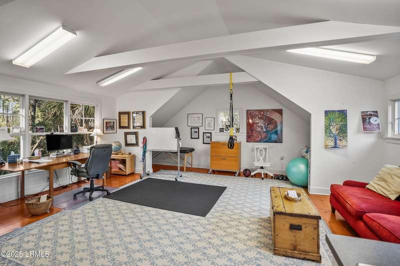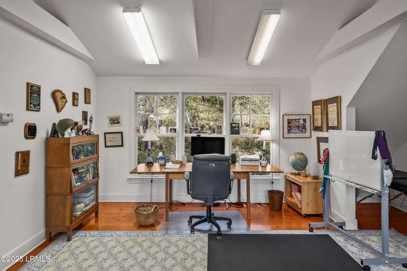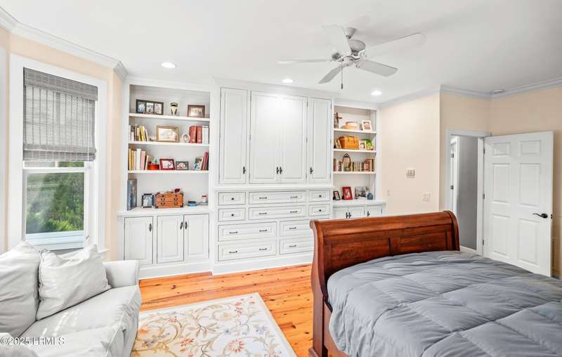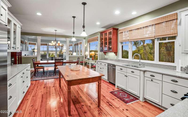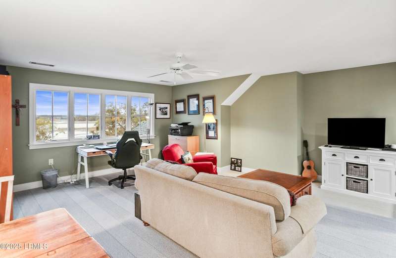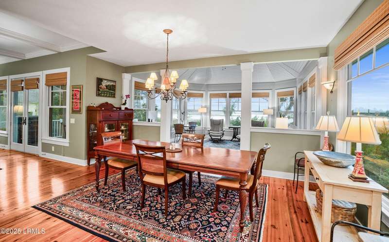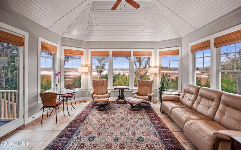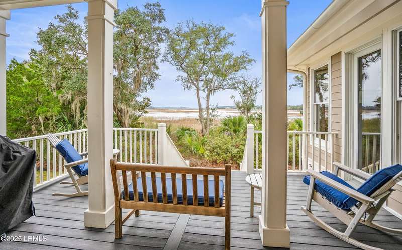 This custom-designed home is a true gem, perched on nearly an acre of land, offering breathtaking views of Jenkins Creek. As you approach, you'll be captivated by the home's harmonious blend with its natural surroundings. Inside, the spacious open floor plan invites you in, with an abundance of windows that flood the living space with warm, natural light and frame the stunning landscape beyond. The main living areas are adorned with 10 1/2 foot coffered ceilings, wood floors, elegant crown molding, and built-in features that add character and functionality. The heart of the home, the kitchen, is a chef's dream, boasting modern stainless steel appliances, ample storage, and a layout that seamlessly connects to the dining area and family room. This design allows you to enjoy the picturesque marsh and water views while cooking and entertaining guests, creating an inviting atmosphere for all occasions. On the first floor, the primary suite provides a serene retreat, thoughtfully designed with built-ins and drawers for optimal organization, and it offers a magnificent view of the tranquil marshes and waters of Jenkins Creek. Additionally, a spacious den/library on the main level provides versatility and comfort for relaxation or study. Venturing to the second floor, you'll discover three generously sized bedrooms, accompanied by a sizable living/gathering area perfect for guests. The bonus room offers endless possibilities, ideal as a hobby space, exercise studio, or additional storage to suit your lifestyle needs. Outdoor living is cherished here, with options to unwind on the charming front porch or spacious back deck, where you can soak in the beauty of your surroundings. Opportunities for bird watching, ranging from songbirds to larger species, and the delightful sight of dolphins can be experienced from this beautiful property. Adding to the allure, a natural marsh buffer on the right side enhances privacy. The meticulously crafted landscaping not only offers seclusion but also showcases the enchanting lowcountry vistas that make this property truly extraordinary! A two-car garage with a connected golf-cart bay completes this home on Jenkins Creek. Dataw Island is a private, waterfront community surrounded by Jenkins Creek and the Morgan River. Amenities are abundant, covering all interests and levels of competitiveness. A wide range of leisure activities are enjoyed by the community, along with clubs, volunteer opportunities and wildlife viewing. Membership in the Dataw Island Club is required. This material is based upon information, which we consider reliable, but because it has been supplied by third parties, we cannot represent that it is accurate or complete, and it should not be relied upon as such.