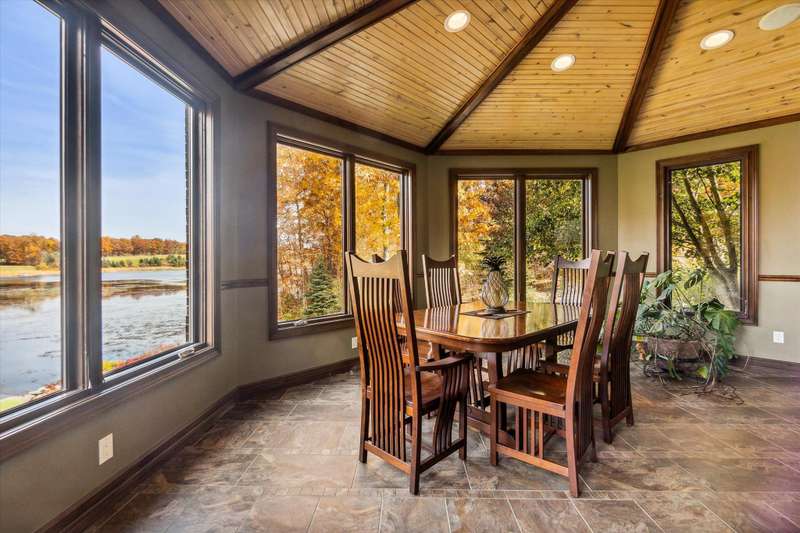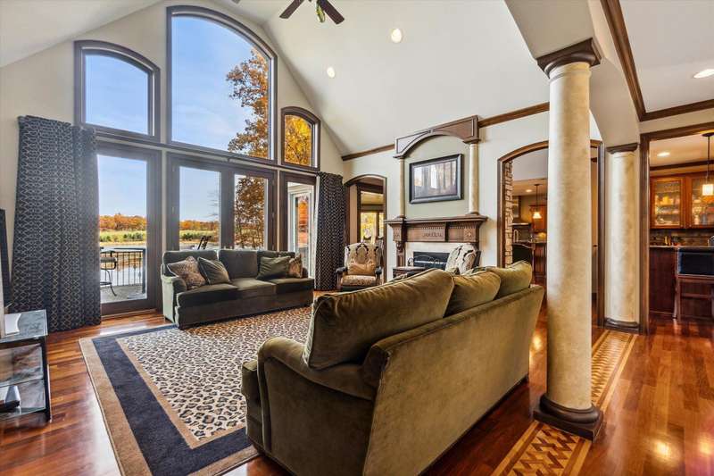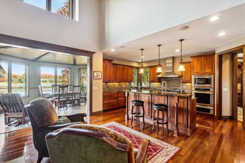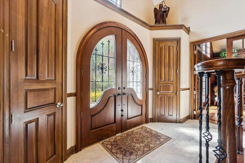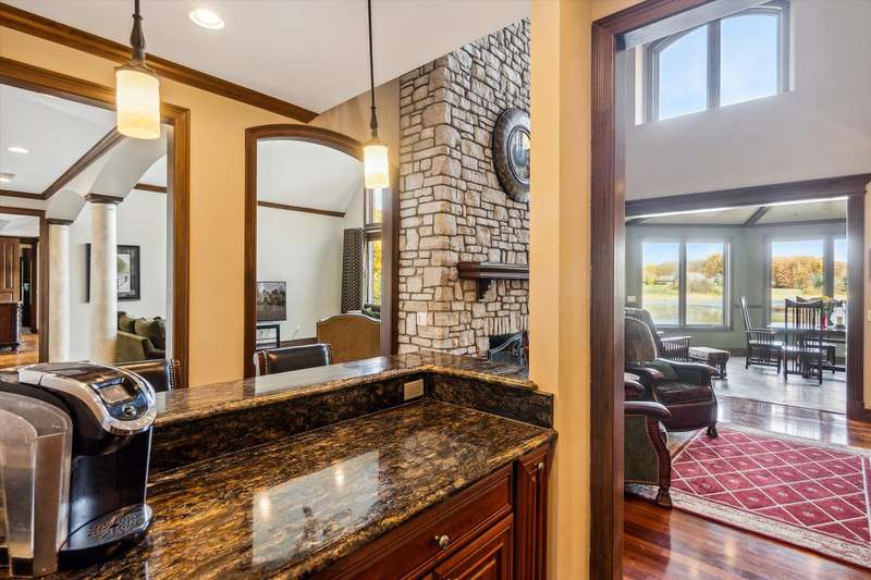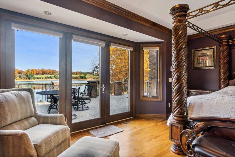 Private Lakefront Luxury on 14 Acres | Resort-Style Living with Every Amenity? Step into a world of refined lakefront living with this extraordinary 14-acre Country French estate—a true sanctuary of luxury, seclusion, and unforgettable memories. Tucked behind a private gated drive with a freshly sealed driveway, this custom brick-and-stone masterpiece offers over 7,000 square feet of exquisite craftsmanship designed for both relaxation and grand entertaining. Inside, discover a chef’s dream kitchen featuring granite countertops, Brazilian cherry floors, a wet bar, 3 Thermador ovens, and a 6-burner stove. The main-floor primary suite is pure indulgence with heated floors, a hydro jet tub, and a custom walk-in closet. The two-story hearth room stuns with a dual-sided fireplace and flows into a four-season sunroom offering panoramic lake views and heated floors. A dedicated home office with a fireplace and private entrance makes working from home serene and seamless. The finished walkout lower level is built for entertaining—complete with a full bar, home theater, game room, cedar sauna, and 1.5 baths with a 6th non-conf BR ready to finish. Outdoors, enjoy your private paradise: a heated saltwater pool and spa with a cabana, a lakeside gazebo with a custom stone fireplace, electricity, bar fridge, and plenty of storage for outdoor entertaining. The kids' imagination will take them anywhere in their storybook cedar loft playhouse, complete with electricity, a fireplace, and an intercom system. Your private lake is ideal for swimming, fishing, and kayaking. A whole-house generator adds peace of mind, while an additional heated detached garage offers flexible storage or workshop space with a loft. Whether you're seeking a year-round retreat, multigenerational homestead, or a luxury family compound, this rare estate has it all—privacy, elegance, and adventure, all on one pristine waterfront setting. Now including the 8.81 adjoining acres.
