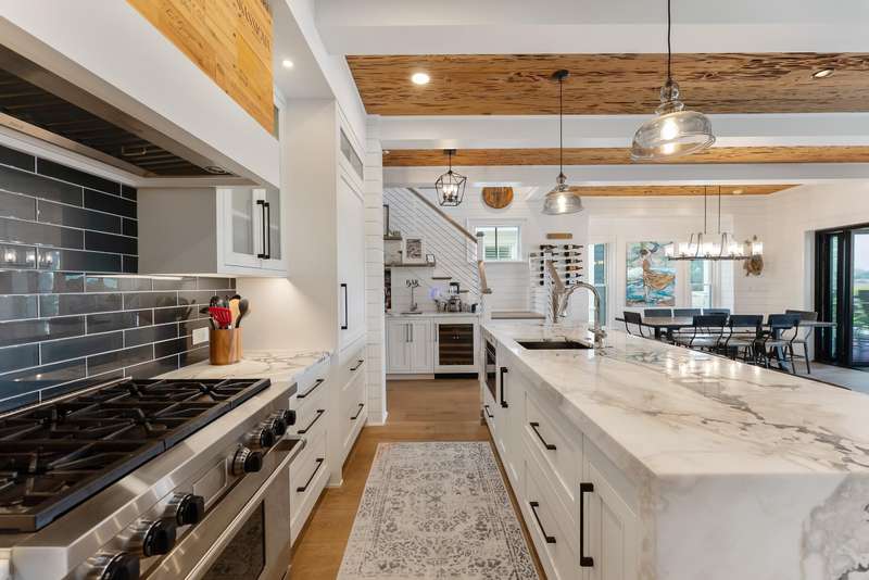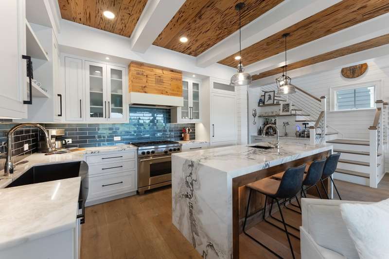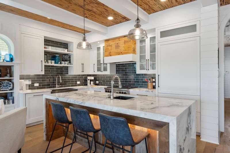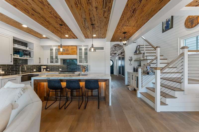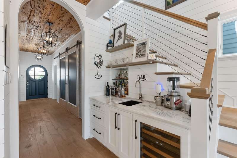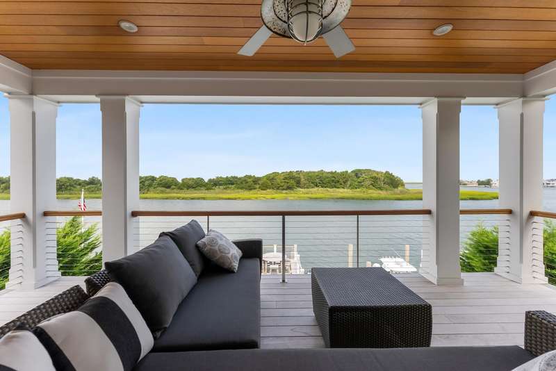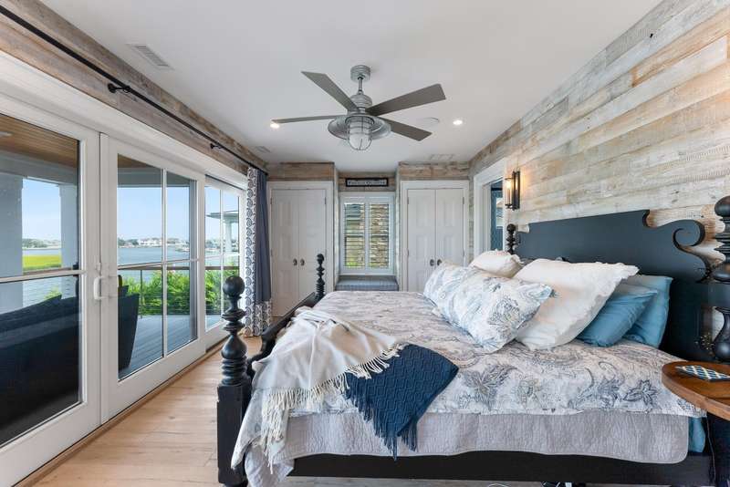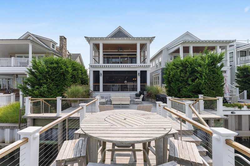 STONE HARBOR BAYFRONT LIVING AT IT'S BEST! Vino Su l'acqua (""Wine on the Water"") - Coastal Elegance Meets Bayfront Luxury. Welcome to Vino su l'acqua, a name that perfectly captures the essence of this peaceful, luxurious escape fabulous unobstructed views of the bay, wetlands and waterfowl habitat. This well thought out home was designed by the architectural firm of Asher Slaunwhite with much influence from Mark Asher. The home was constructed by renowned custom builder D.L. Minor and is positioned gracefully on a premier, quiet street, offering the ultimate in privacy, design, and waterfront living. From the moment you enter, you're greeted by masterful design and craftsmanship, including gorgeous, reclaimed wood accents and custom millwork throughout the home, pecky cypress wood and beamed ceilings, engineered wide plank hardwood floors, and thoughtfully curated high-end finishes throughout. The second-floor primary suite spans the full width of the home, offering breathtaking panoramic bay views through an oversized sliding glass door leading to a massive, covered deck-complete with a private wet bar and Sub-Zero wine fridge, perfect for sipping wine on the water. The spa-inspired en-suite bathroom features dual sinks, a custom open vanity, shower/tub combination with a rain head, barn-style glass doors, separate water closet, and custom open shelving. Additional interior features include a spacious custom bunk room with built-in storage, custom built-in cabinetry framed by large picture windows for abundant natural light, striking iron and wood pantry doors, and a designer kitchen with top-tier paneled appliances, multiple sinks, a cascading waterfall island with refrigerator drawers, a custom hood vent, and a luxury glass tile backsplash. The rooftop deck offers sweeping, elevated views of the bay and intracoastal waterway and serves as a true private oasis. An integrated alarm system offers peace of mind. Indoor-outdoor living is elevated by a show-stopping NanoWall that seamlessly opens the interior to an expansive screened-in porch with a brick gas fireplace, automatic hurricane shutters, and motorized screens-blurring the lines between indoor comfort and outdoor serenity. Step onto the one-level bayfront deck, adorned with elegant outdoor lighting, leading to a custom ramp and floating dock with two private boat slips-perfect for fishing, boating, or simply soaking in the sunsets. Smart home features include a fully integrated Control4 Smart Home System that has sonos speakers in every room can be operated from your phone via app with fully customizable remote access. The system controls deck screens and shutters, climate (heating and AC), lighting, and music in every room of the home-including the front porch, back porch, and outdoor deck-with seamless efficiency using Lutron lighting and intuitive design. After a day on the water, rinse off in your own luxurious brick-walled outdoor shower-a private, elegant touch that enhances your coastal lifestyle. Additional features include a welcoming full front porch, two off-street parking spaces, and built-in wine moments around every corner-fitting for the home's namesake. Vino Su l'axqua is not somply a home-it's a lifestyle on the water, where every detail is a testament to thoughtful design, timeless quality, and refined coastal living. Don't miss the opportunity to own Vino Su l'acqua, your own personal paradise-a true waterfront sanctuary where luxury meets tranquility, and every sunset is a masterpiece.