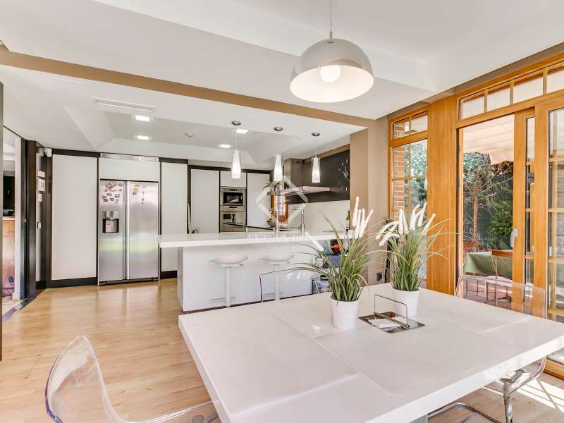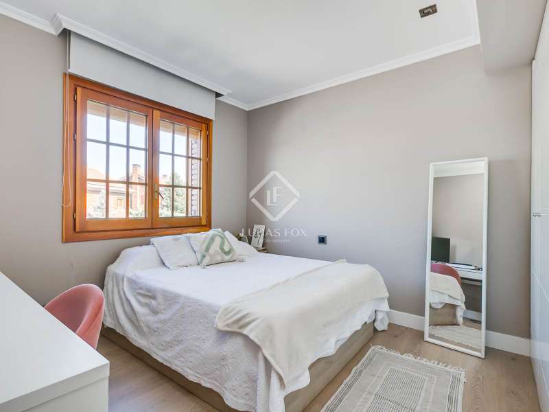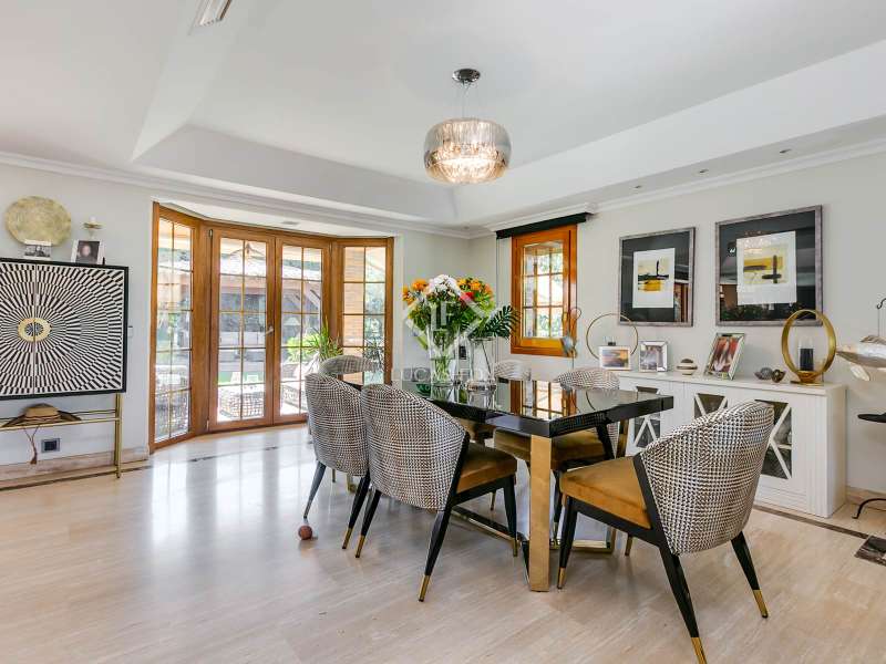 Discover this spectacular 456?m² detached villa, fully renovated with top-quality finishes, located in one of the most sought-after areas of Las Rozas de Madrid. Part of the prestigious Levitt development, this high-end residence offers the perfect balance of contemporary design, privacy, and comfort. Set on a private plot of over 600?m², the property features 5 spacious bedrooms and 5 full bathrooms, making it ideal for families seeking generous space, abundant natural light, and a practical layout. The villa showcases elegant architecture, wide floor-to-ceiling windows that seamlessly blend indoor and outdoor living, and a refined selection of premium materials throughout, including beautiful hardwood flooring. The heart of the home is a spacious, modern kitchen equipped with high-end appliances, a large countertop with breakfast bar, and an adjacent dining nook—, deal for cooking, casual meals, or entertaining guests in style. The expansive primary suite offers a peaceful retreat with a large private terrace overlooking the pool, perfect for relaxing in privacy. Outdoors, enjoy a beautifully landscaped garden, a private swimming pool, and a fully equipped barbecue area, your own oasis for hosting and unwinding under the sun. Additional features include a laundry room, a large basement-level entertainment area with home cinema and surround sound system, a private garage, a smart home automation system, and electric blinds throughout the property. Located in a secure and tranquil gated community, this exceptional villa offers privacy and convenience, with quick access to international schools, shopping centres, green spaces, and excellent transport connections to central Madrid. Please contact us for further information.