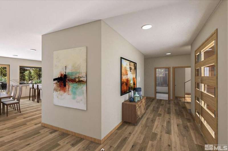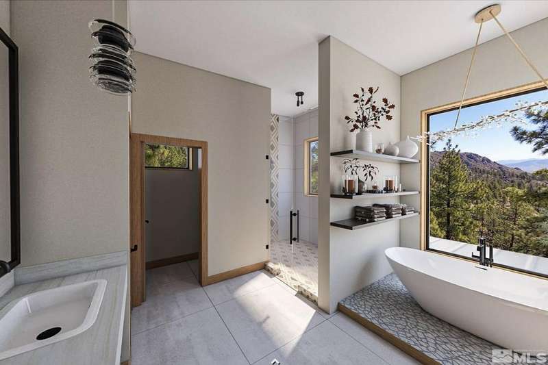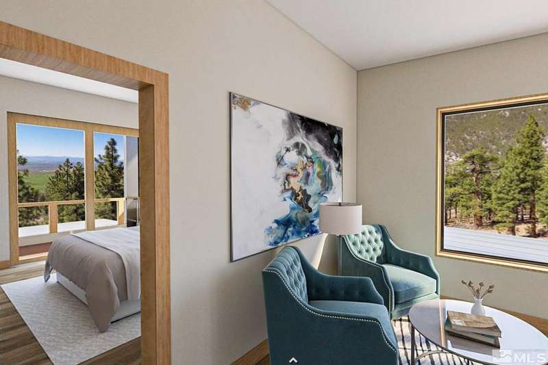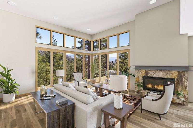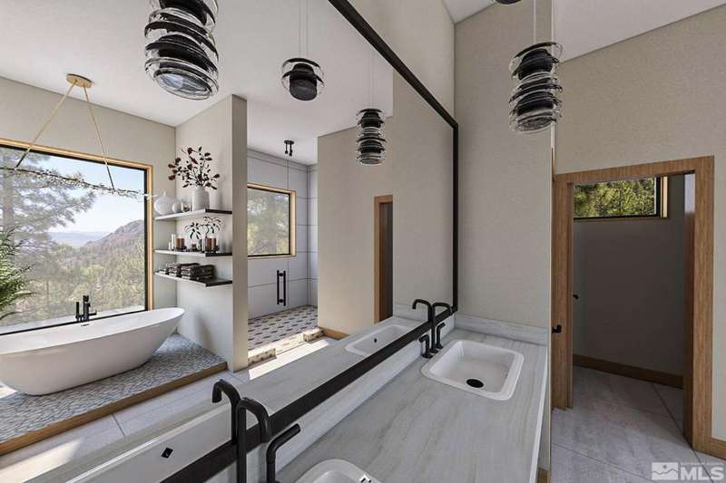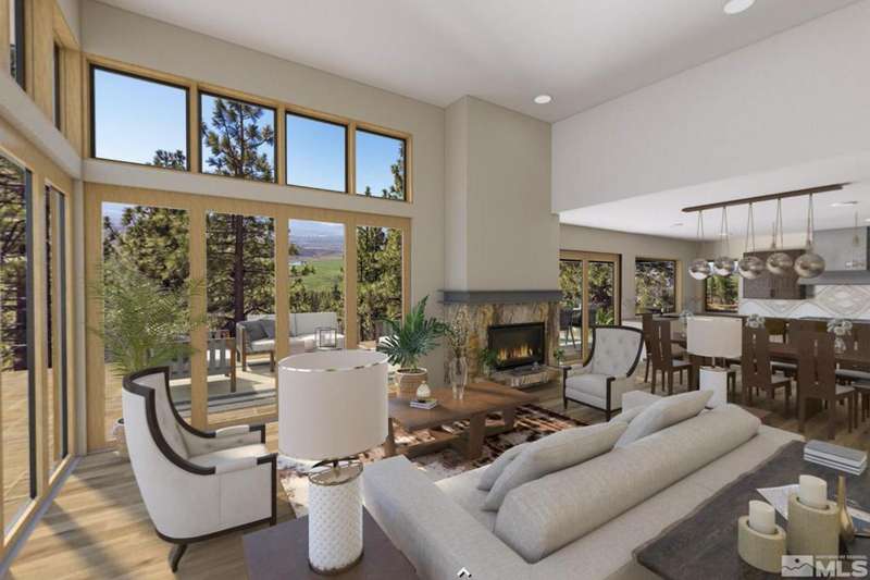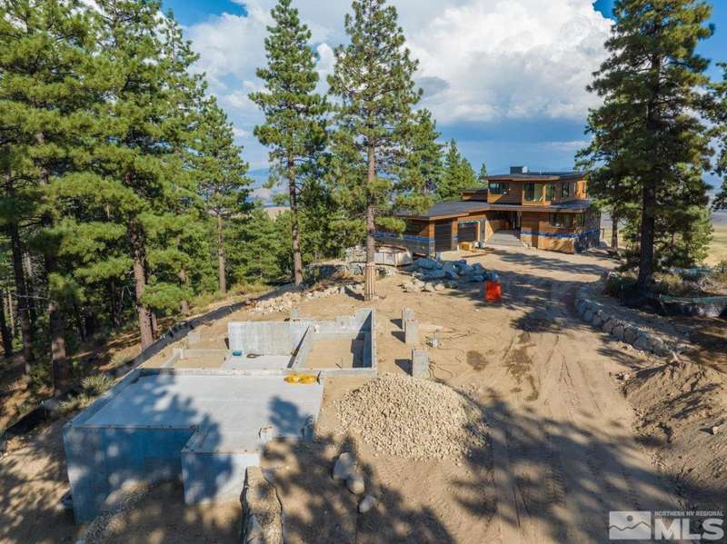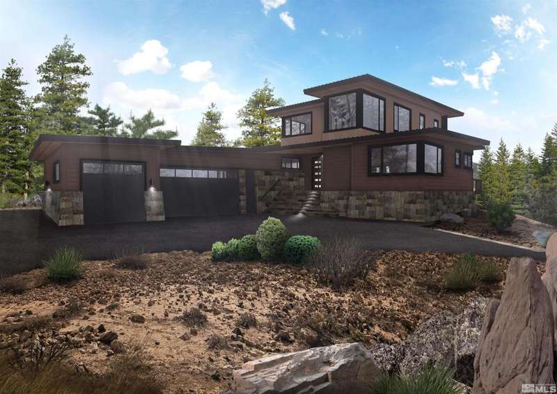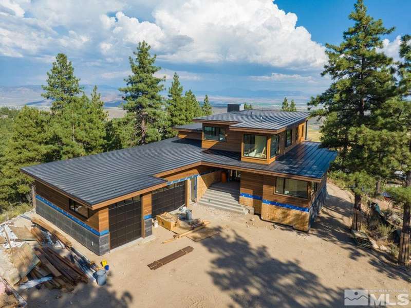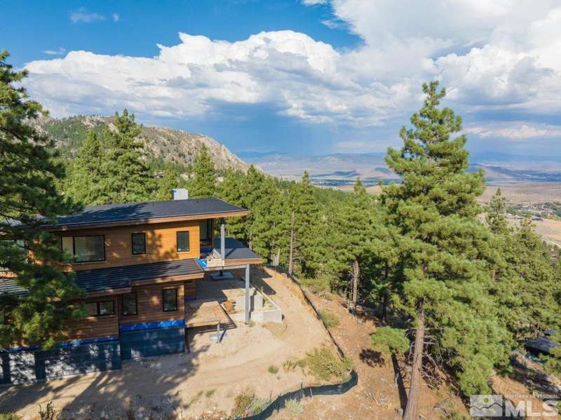 This exceptional property is truly one of a kind. Perched on a knoll high above Carson Valley, it offers breathtaking panoramic views in nearly every direction. Situated on one of Clear Creek Tahoe's premier view lots, the unique shape and topography of the land ensure unparalleled privacy. From the moment you drive along the winding driveway, a profound sense of serenity and seclusion envelops you. The main residence is gracefully positioned at the rear of the property, commanding a dramatic vantage point., The 3,587 square foot mountain contemporary home features an open floor plan and expansive walls of windows that frame the majestic scenery. Designed with feng shui principles in mind, the home showcases clean lines, spacious interiors, and abundant natural light to highlight the beauty of its surroundings. An oversized garage provides ample space for recreational vehicles, boats, or tandem parking. Additionally, the property includes a generous 1,800 square foot guest house, complete with a one-car garage, two bedrooms, a large living area, and a deck. Perfect for long-term guests, caretakers, or a tranquil workspace away from the main residence. At Clear Creek Tahoe, their vision is bringing together physical amenities creating a stage for a magnificent life experience. The nationally acclaimed golf course is fully mature and ranked number one residential course in Nevada. The Lake and Ski House allow members to enjoy 180' of sandy beach, water sports and shuttle service to Heavenly Ski Resort, and our newly completed Summit Camp offers swimming tennis, hot tub, water slide, bocce and more. Additional amenities include a spacious Clubhouse with workout/wellness facility open year-round.