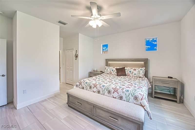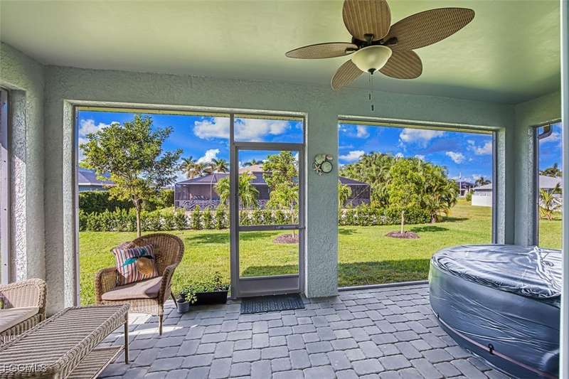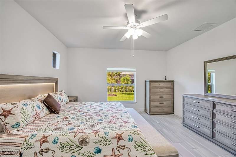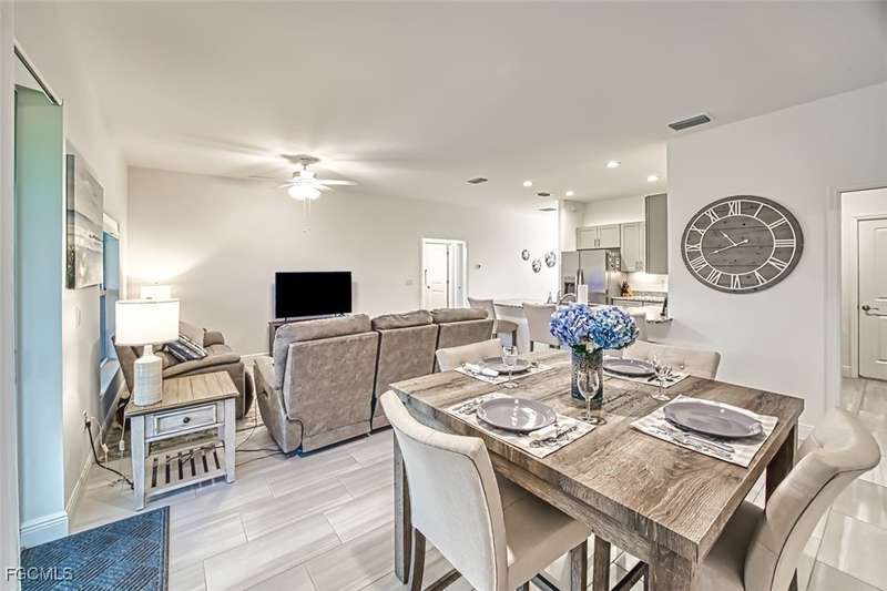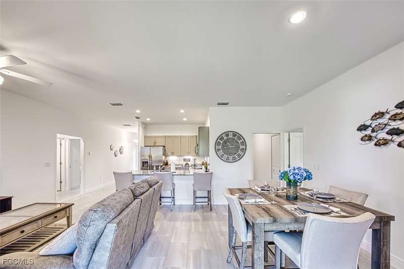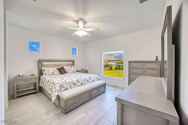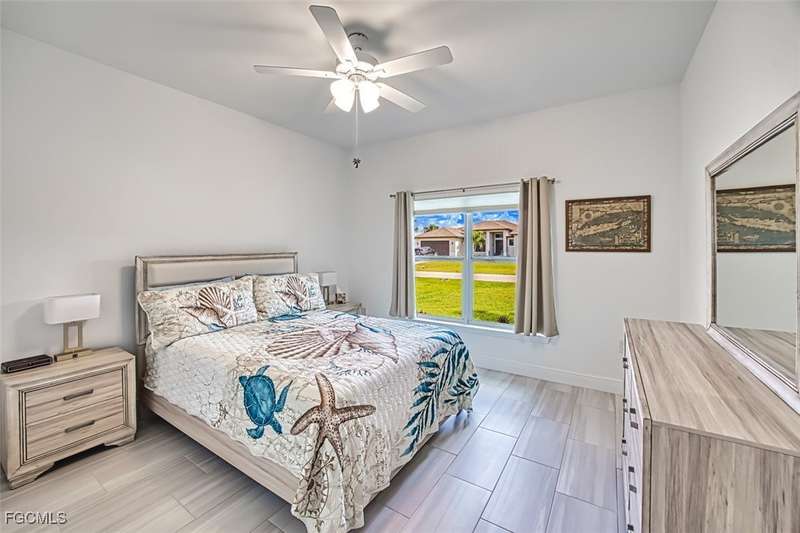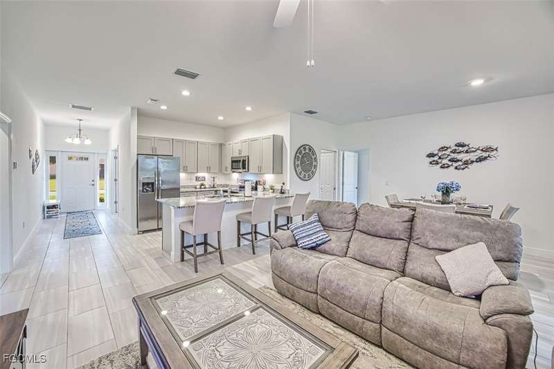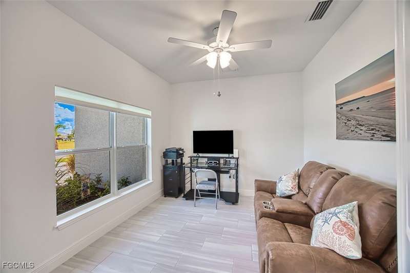 Why rent when you can own this exceptional NW Cape Coral home? Attention boaters and golfers, live here and you'll be close to the Burnt Store and Crystal Lake Boat Ramps and the Coral Oaks Public Golf Course, two of SW Florida's most coveted pastimes. This better-than-new home is move-in ready - every detail has been meticulously addressed. The spacious great room is ideal for entertaining and everyday living. The kitchen is a chef's dream with newer appliances, ample cabinetry, and a breakfast bar perfect for casual dining. The main suite is a true retreat with two walk-in closets and an ensuite bathroom featuring separate vanities and spacious walk-in shower. The two additional bedrooms are equally spacious and share the second bathroom. You'll also enjoy the spacious den, perfect for working at home. Outside, the home boasts a large, screened-in lanai-perfect for enjoying Florida's year-round sunshine. The backyard offers ample space for a pool, garden, or outdoor entertaining. Additional features of this home include a whole house reverse osmosis system, tile flooring throughout, an attached two-car garage, gutters, and storm shutters.
