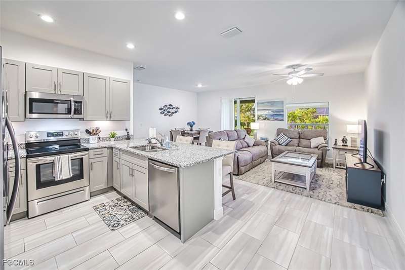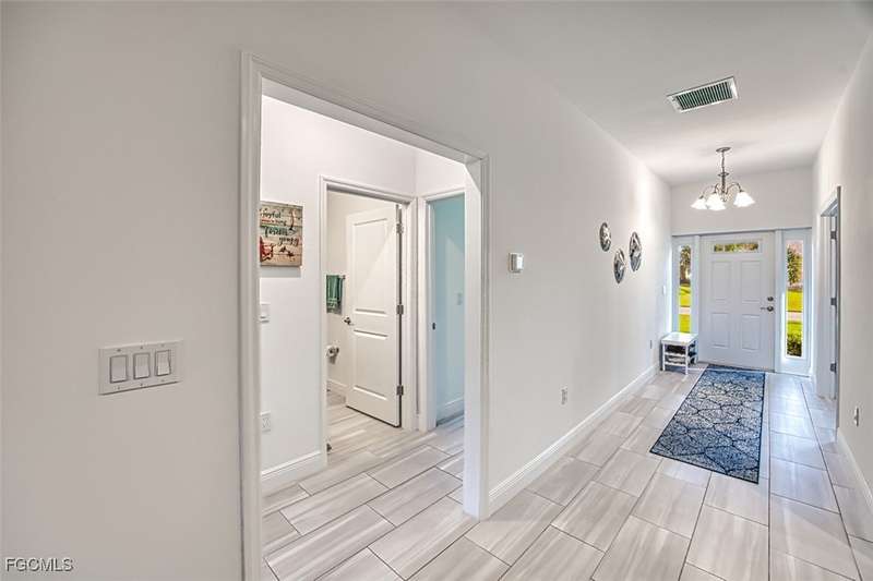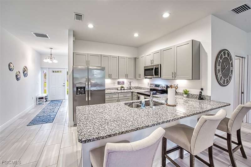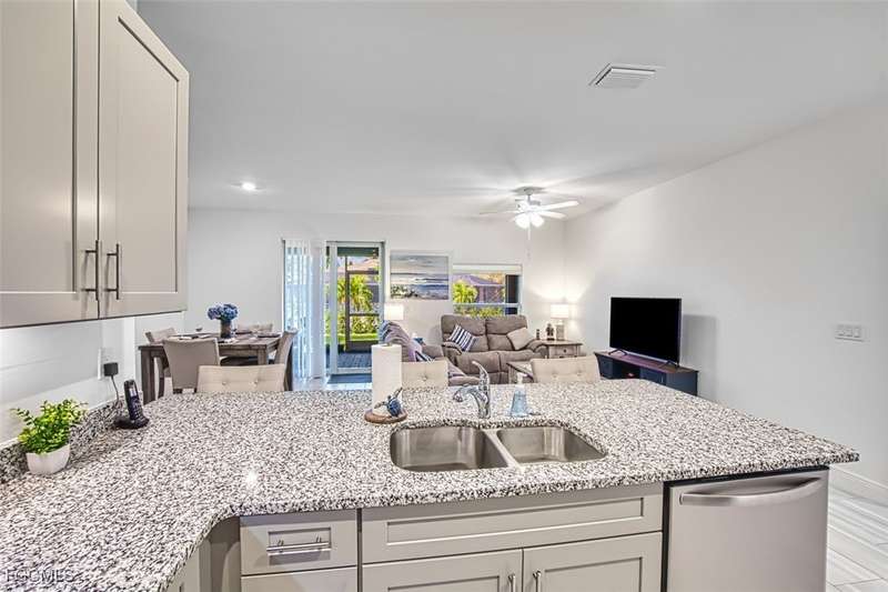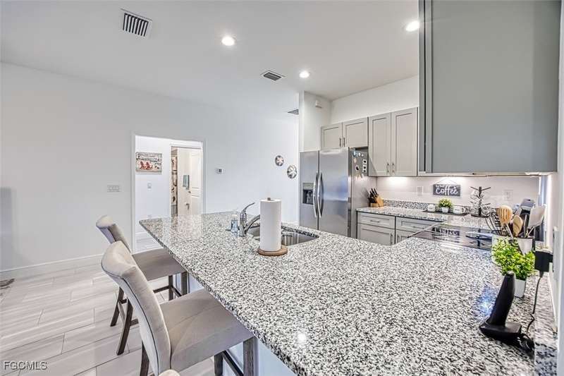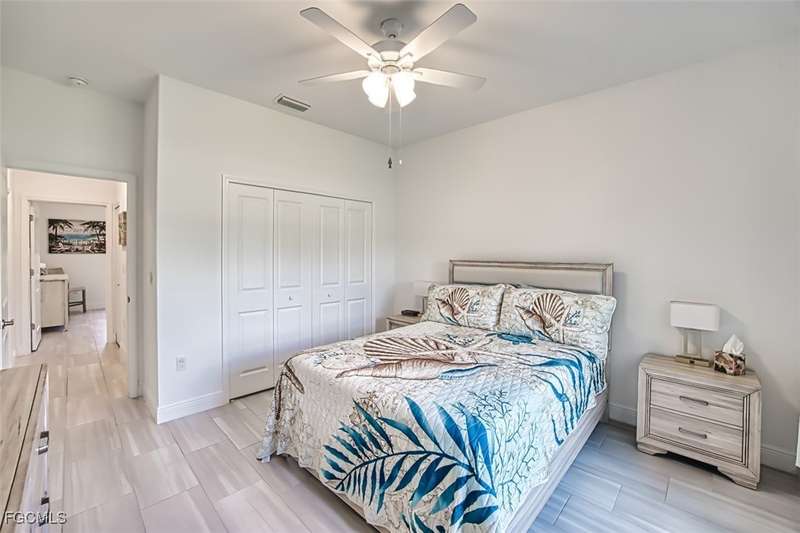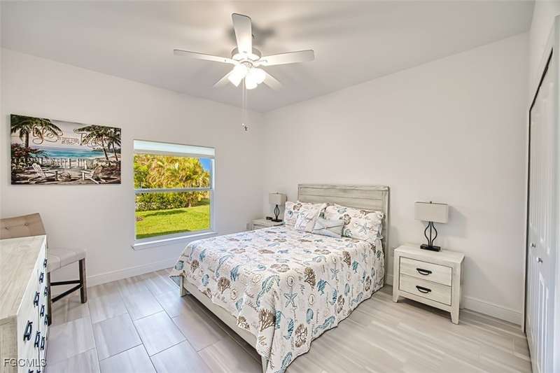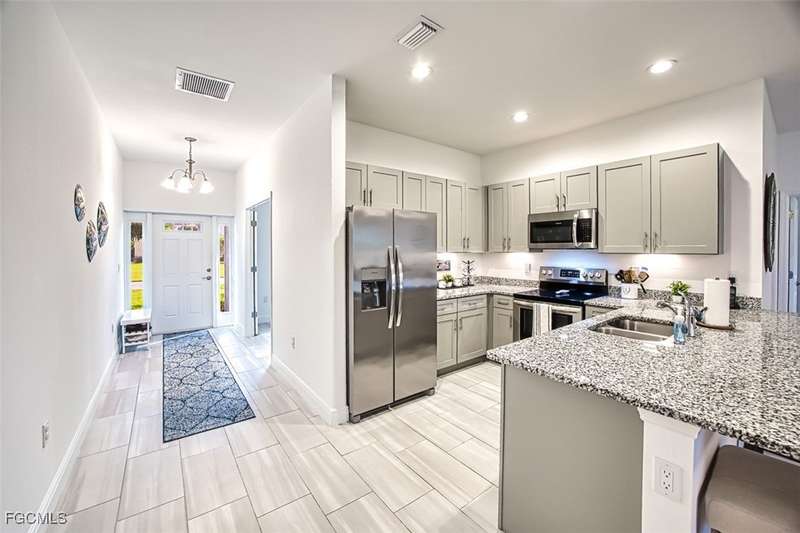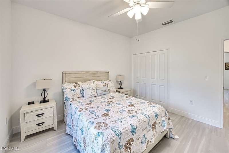 Why rent when you can own this exceptional NW Cape Coral home? Attention boaters and golfers, live here and you'll be close to the Burnt Store and Crystal Lake Boat Ramps and the Coral Oaks Public Golf Course, two of SW Florida's most coveted pastimes. This better-than-new home is move-in ready - every detail has been meticulously addressed. The spacious great room is ideal for entertaining and everyday living. The kitchen is a chef's dream with newer appliances, ample cabinetry, and a breakfast bar perfect for casual dining. The main suite is a true retreat with two walk-in closets and an ensuite bathroom featuring separate vanities and spacious walk-in shower. The two additional bedrooms are equally spacious and share the second bathroom. You'll also enjoy the spacious den, perfect for working at home. Outside, the home boasts a large, screened-in lanai-perfect for enjoying Florida's year-round sunshine. The backyard offers ample space for a pool, garden, or outdoor entertaining. Additional features of this home include a whole house reverse osmosis system, tile flooring throughout, an attached two-car garage, gutters, and storm shutters.