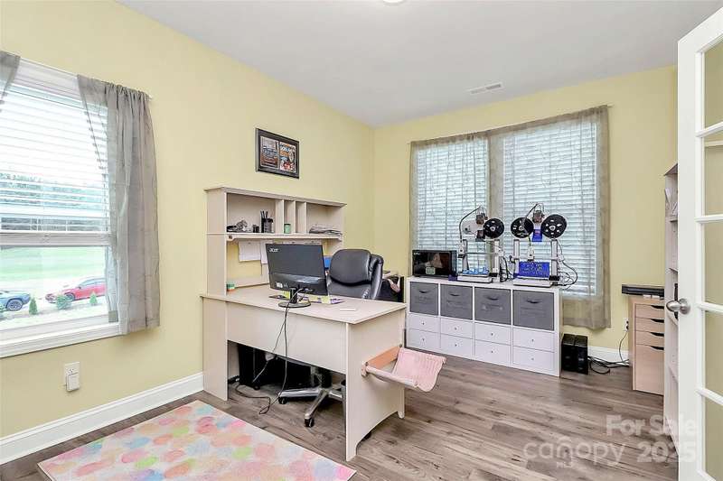 Welcome to country style living in Laurel Pines! Priced under appraisal ,this delightful home offers the perfect blend of comfort, elegance and space nestled on over an acre. Step through the front door and you'll immediately feel at home. To your left is a cozy library/sitting room ideal for moments of quiet reflection or casual conversation. Directly across the hall, discover a bright and functional office space. The heart of the home is a spacious kitchen featuring granite countertops and generously sized center island. Open layout flows into the living area that has a gas fireplace. The main floor primary bedroom with an en-suite bath. Upstairs you will find three spacious bedrooms. A large bonus room plus an extra room that could be a 2nd office!