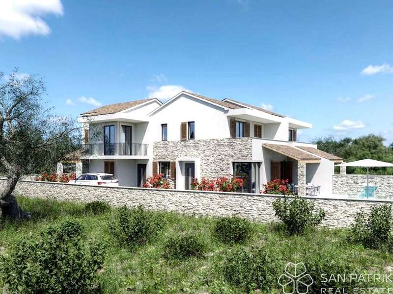 In a quiet part of Jezera on the island of Murter, a high-quality residential building with four modernly designed duplex units is in the final phase of construction. The building is conceived as a house divided into four parts, each with its own entrance, yard, and swimming pool.