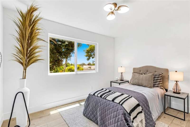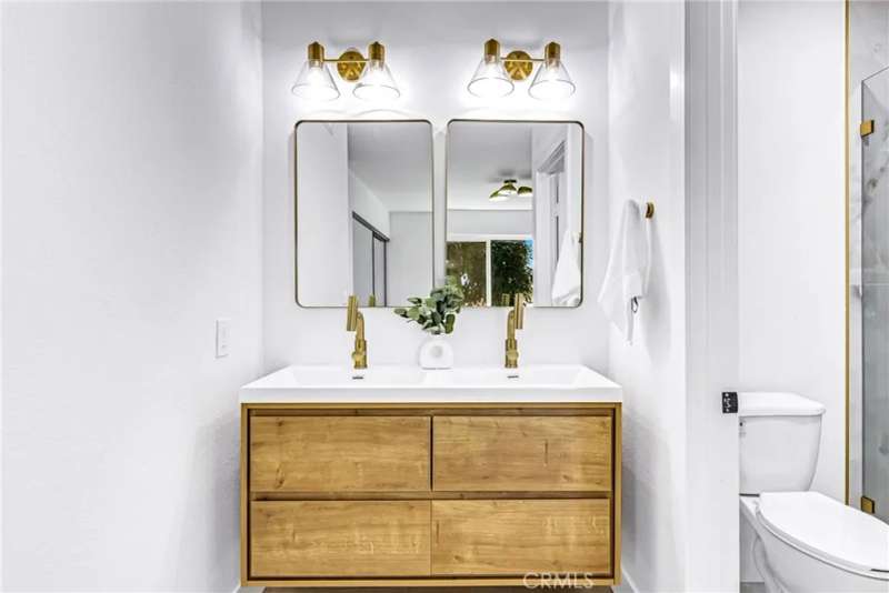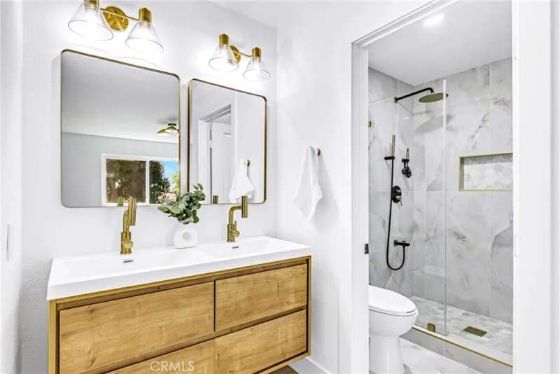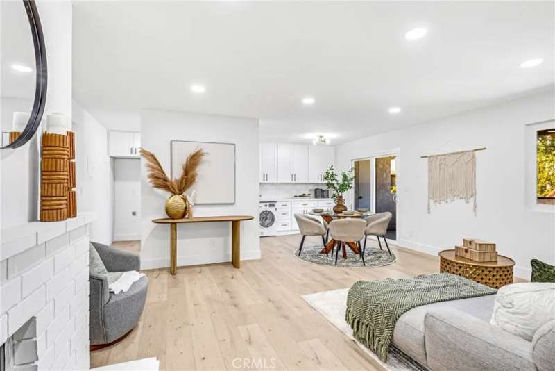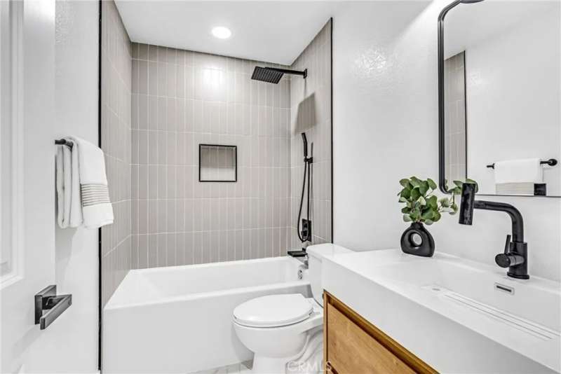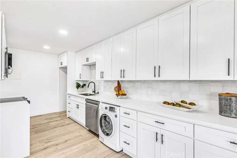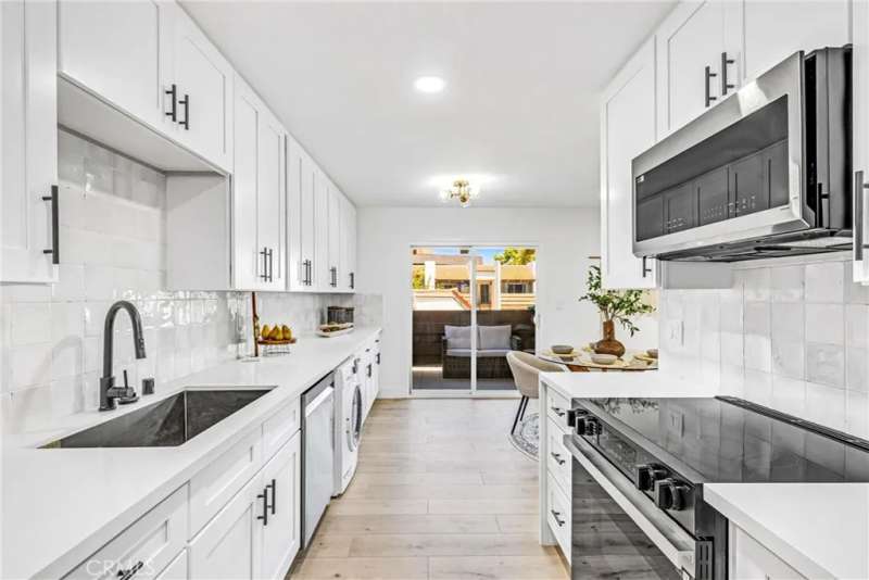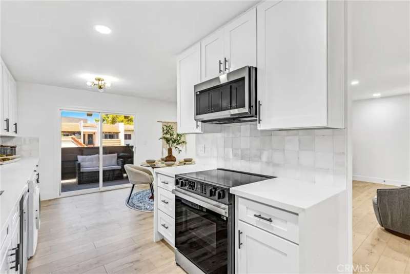 Nestled within the highly sought after Quail Meadows community, this meticulously renovated two-bedroom, two-bathroom condominium has it all! Showcasing a seamless integration of modern aesthetics and functional upgrades, evident in every aspect of its transformation, this unit certainly checks a lot boxes. The interior boasts elegant light oak laminate flooring, establishing a continuous and refined ambiance throughout the living areas. Energy-efficient dual-paned vinyl windows and doors further enhance comfort. The gourmet kitchen, a centerpiece of this residence, presents pristine white shaker cabinets equipped with soft-close, premium stainless-steel appliances and quartz countertops. A striking custom porcelain tile backsplash and contemporary black hardware elevate the culinary experience, while a conveniently located washer-dryer combination provides practical functionality. Both bedrooms feature en-suite bathrooms, creating private sanctuaries with mirrored closet doors that amplify the sense of space. The bathrooms have been meticulously reimagined, incorporating porcelain tile shower and bath enclosures, frameless shower doors, custom vanities, and harmonizing black hardware and fixtures. Climate control is effortlessly managed by central air and heating systems, ensuring year-round comfort. The unit overlooks the community pool and is just steps from the community's tennis courts. This prime Tustin location is minutes from great dining and entertainment options, shopping and fantastic schools are not far. This is the one! Welcome Home!
