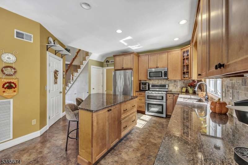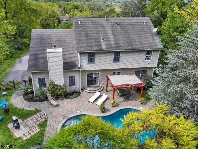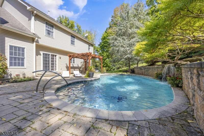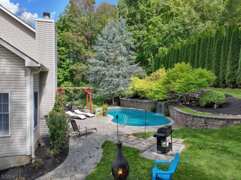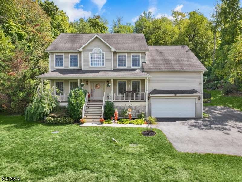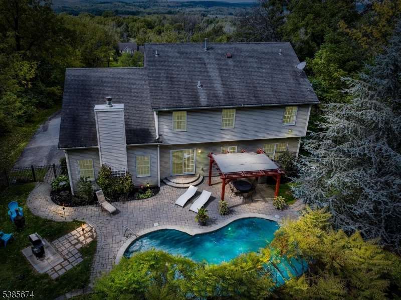 "Rated PG", Perfectly Grand, Colonial With Front Porch and Swing Over Looking the Tri State Area's Mountainside. This Home features an in-ground saltwater Gunite Pool with Water Fall, and custom landscaping, retaining walls, and large paver area for entertaining. Open floor plan with, custom stacked stone Gas Fireplace in Family Room. Large Eat in Kitchen with Granite and Center Island, leading to the Family Room. Den with French doors and custom-made bookcases. Study on Main Level, Foyer Entrance. The primary bedroom suite is a retreat in itself with walk in closet, jetted tub and stall shower. Four Spacious Bedrooms. Two and Half Baths. Living Room and Dining Room with Hardwood Floors. The partial finished Basement features an oak bar and gas Fireplace. Central Air. Two Car Garage.