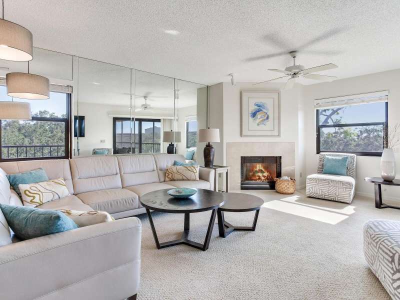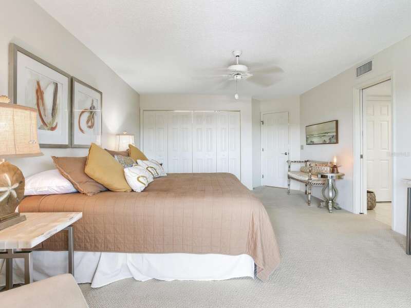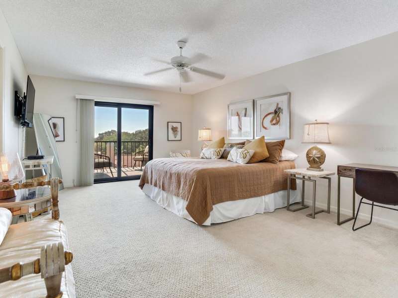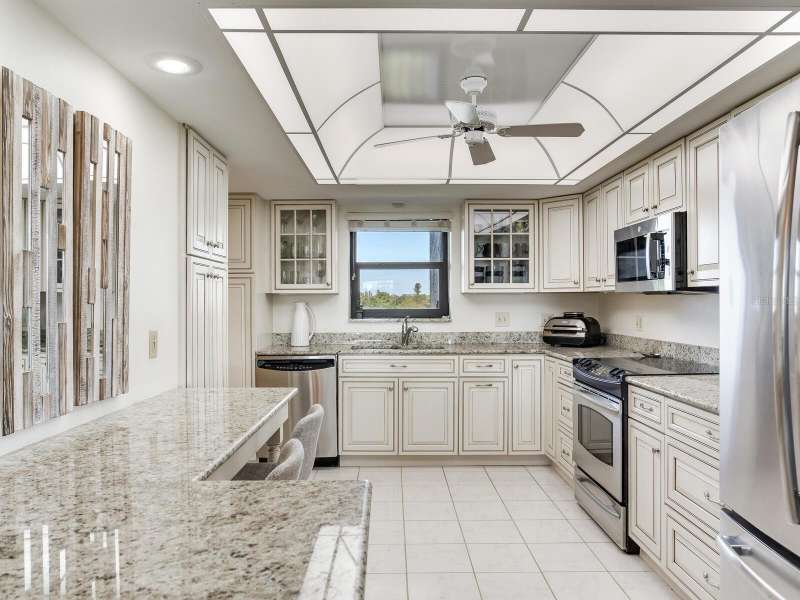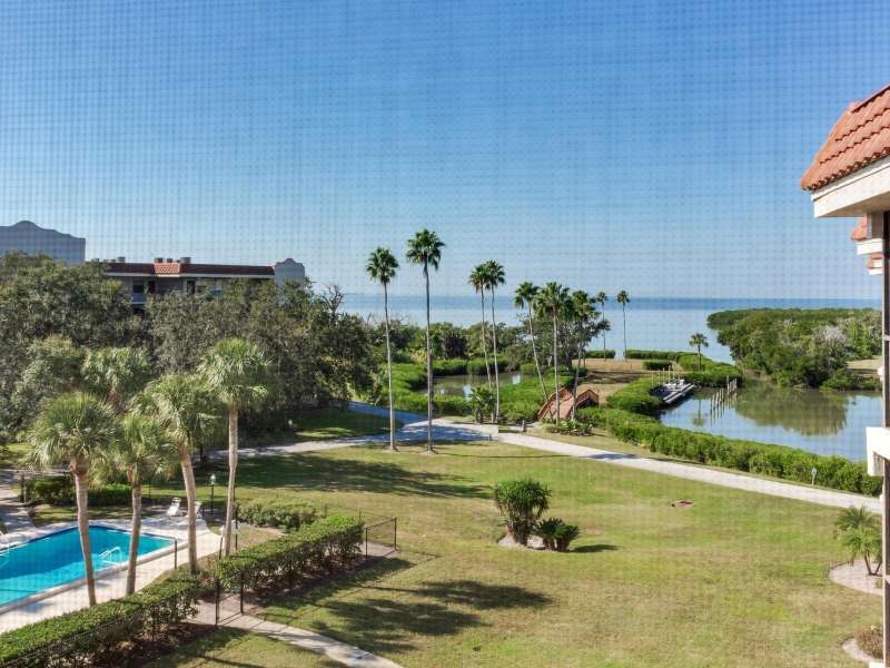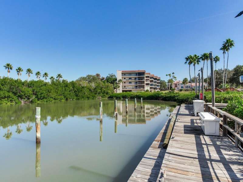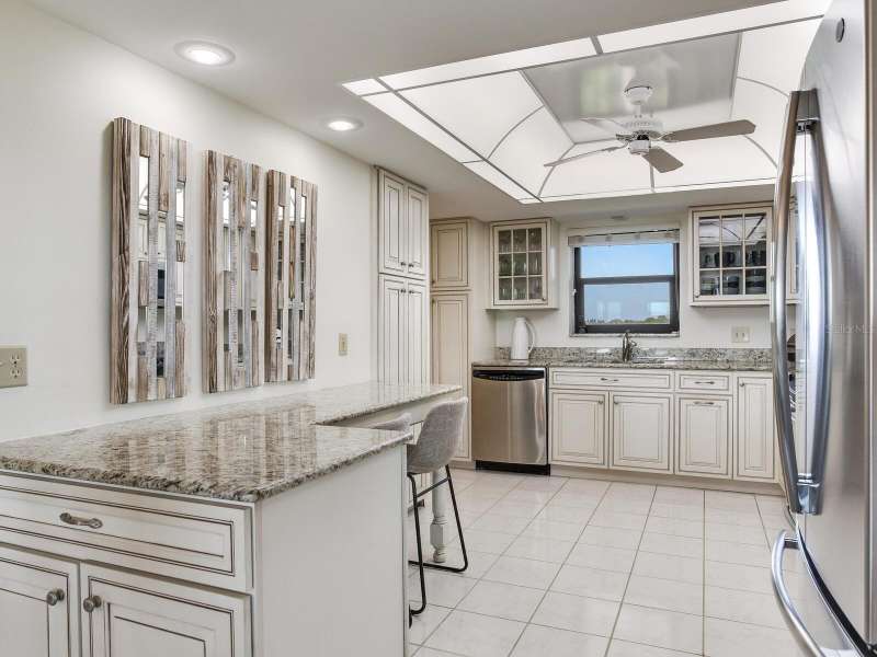 Experience Gulf-front living at its finest in this rarely available top-floor residence within the secure, gated community of Gulf Front Lagoon. Perfectly positioned on beautifully manicured grounds along the Gulf of Mexico, this beautiful furnished spacious 1,550 SF 2-bedroom, 2-bath corner unit offers sweeping water views, year-round sunsets, and the serene coastal lifestyle you’ve been dreaming of. Inside, an open and welcoming floor plan is filled with natural light with windows on 3 sides of the condo. The expansive great room features a dining area and a cozy wood-burning fireplace, while large sliders frame tranquil water vistas. The beautifully updated kitchen boasts custom cabinetry, granite countertops, and stainless-steel appliances. A convenient laundry closet with full-size washer and dryer completes the space. The generous master suite is a true retreat with abundant closet space, direct balcony access, and an en-suite bath offering dual sinks, a large shower, and a huge walk-in closet. The second bedroom also enjoys its own private entrance and an en-suite bath—perfect for guests. Additional highlights include updated sliding glass doors, and two expansive balconies, one stretching an impressive 49’ x 7’, ideal for savoring both sunrise and sunset. Enjoy resort-style amenities throughout this exclusive 40-unit community, including a renovated historic clubhouse with billiards, library, kitchen, meeting rooms, saunas, men’s and women’s showers, and fitness areas. Relax by the waterfront pool, grill at the BBQ area, or wander the private grounds with walking bridges leading to the peaceful lagoon. A fishing/boat dock, kayak and paddleboard launch, bike parking, and multiple storage options—including a private under-building storage closet, add unmatched convenience. Your designated garage parking space is located just steps from the elevator, with ample guest parking available. All this is located just minutes from Howard Park Beach, Sunset Beach, Tarpon Springs Golf Course, Downtown Tarpon Springs, the Sponge Docks, restaurants, shopping, and an easy commute to Tampa and St. Pete/Clearwater airports. Fees include cable, internet, building insurance, reserves, water/sewer, exterior maintenance, and roof, and the community has already passed its milestone study. Welcome home to Gulf Front Lagoon, where luxury, privacy, and the beauty of the Gulf come together in perfect harmony.