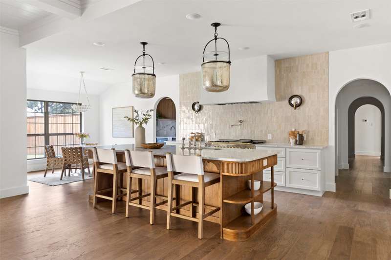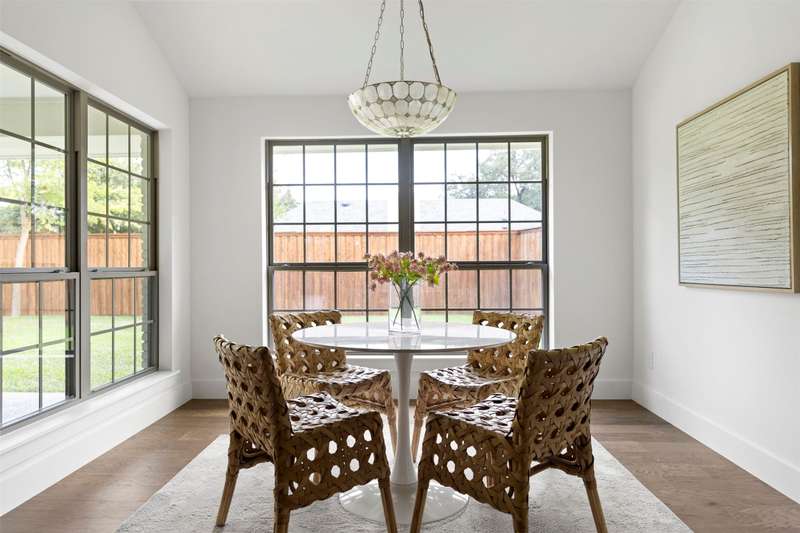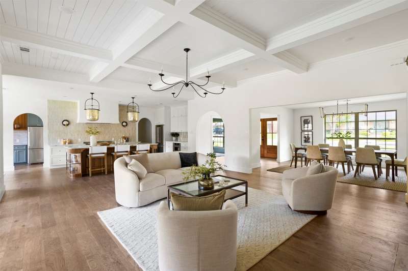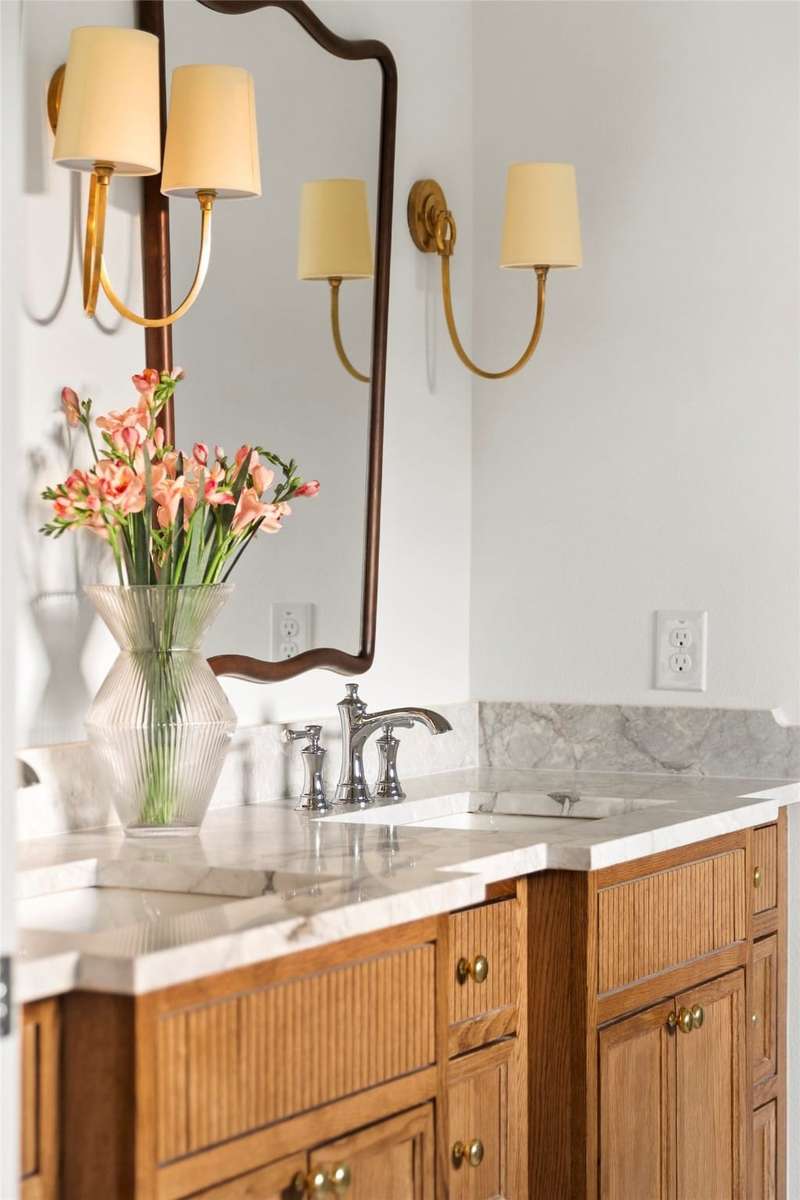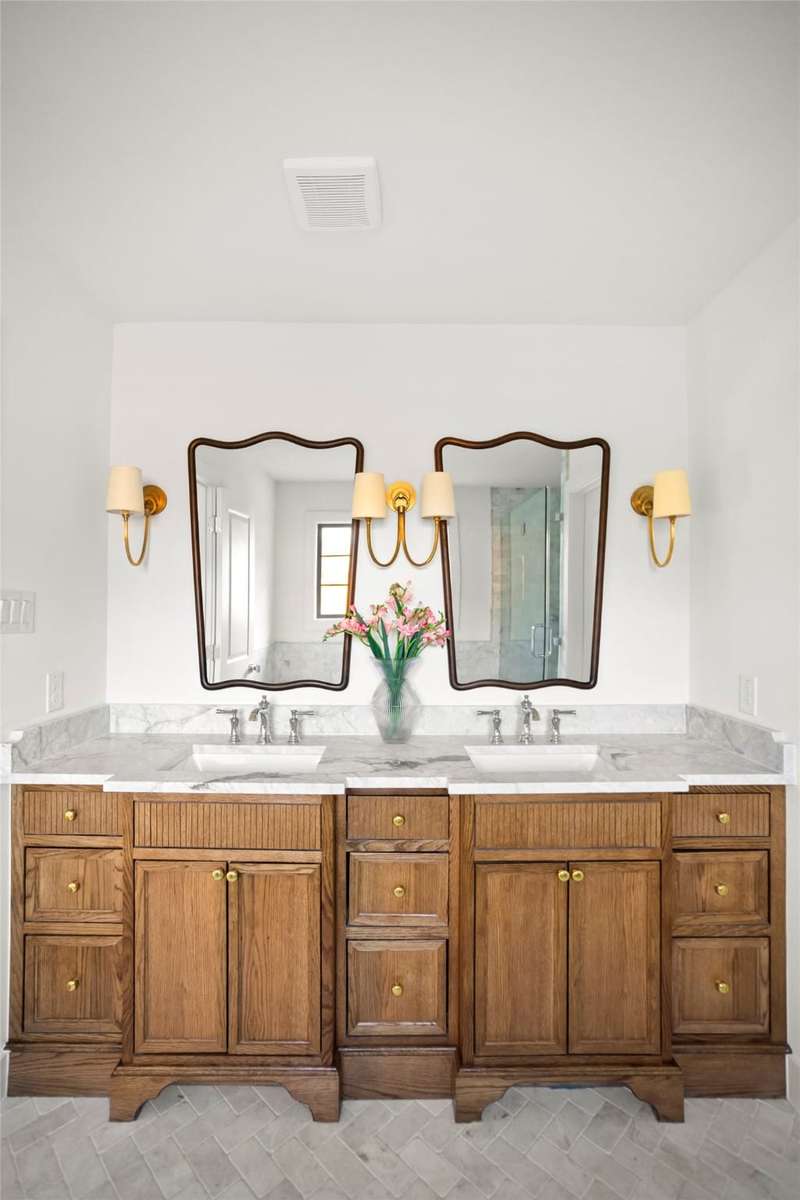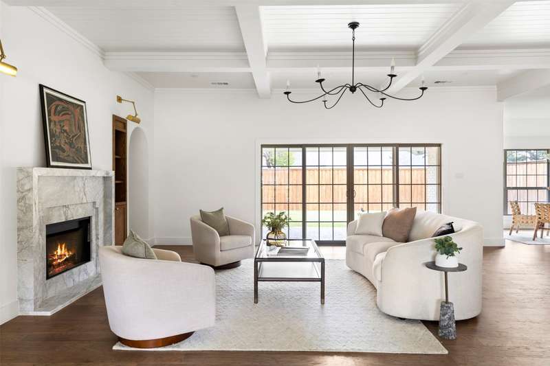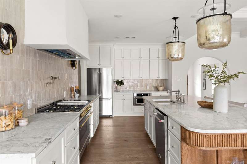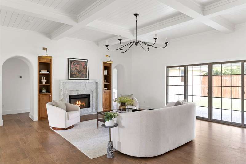 Meticulously renovated and designed by PAKX Homes delivers refined style and modern comfort in every detail. A dedicated home office with custom built-ins offers a quiet workspace, while the formal dining room sets the stage for entertaining. The open living area is anchored by a sleek marble fireplace flanked by custom oak shelving, creating a warm yet elevated feel. The kitchen is outfitted with a full suite of KitchenAid appliancesincluding refrigerator, dishwasher, and microwaveand features an Italian-made range as a standout centerpiece. A large butlers pantry with marble counters, oak shelves, second refrigerator and wine cooler adds storage and function without compromising aesthetics. Oak hardwood floors flow throughout the home, enhanced by designer lighting, brass fixtures, and custom millwork. The primary suite features a spa-style bath with double vanities, marble counters, a freestanding soaking tub, and an oversized walk-in shower. Down the hall are two other spacious bedrooms, with access to beautifully appointed jack-and-jill bathroom. The fourth ensuite bedroom, tucked privately behind the kitchen, serves as an ideal guest suitecompletely separate from the main living and entertaining areas. There's also a fifth flex room offers endless possibilities: fifth bedroom, playroom, media space, or home gym. Every inch of this property reflects thoughtful design, high-end materials, attention to detail and refined craftsmanship.