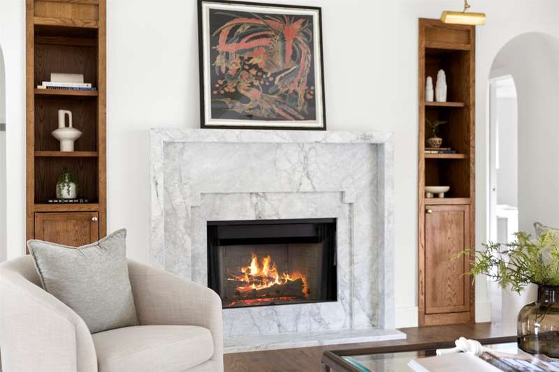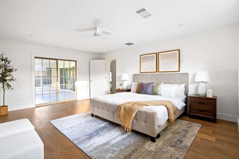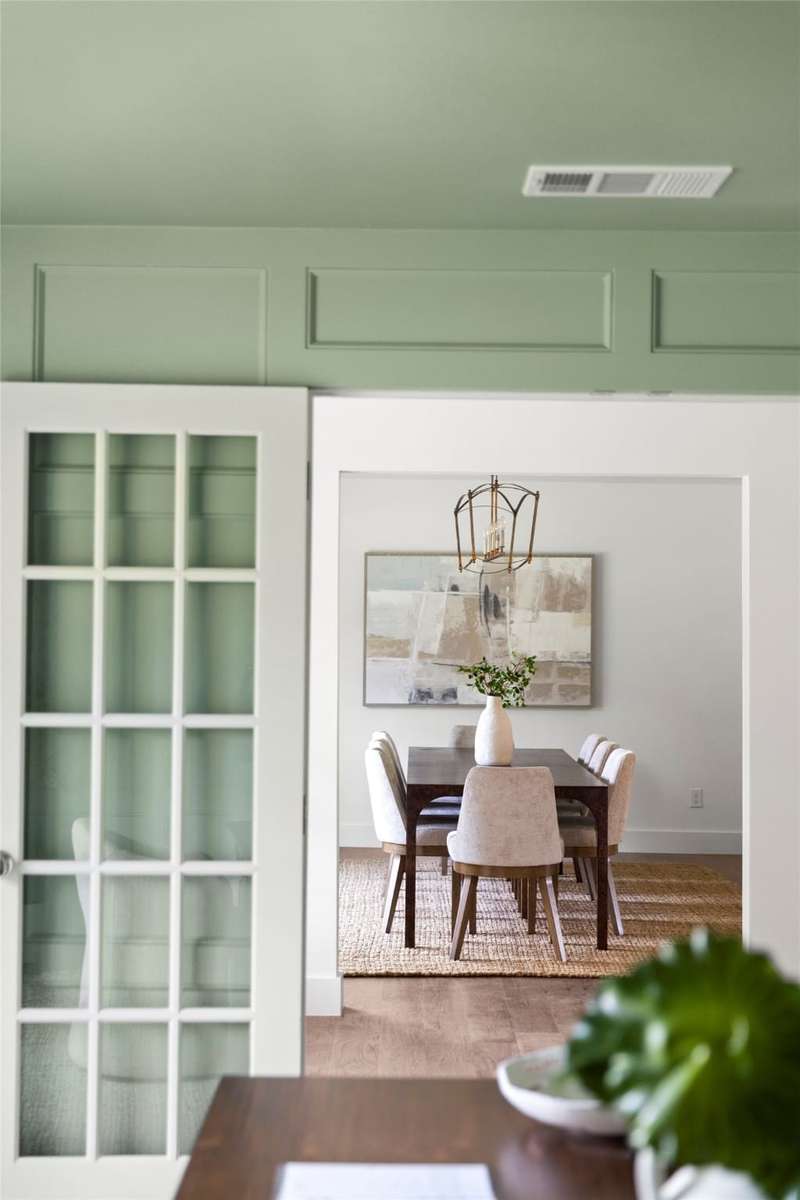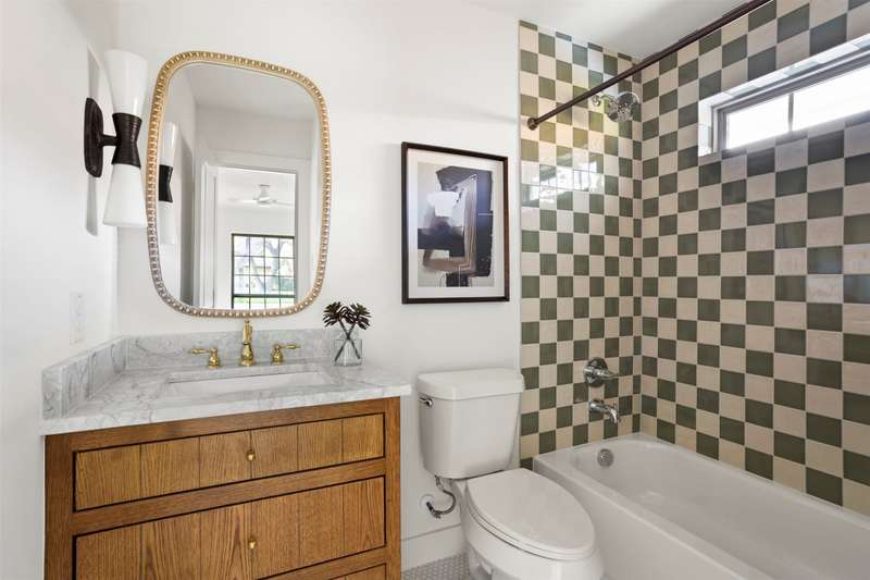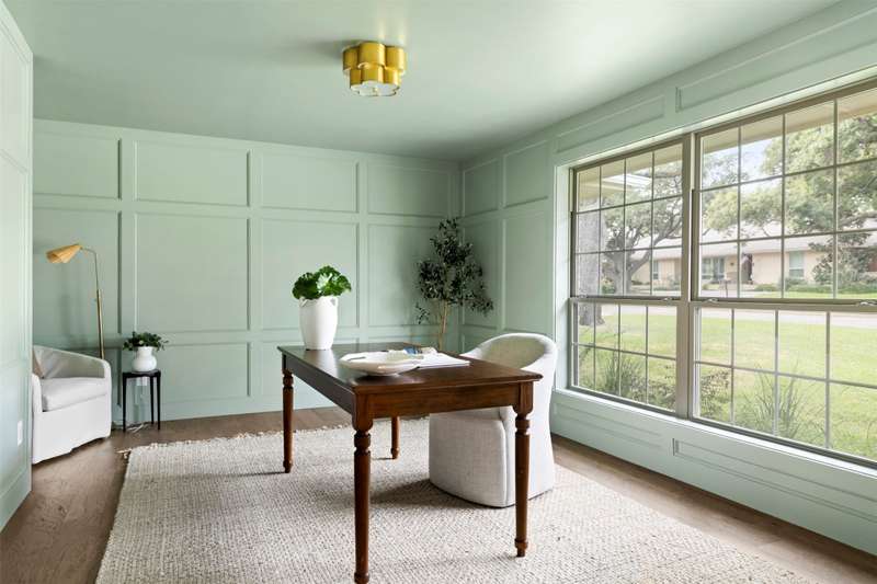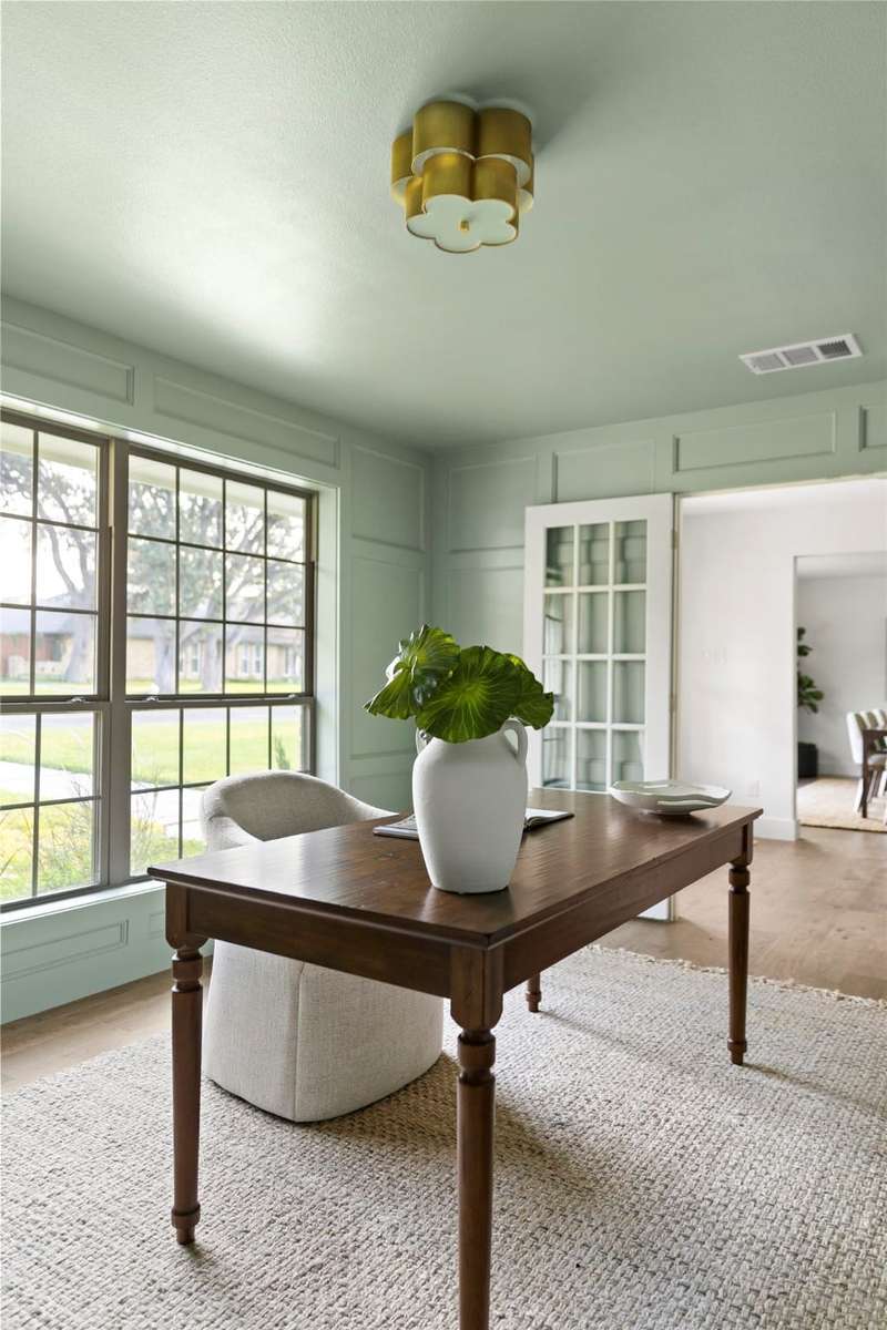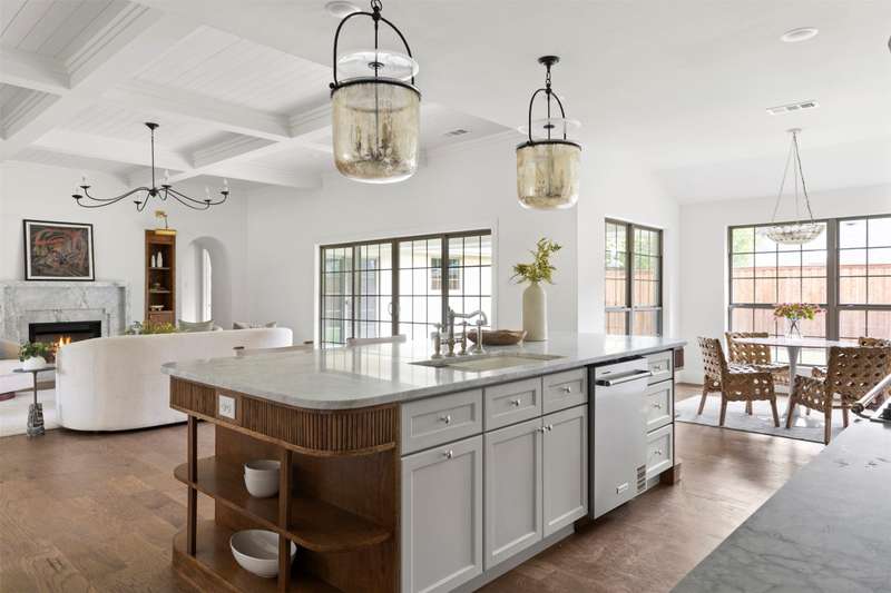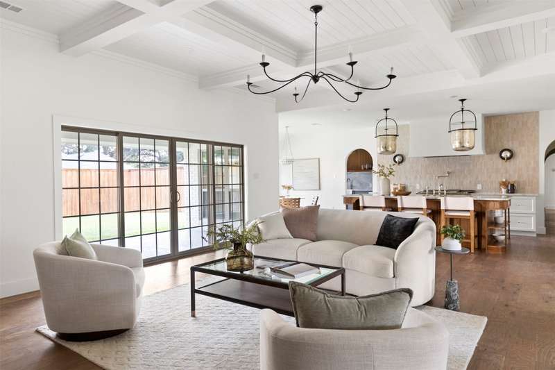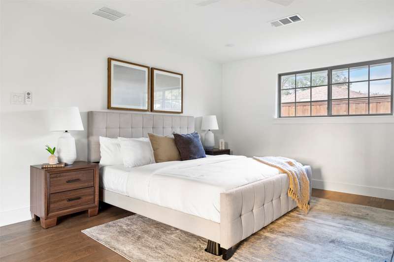 Meticulously renovated and designed by PAKX Homes delivers refined style and modern comfort in every detail. A dedicated home office with custom built-ins offers a quiet workspace, while the formal dining room sets the stage for entertaining. The open living area is anchored by a sleek marble fireplace flanked by custom oak shelving, creating a warm yet elevated feel. The kitchen is outfitted with a full suite of KitchenAid appliancesincluding refrigerator, dishwasher, and microwaveand features an Italian-made range as a standout centerpiece. A large butlers pantry with marble counters, oak shelves, second refrigerator and wine cooler adds storage and function without compromising aesthetics. Oak hardwood floors flow throughout the home, enhanced by designer lighting, brass fixtures, and custom millwork. The primary suite features a spa-style bath with double vanities, marble counters, a freestanding soaking tub, and an oversized walk-in shower. Down the hall are two other spacious bedrooms, with access to beautifully appointed jack-and-jill bathroom. The fourth ensuite bedroom, tucked privately behind the kitchen, serves as an ideal guest suitecompletely separate from the main living and entertaining areas. There's also a fifth flex room offers endless possibilities: fifth bedroom, playroom, media space, or home gym. Every inch of this property reflects thoughtful design, high-end materials, attention to detail and refined craftsmanship.