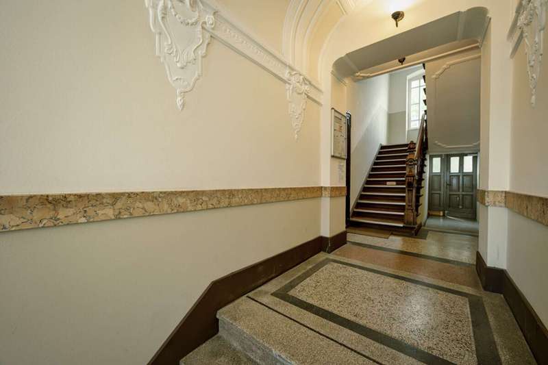 1903 and 2003 - even from a distance, the two most important dates on the striking gable are easy to read. Built in the last century and renovated around 20 years ago, the residential building houses 2- to 5-room apartments. The lovingly designed entrance welcomes residents and guests with a vaulted ceiling, natural stone elements and stucco. The property surrounds an inner courtyard: in the front and rear buildings, staircases with natural light lead to the residential units.