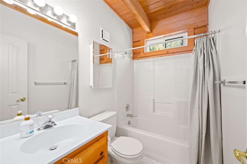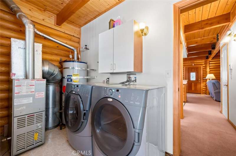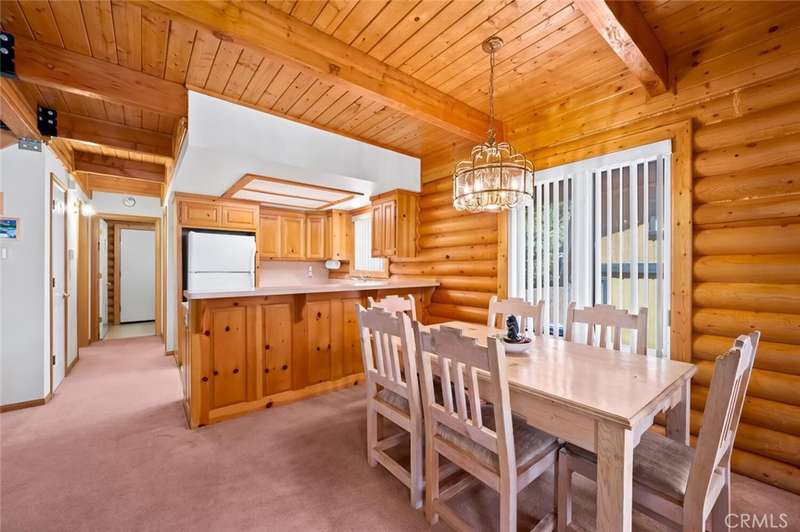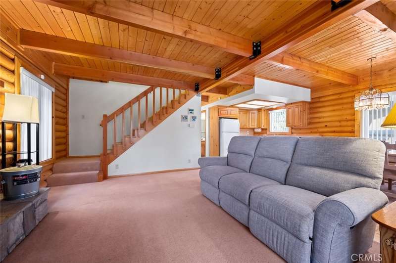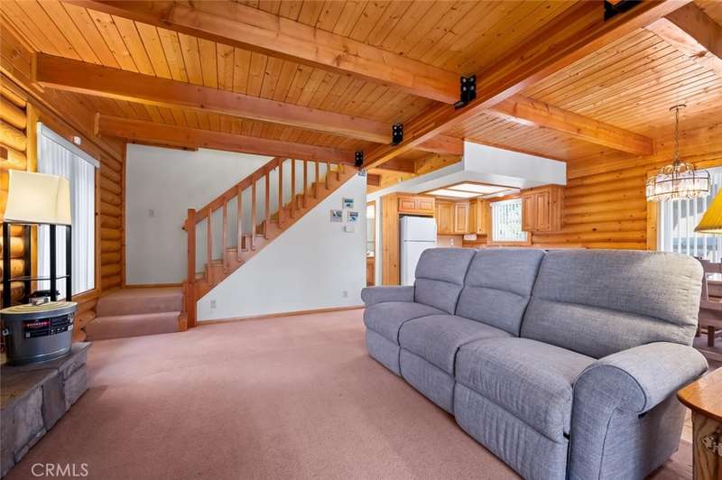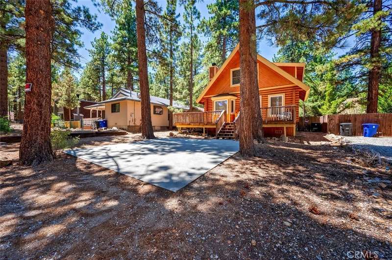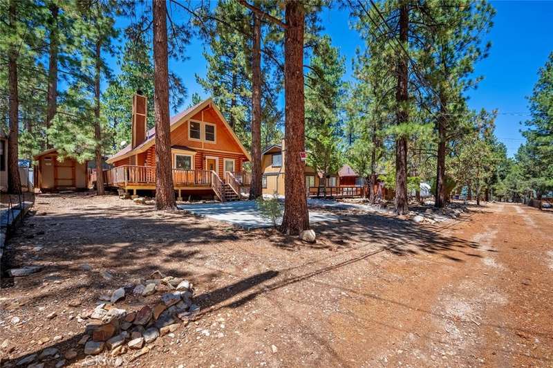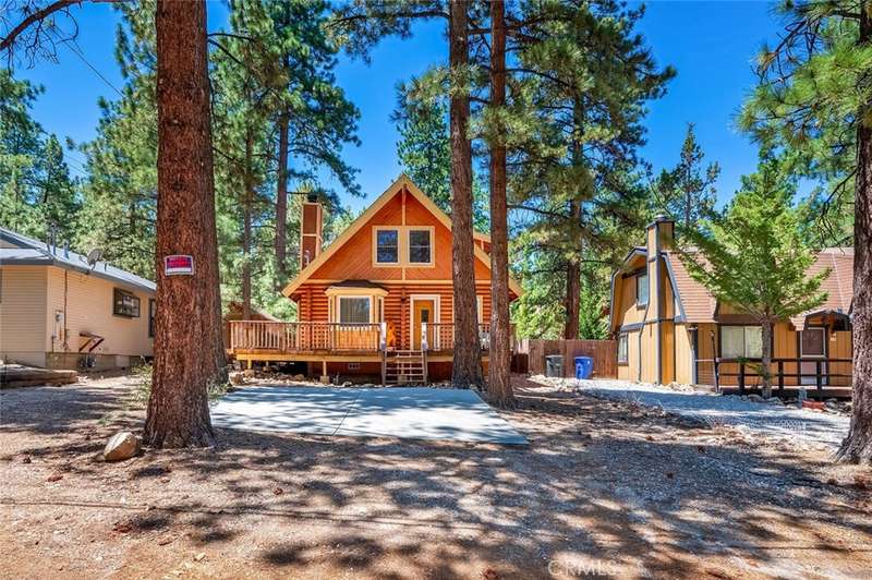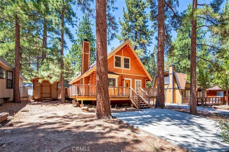 RARE find Erwin Lake Area and now it can be yours. This Full Log Cabin Home really delivers!! Experience the easy going vibe of rural living. Nestled in the peaceful and desirable Mitchell side of Highway 38. Convenient to all of Big Bear's many attractions including ski slopes, Big Bear Lake, The Village Shopping and Restaurants, National Forest Hiking Trails, Off Road Trails, easy highway access and much more. This cozy full log cabin home is really Something Special offering interior features that include a spacious downstairs living area that includes log interior walls, forced air heating, wood burning fireplace, full kitchen with natural gas cooking a breakfast bar countertop and a separate dining room area. Rounding out the downstairs is a spacious bedroom, full bathroom and inside laundry room. The 2nd story living space features two very large bedrooms and a shared 3/4 bathroom with a walk-in shower. Exterior features include superior curb appeal, dual pane windows, wrap around front porch deck, concrete parking space for at least two cars, 8x12 storage shed, large frontage area for additional parking. The backyard features a roomy covered patio that is very relaxing and tranquil, the backyard is also fully fenced offering security and privacy. This home can be utilized for many different byer needs including primary residence, second home, vacation or fulltime rental income too.