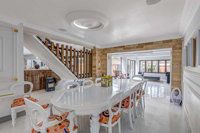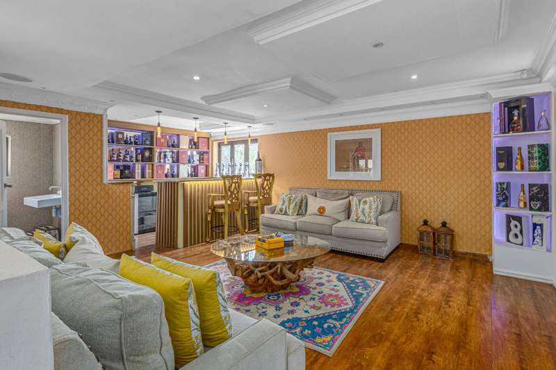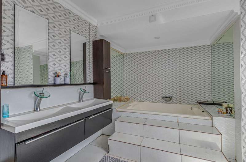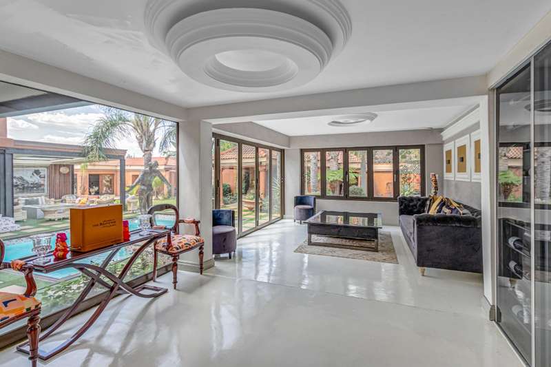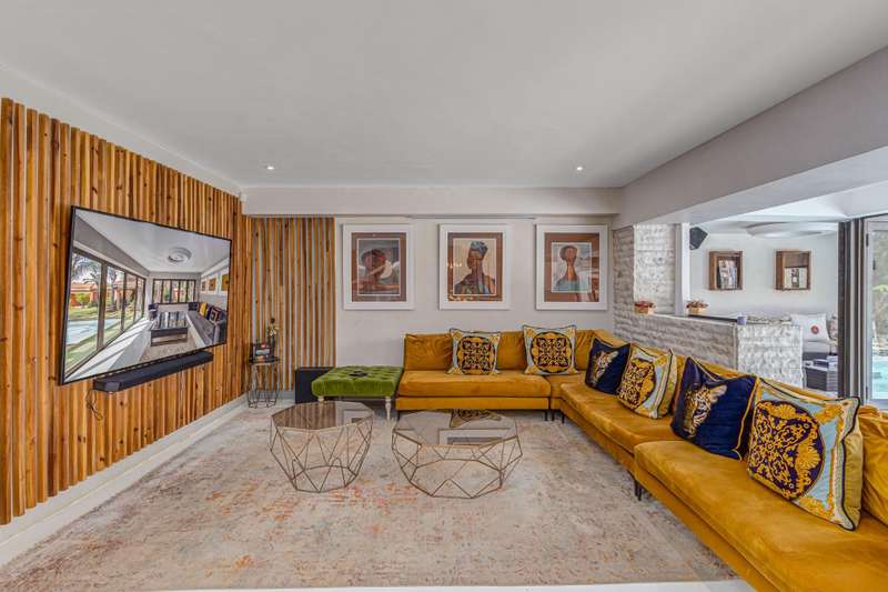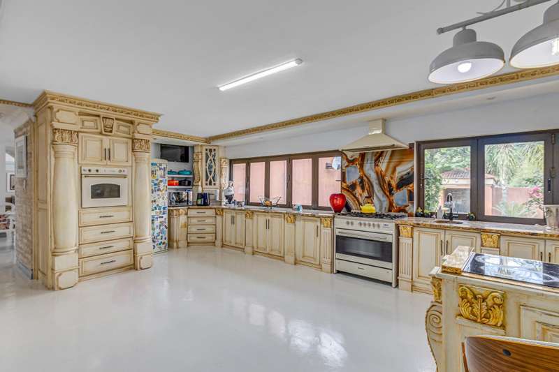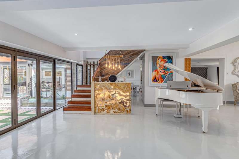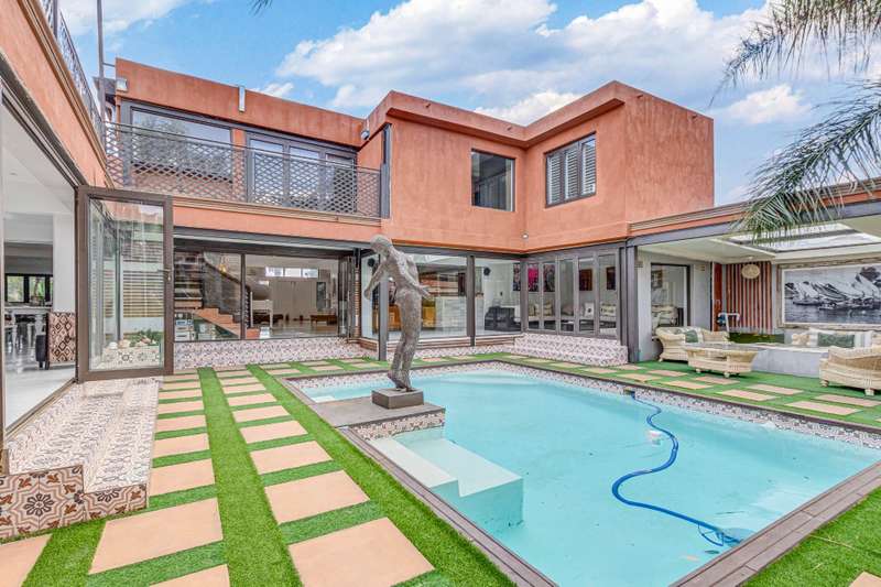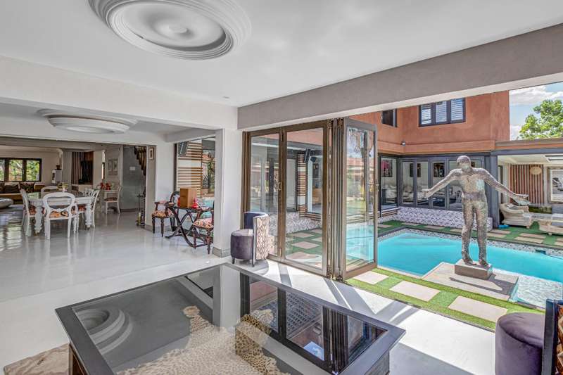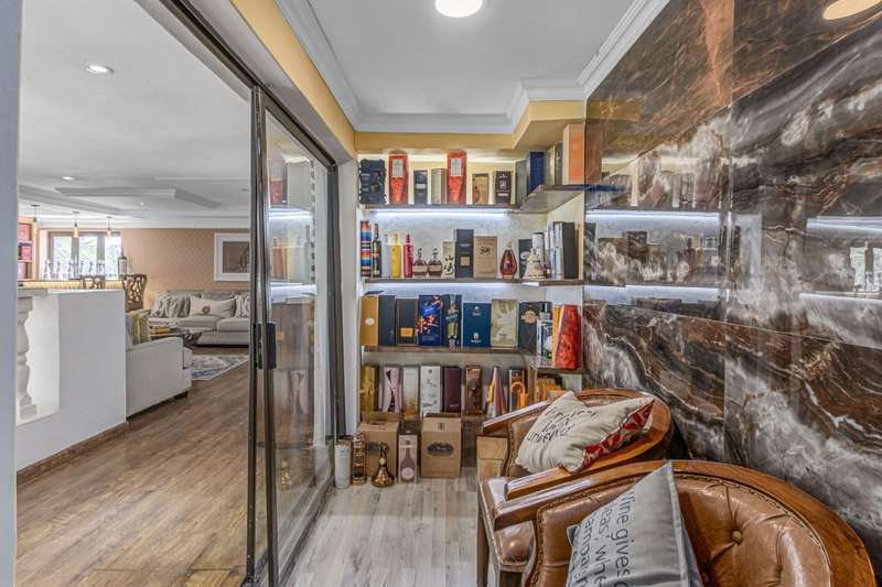 Magnificent Glen Austin Home with Endless Potential Nestled in the serene suburb of Glen Austin along Olifantsfontein, this expansive property is perfect for a large family or as a potential guest house. From the moment you enter, the property impresses with a grand water feature and a unique koi pond walkway leading to the stately entrance. Inside, you?ÇÖre welcomed by a double-volume entrance hall featuring a striking staircase, a cozy fireplace, and a powder room?Çöan ideal space for making a lasting first impression. The home is thoughtfully designed for seamless flow and entertainment. The ground floor boasts an open-plan kitchen with three built-in ovens, gas and electric stoves, a scullery, and a washroom. Overlooking the dining area, the kitchen connects effortlessly to two lounges and a secondary dining area, all warmed by fireplaces. The main bedroom, located on this level, is a retreat of its own with his-and-hers walk-in closets, a luxurious en-suite bathroom, and security features like a slam-lock gate. Three additional bedrooms, a shared full bathroom, a playroom, and a study complete the downstairs layout. Upstairs, a private entertainment area awaits with a bar, lounge, powder room, and glass alcohol storage. This leads to a guest wing with its own lounge, en-suite bedroom, air conditioning, and a private balcony, accessible via a separate entrance. Throughout the home, built-in speakers set the stage for a sophisticated ambiance. Outdoor entertainment shines with a pool, patio, and even a private cinema with its own bathroom. Additional features include five lounges, a gym with a steam room, multiple cottages, staff accommodations, garages for six cars, solar power with an inverter, a borehole with JoJo tanks, and top-tier security with cameras and beams. While the home requires some maintenance, its grandeur and amenities make it a rare find with immense potential. Don't miss this opportunity to turn this property into your dream home or an exclusive guest retreat.