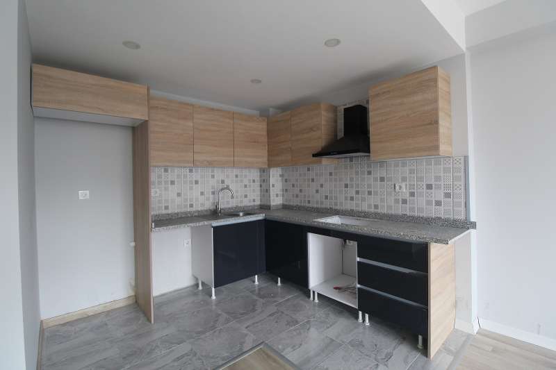 The apartment for sale with an open kitchen is located in Gumus Park Complex. The complex is close to daily necessities, located 700 m from Esenyurt State Hospital, 2 km from the E-5 Highway and the metrobus, 2.5 km from Marmara Park Shopping Center, 5 km from Kucukcekmece Lake, 7 km from Beylikduzu Marina, and 27 km from Istanbul Airport.