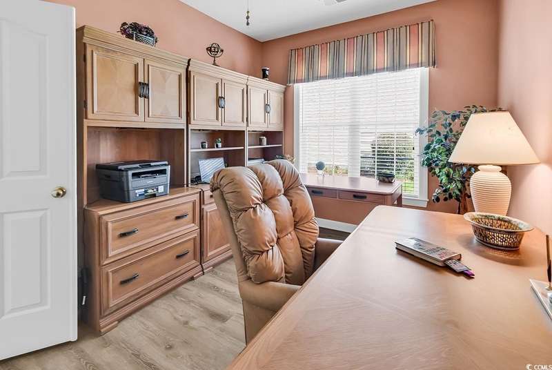 ***OPEN HOUSE Saturday October 4th 11-2pm*** Discover this beautifully maintained single-level home offering 3 bedrooms, 2 baths, and a private office/flex room in the sought-after Somersby at Longwood located in the Blackmoor community. With 2,156 heated square feet of living space, this residence is perfectly designed for comfort and functionality. Built in 2001 on a 0.26-acre lot, it features a two-car garage and a thoughtful split-bedroom floor plan including the added value of a whole-house generator for year-round peace of mind. Ideal for couples, retirees, or anyone looking for low-maintenance living with room for guests. The heart of the home is the open and inviting family room, which flows seamlessly into a bright kitchen with abundant cabinetry, plenty of counter space, and a breakfast nook, complemented by a formal dining area for gatherings. The primary suite provides a true retreat with dual vanities, a soaking tub, and a walk-in shower, while two additional bedrooms and the office/flex room create space for visiting family, hobbies, or remote work. Step outside to the screened-in patio overlooking the 18th hole of Blackmoor Golf Course, the perfect spot to start your mornings with coffee or unwind in the evenings. Buyers who love golf or simply want peaceful green views will appreciate this feature. Life in Blackmoor is more than just a home—it’s a lifestyle. Residents enjoy a vibrant community with a clubhouse offering scheduled activities, a sparkling pool, and pickleball and tennis courts, all set within a beautifully maintained neighborhood centered around a Gary Player–designed golf course. Whether you’re relocating south to enjoy retirement, seeking an active golf and tennis lifestyle, or looking for a welcoming community close to the beach, dining, and healthcare, this home delivers it all.