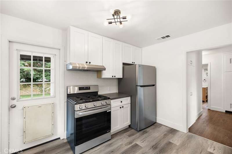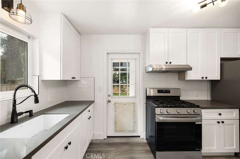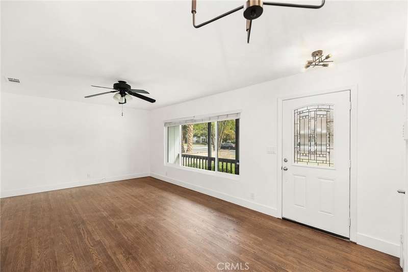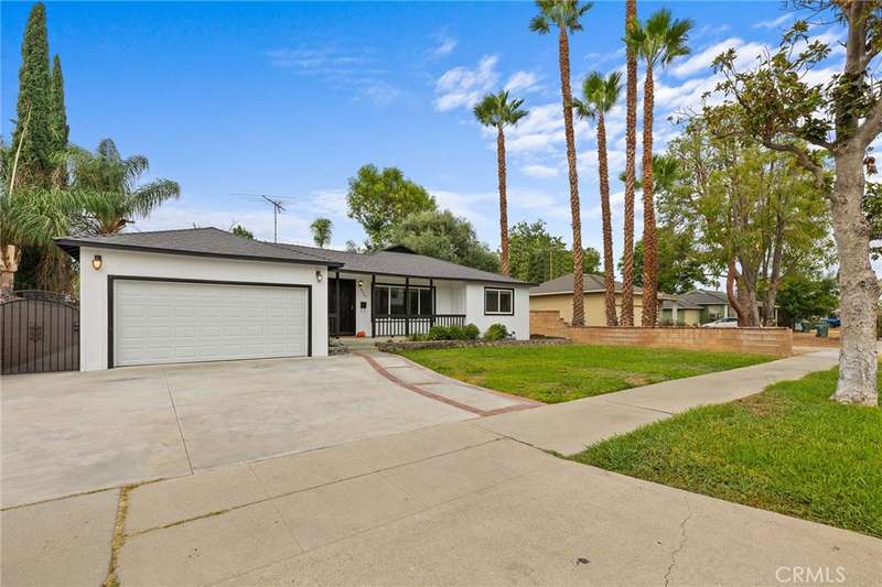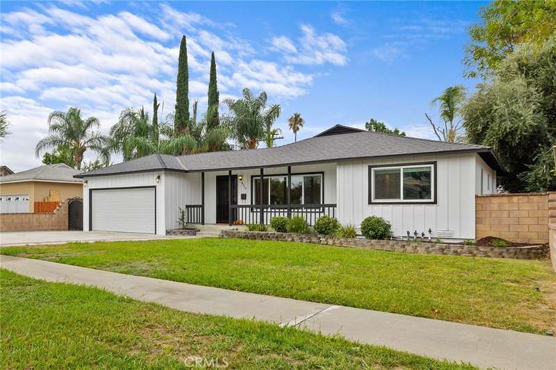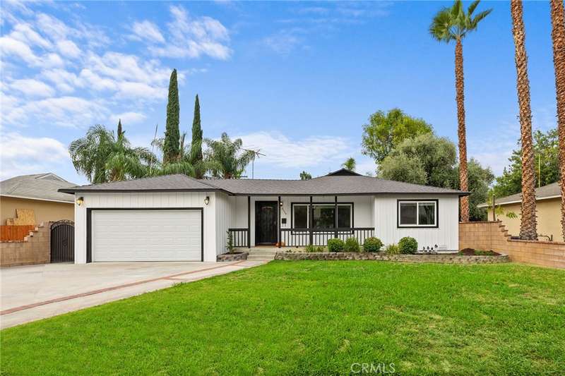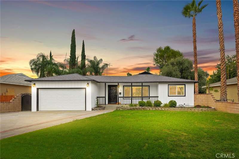 Fully Remodeled Turnkey Home on a 6,900 Sq Ft in Central Riverside! This beautifully updated single-level home offers 3 bedrooms, 1 bathroom, and sits on a spacious private flat lot. A charming front porch, brick-ribboned walkway, raised flower beds, and a spacious, grassy front yard create an inviting first impression. The private backyard features decorative pavers, a covered patio and lush grass bordered by stacked stone flower beds and neighboring shade trees--perfect for entertaining or relaxing outdoors and potential to add an ADU or pool. Step into this bright and beautifully updated home featuring a modern open layout and thoughtful upgrades throughout. Refinished original hardwood floors flow through the main living areas and bedrooms, with durable luxury vinyl plank flooring in the kitchen and bath. The kitchen offers new white shaker style cabinets, quartz countertops, and brand-new stainless steel appliances. The bathroom has been fully remodeled with a new tub/shower, vanity, toilet and stylish finishes. Additional updates include new paint, lighting, ceiling fans, closet doors, dual-pane windows, new garage door, central A/C, and new water heater--ready for you to move right in and enjoy. The long driveway and side access provide ample space for RV or boat parking, and the oversized attached 2-car garage offers overhead storage and a laundry area complete with new washer & dryer. Located minutes from California Baptist University, Riverside Plaza, parks, schools, and easy freeway access.