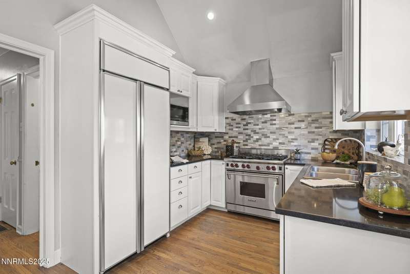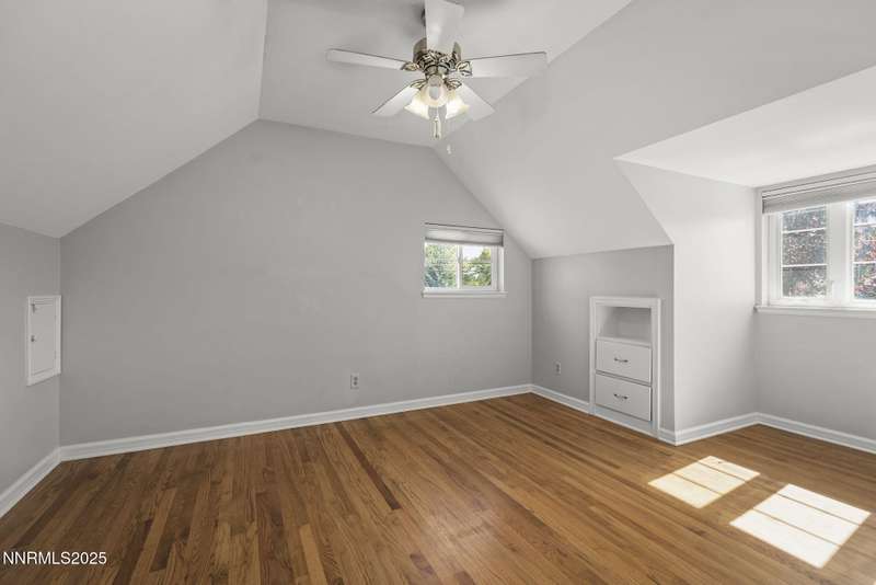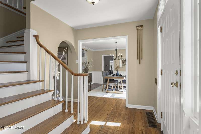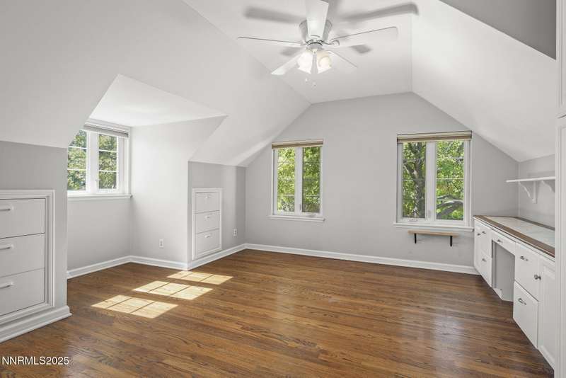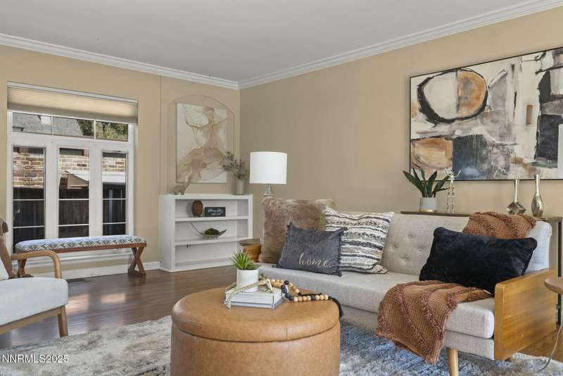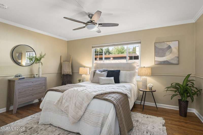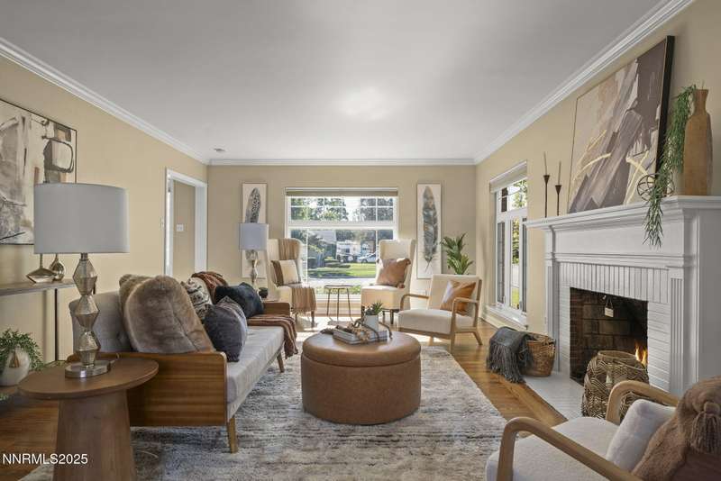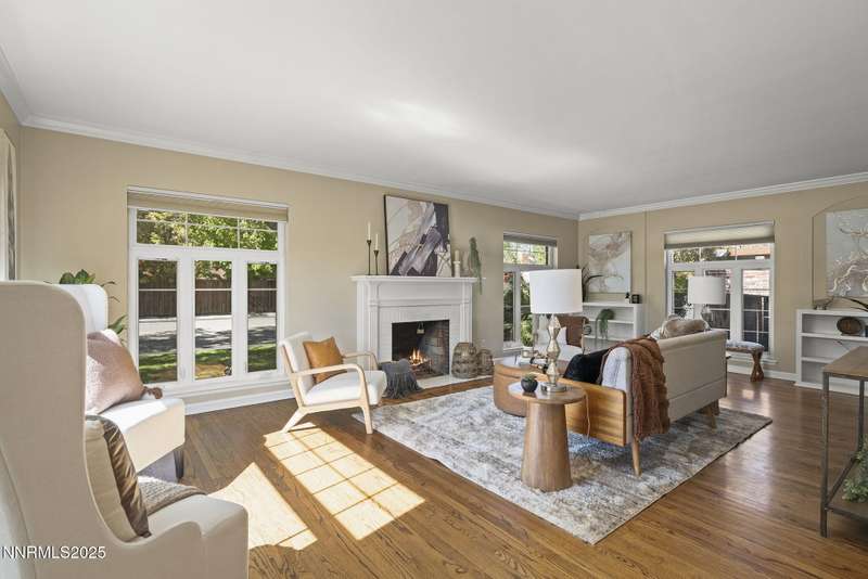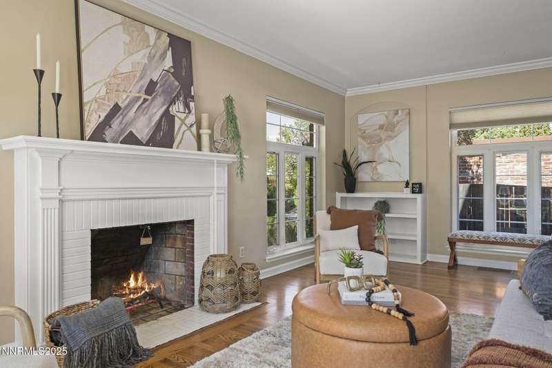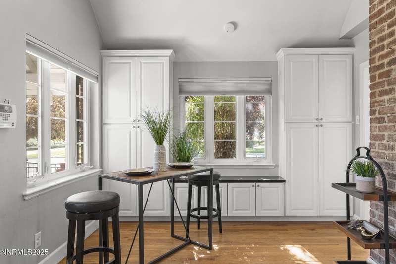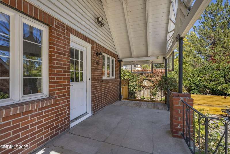 Situated on a quiet corner of a tree-lined street equidistant from the Nevada Museum of Art, Virginia Lake, and Midtown's restaurants and shops, 1190 Manor Drive offers the best of Old Southwest living: established yet vibrant, character-filled yet practical. • Thoughtfully cared for and lovingly maintained, this **3-bed, 3-bath, 2,592-sq-ft home** is a rare example of how a home can evolve while keeping its heart intact. • Don't miss the chance to live here this fall—watch the trees outside your windows shift from bright green to burnished gold and settle by the wood-burning fireplace as cooler days arrive. • **Move-In Ready** This classic brick Colonial Revival has been thoughtfully renewed, ensuring that what defines the home—its warmth, craftsmanship, 1940s architecture, character, and quiet beauty—remains intact. • Over the decades, each owner has meticulously maintained and updated the home's systems, from the 2021 furnace, A/C, and water heater to the fully remodeled kitchen and Ecobee smart-thermostat system. • Plaster detailing, crown molding, and built-in nooks represent the era's character. • Even the smallest elements—the built-ins, mail slot, and telephone inset—reflect enduring care and preservation. **Inside** The floor plan balances privacy and functionality. • On the main level, the front door opens to an L-shaped staircase with its original balustrade and a graceful curtailed step framed by an arched threshold. • To the left, sunlight filters through tall windows onto gleaming hardwood floors in the living room, where a wood-burning fireplace anchors the generous space. • To the right, the dining room, featuring wainscoting and a graceful chandelier, opens naturally to the remodeled kitchen, which showcases quartz countertops, a Wolf gas range, thoughtful cabinetry with pull-outs and soft-close drawers, and a brick accent wall lending warmth and authenticity. • Vaulted ceilings with exposed beams lift the space, while the eat-in nook's window seat overlooks the front yard's mature landscaping, which bursts into vivid gold and red each fall. • A main-level bedroom and full bath offer convenience for guests or single-level living, while upstairs, two dormered bedrooms with built-ins and angled ceilings capture a sense of coziness and charm and bookend another full bath. • Both bathrooms blend modern tile and fixtures with classic styling in shades of white and gray—refined, not trendy. • The basement extends the home's versatility with a generous flex space easily accommodating a family room, gym, or studio. • A bonus room provides privacy for an office or creative workspace, complemented by a three-quarter bath and a tidy laundry area with modern appliances and ample storage. • **Outside** The detached two-car brick garage provides extra storage or potential workshop space. • A covered deck with white rafters filters sunlight in shifting patterns and connects directly to the kitchen, creating an easy flow for indoor-outdoor entertaining. • Beyond, the property opens into a private brick and flagstone courtyard framed by redwood planters, lush vines, and mature trees. • An ivy-covered pergola anchors the outdoor dining area, while a dog run tucked along the side yard offers convenience without sacrificing aesthetics. • Each space invites use across the seasons—morning coffee in the dappled shade, dinner gatherings under string lights, or quiet reading beside the raised garden beds. **Every season brings its own moment of beauty here—and this one-of-a-kind home is ready for you to make them all your own.**
