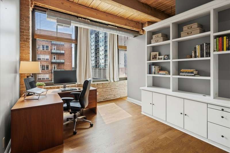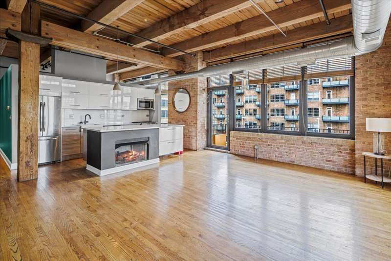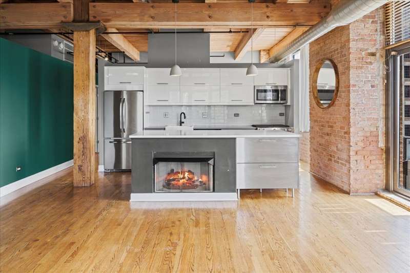 Welcome to this sun-filled corner loft in a boutique elevator building located in the heart of the West Loop. This 2 bed/2 bath unit blends industrial charm with modern finishes and features high timber ceilings, exposed brick, and hardwood floors throughout. As you enter, you are greeted with a beautiful, sleek kitchen open to the living area with a large island, stainless steel appliances, and a gas fireplace. Spacious living room is surrounded by oversized, south-west facing windows and gives you access to a private balcony. The primary bedroom features a walk-in closet with an additional organized closet and a modern en suite bathroom with double vanity and a soaking tub. The second bedroom has a beautiful built-in shelving and great lighting while second bathroom features a walk-in shower and a natural limestone tile. Additional highlights include ample closet space, in-unit Washer/Dryer and a parking space included in the price. Building amenities include a fitness center, convenience store, extra storage and bike room. Perfect location close to the Loop, Union station, Greektown, Fulton market and expressways.