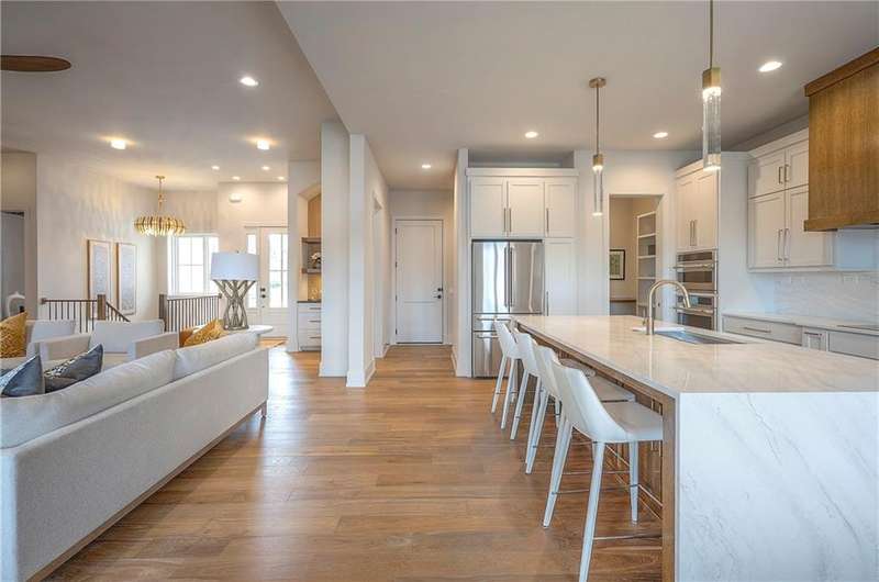 AWARD-WINNING Reverse 1- 1/2 story thoughtfully built by Homes by Chris--Beautiful Parker plan. Easy main level zero-entry front with no steps. This open floor plan offers LOTS of natural light and tall ceilings! Primary bedroom suite features a laundry in the walk in closet. Main level includes the 2nd bedroom! Great room with beautiful fireplace, blinds & drapes, and views trees. Extra-large dining area! Enjoyable, large covered deck with ceiling treatment and fan. Cook's kitchen (waterfall quartz) with upscale appliances, Advantium micro, professional-type hood, Induction cooktop, AND fridge and LARGE walk-in pantry (could hold computer station)! Attractive dry bar on main level for entertaining and convenience! Mud room with lots of cubbies enters from zero-entrance garage. Fabulous lights and fans, cool stair rails, beautiful plumbing features (and terrific sink). Window treatments stay. Lower level features a large Rec room with feature wall, wet bar & beverage fridge, and 2 additional, sizable bedrooms. Walk out lower level to covered patio. Security system! Tile Roof, low maintenance exterior! Significant additional storage in unfinished area. Homes by Chris = top quality! The Reserve consists of 3 streets = one large cul-de-sac! This is the maintenance provided area of Riss Lake and additional $245/month that includes mowing, weeding, chemical applications, sprinkler maintenance, snow removal, and more. Enjoy Riss Lake amenities--3 pools (and splash pad), tennis/pickle ball, walking trails, playground, fishing/boating on the lake, more!