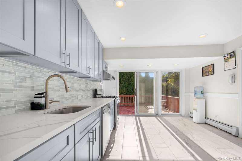 Beautiful Split-Level Family Home on a Corner Lot - Move-In Ready! Welcome to this inviting and well-maintained split-level single-family home offering comfort, style, and functionality. Step inside to a bright living room featuring a cozy fireplace, creating a warm and welcoming space for gatherings. The open layout flows seamlessly into the dining area and modern kitchen, complete with granite countertops, marble tile flooring, quality cabinetry, and full utilities. From the kitchen, step right out onot your private deck - a perfect spot for morning coffee or weekend barbeques. The upper level features three spacious bedrooms, including a primary suite with its own private bath. Each bedroom is filled with natural light, large windows with blinds, and generous closet space. A second full bathroom serves the remaining bedrooms. An additional fourth bedroom on the next level provides extra flexibility - ideal for guests, a playroom, or a home office - with two closets for added storage. The lower level offers a comfortable family room with tile flooring, a powder room, and access to the attached garage. The finished basement includes a washer and dryer and offers space for recreation, a gym, or storage. Outside, enjoy a beautifully landscaped backyard featuring a paved patio area perfect for family gatherings and summer entertaining. THe corner lot provides added space, privacy, and great curb appeal. Conveniently located near parks, schools, shopping, and major highways, this home offers everything you need for easy, comfortable living. A wonderful opportunity to own a move-in ready home that truly has it all!