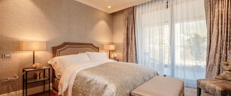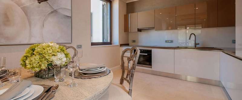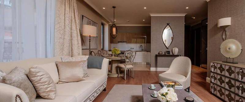 The apartments consist of a large open-plan living room with a dining area and a kitchen, and a bedroom with a bathroom. One-bedroom apartments in Village Residences range from 88m2 up to 133m2 and are priced from €530,000 to €850,000.
