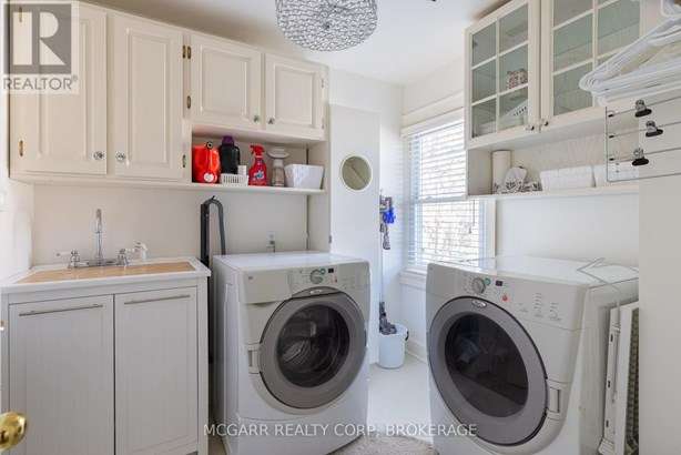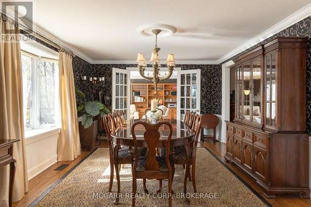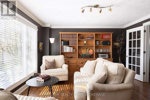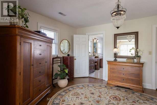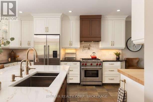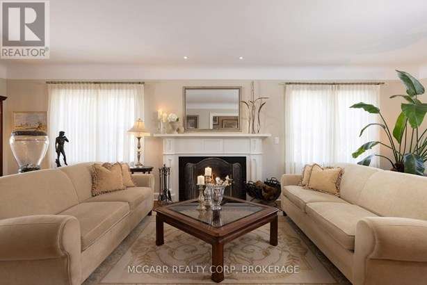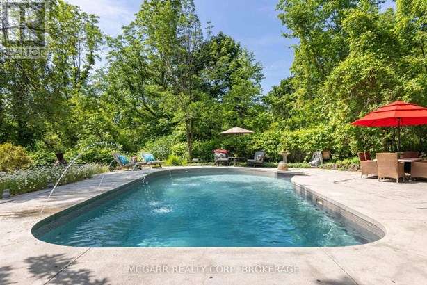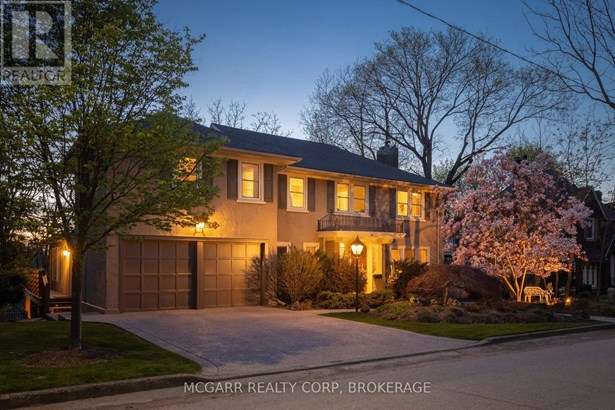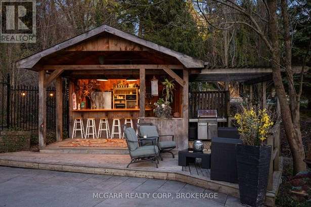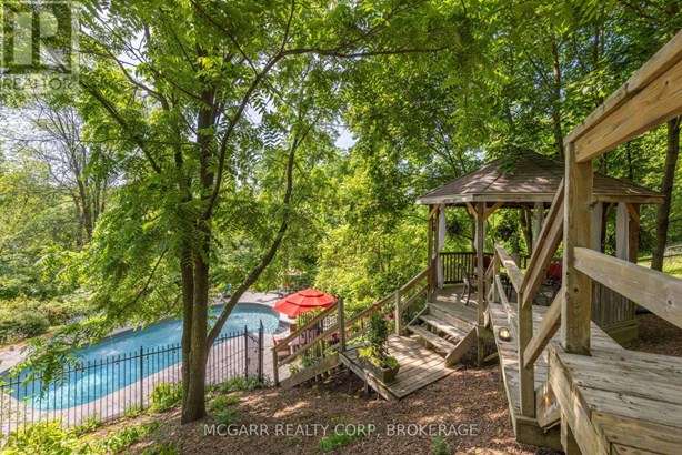 This home has it all. Location, space, property, privacy and a true staycation feel. Entertaining bright living room with fireplace and leads to a light filled library. The formal dining room views the stunning backyard. Enjoy the warming fireplace in the family room or walk out to the two level deck with ground access. The updated kitchen with slate floor has a large island with sink plus there is a bar with a sink + wine fridge. The custom Birchview Cabinetry blends with the Bosch Dishwasher, Fisher Paykel fridge, and Wolf 4 burner gas stove. A mudroom, 2pc and a back stairway finishes the main level. The elegant front oak stairway leads to the upper level where you will find 5 bedrooms, 3 bathrooms and the laundry room. The primary suite has ravine views, gas fireplace, walk in closet, + a sitting room. The 5 pc ensuite has 2 sinks, soaker tub + large glass shower. A 4pc and a 3pc services the other 4 bedrooms. The ground level has lots of storage space, 2 walkouts, rec room, and office with a fireplace. The very private terraced yard makes you feel like you are in Muskoka. Enjoy the soothing hot tub, decks, perennial gardens, in ground salt water + solar heated pool, fantastic fully equipped pool house bar with its own 2pc. A home to live in, play in and grow in. This home is perfect for a blended family who also want to have lots of space for privacy. Very spacious deck leading down to a 6 person hot tub and super private hidden alcove area for curling up. Party in the stunning pool level and gather around the fully equipped tiki bar. Come for a visit + stay for a lifetime.