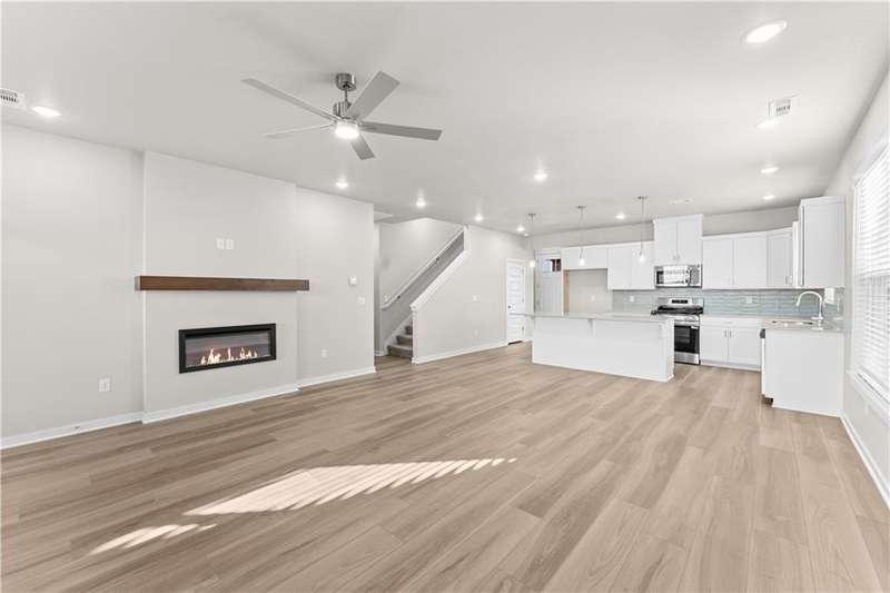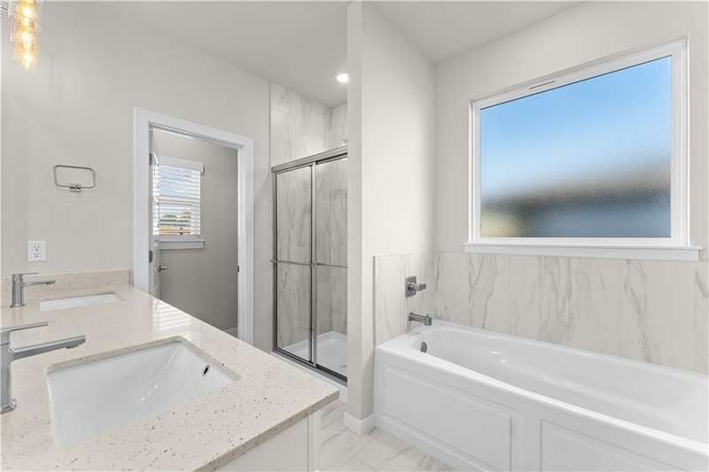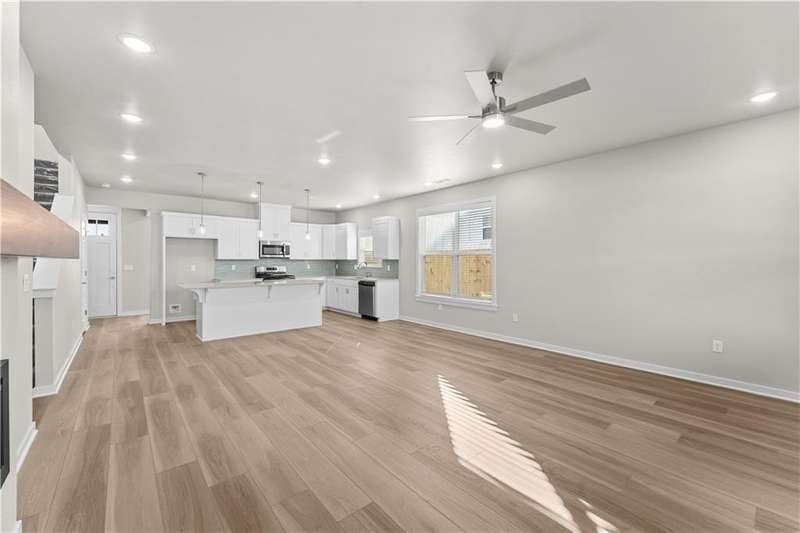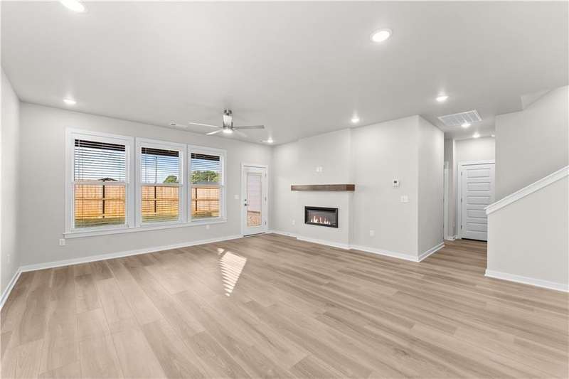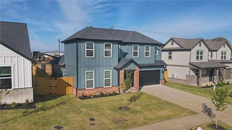 Fence, blinds and gutters included! Discover your dream home in the sought-after Osage Hills neighborhood. Delta plan with garage on the right and East facing! 9 ft ceilings, linear electric fireplace in the living room, LVP flooring throughout the main living areas and primary bedroom, quartz countertops and more. Chef's kitchen boasting frigidaire stainless steel appliances, gas range, pantry, quartz countertops, bar pull handles, large island and gorgeous backsplash. Luxurious primary bedroom features abundant natural light, while the spa-like primary bathroom offers a walk-in shower, tub, double sinks, and spacious walk-in closets. Additional features include a study on the main level, two large secondary bedrooms upstairs and a separate laundry room. Nestled on a generous lot with covered patio that overlooks the serene sodded, fully fenced backyard. Sturdy concrete siding & brick! Model home located at 6008 SW Coywolf St- Lot 122.