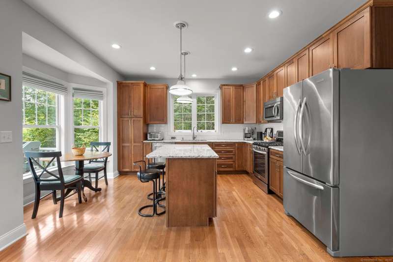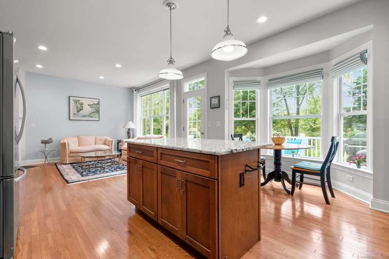 Welcome to Shelton Cove, a Toll Brothers community designed for easy living. This end-unit enjoys one of the best locations in the complex, with sweeping views of the Housatonic River that showcase the very best of waterfront living. Sunlight and space define this home, enhanced by 9' ceilings and an open floor plan. The main level features a bright living room with a gas fireplace, dining room, powder room, laundry, and an eat-in kitchen. Step out through the French doors to the deck, where river views provide a picture-perfect backdrop year-round. Upstairs, the spacious primary suite offers a cathedral ceiling, walk-in closet, and a luxurious bath-all complemented by serene river vistas. Two additional bedrooms and a full hall bath complete the second floor, with one bedroom easily serving as a home office for remote work. The fully finished walkout lower level includes a recreation room, patio, and storage/utility space with rough plumbing in place for a future bath. A covered lower patio is ideal for summer evenings. The two-car garage is immaculate and offers ample storage. Community amenities include a private beach area with water access, plus kayak and paddleboard storage-making it easy to enjoy life along the Housatonic.