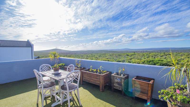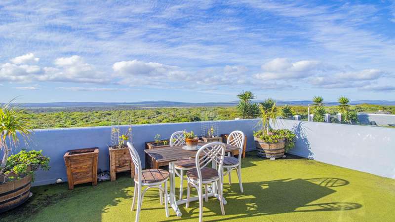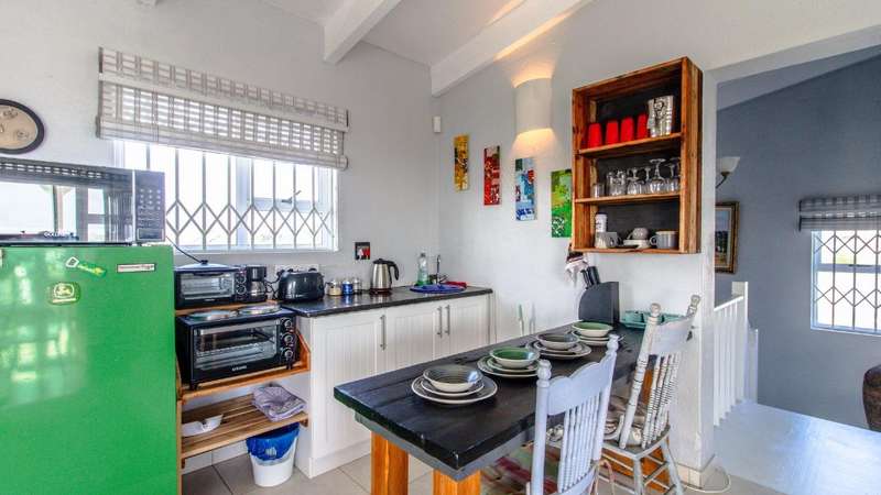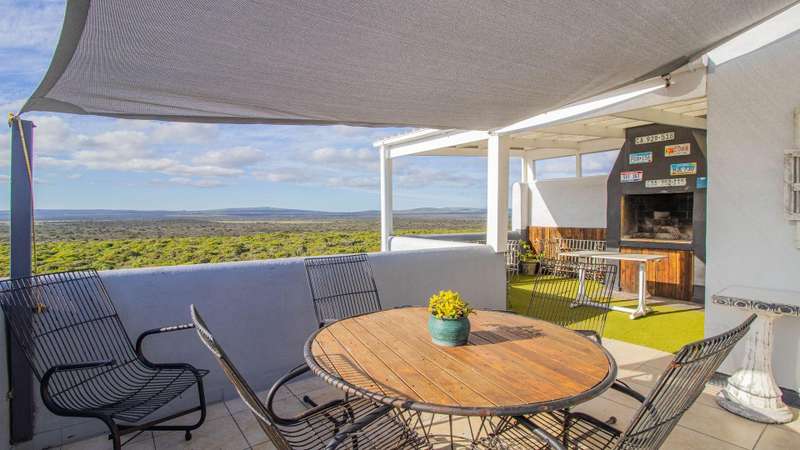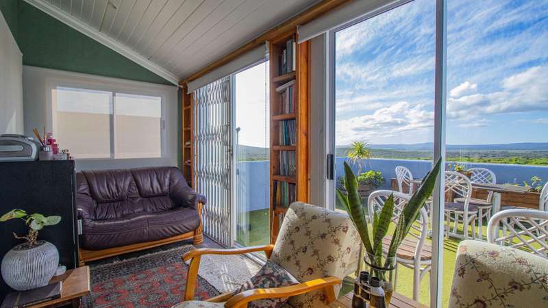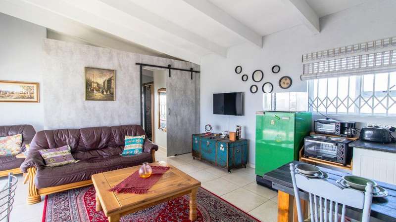 Discover this exceptional property offering breathtaking farmland views and incredible entertainment opportunities on its northern side. Picture yourself savoring morning coffee as the sun rises, or an evening cocktail as it sets, all while enjoying the amazing panoramic vistas. Nature lovers will delight in spotting various wild animals enjoying the expansive farmlands. The master bedroom is a private sanctuary, featuring a spacious en-suite bathroom and its own sunny stoep and balcony, perfect for moments of undisturbed relaxation. Prepare culinary delights in the spacious kitchen, complete with ample built-in cupboards and a convenient scullery. The main living area seamlessly extends to a sunny stoep, inviting the stunning views indoors. This versatile property also includes two independent one-bedroom apartments. One is conveniently located on the sunny stoep, ideal for holiday accommodation. The second apartment, situated on the top floor, currently generates good income as a successful holiday rental. Both offer fantastic potential. The top floor also boasts a spacious balcony with a built-in braai, designed for unforgettable gatherings against a backdrop of those beautiful views. Completing this fantastic offering is a large garden with an access gate and a double garage, providing ample space and convenience. With so much to offer, this property presents an unmissable investment opportunity. Don't let it slip away!