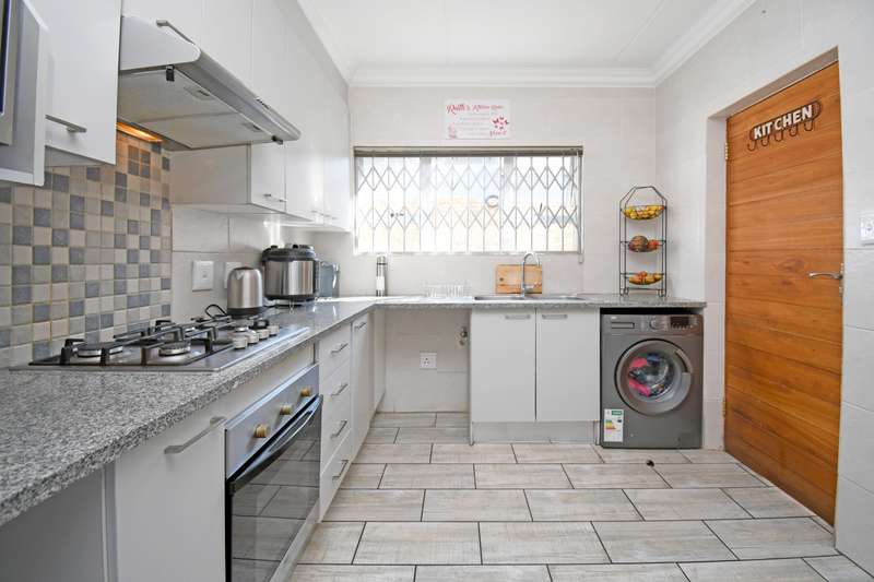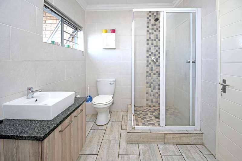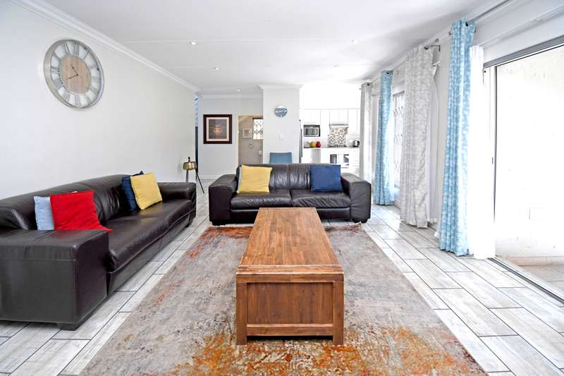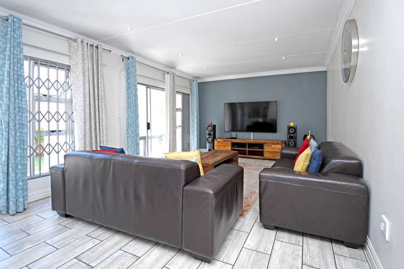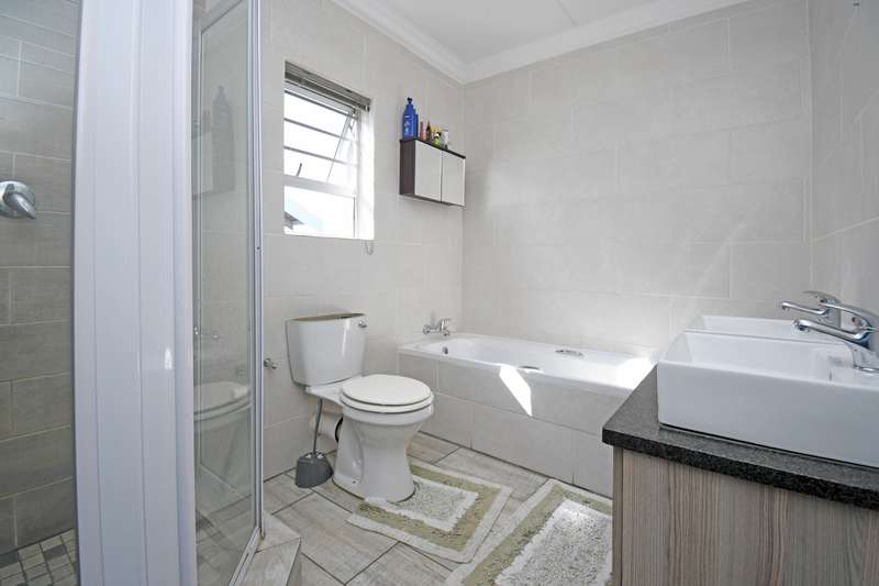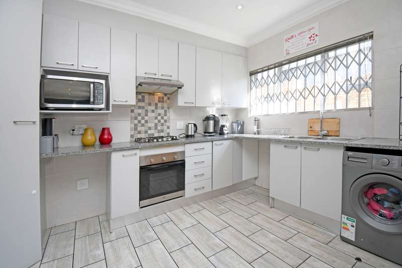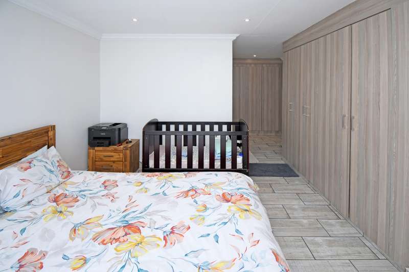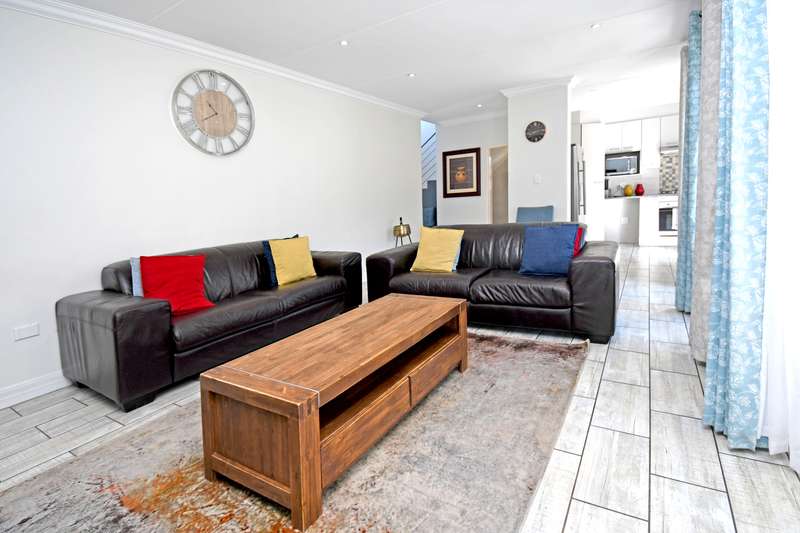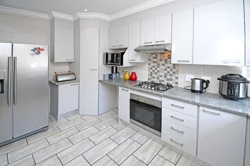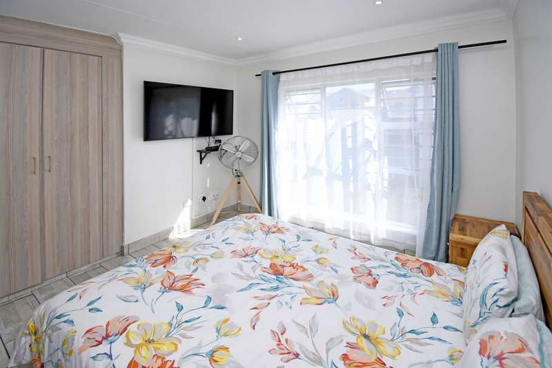 An ultra-modern secure home that offers 3 bedrooms, 2.5 bathrooms, open plan lounge \ dining room and kitchen, a chef’s delight, which has a gas hob, oven, place for 3 under counter appliances and space for double door refrigerator with ample cupboard space. Lounge & dining room, with sliding doors leading to a covered patio, overlooking the garden. Downstairs guest loo Upstairs-: At the landing there is a study area. The oversize main bedroom with plenty cupboard space, en-suite with his & her vanity, shower & bathtub. Two additional bedrooms and a full bathroom. Don’t miss out on a great opportunity!