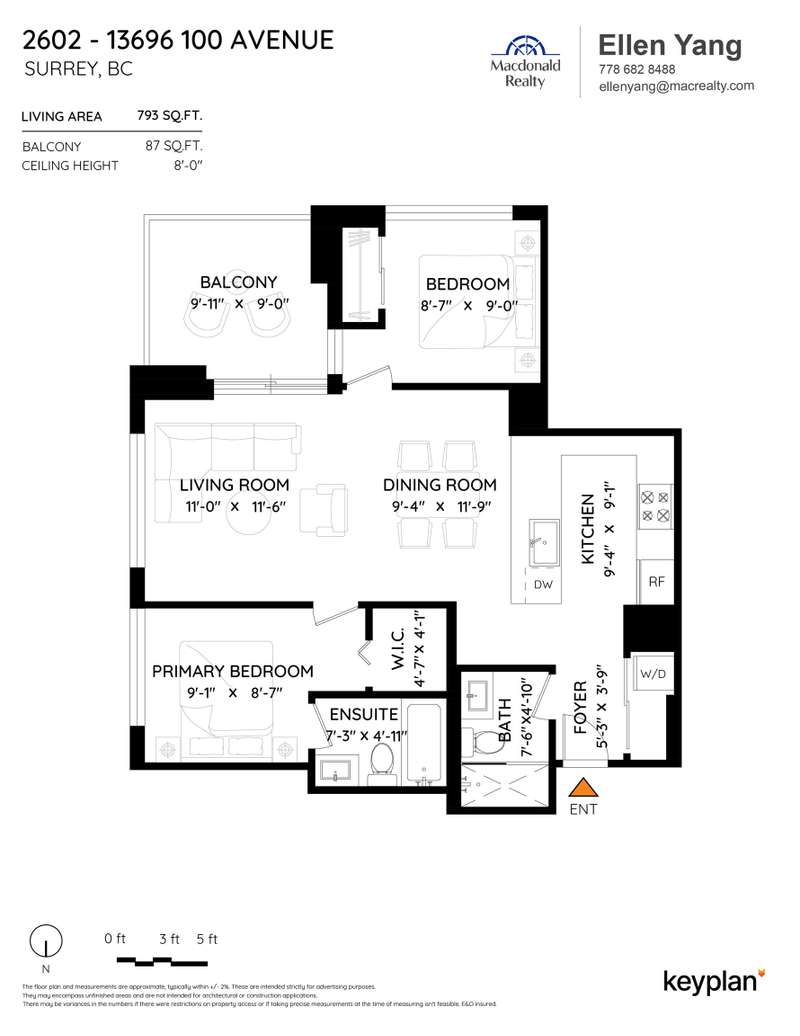 Park Ave West by Concord Pacific, family oriented & well maintained corner unit, 2bdrm & 2bthrm southeast facing with massive natural light and stunning city views. Modern open concept floorplan, well managed by Rancho and still within 2-5-10 warranty. Kitchen is equipped with quartz counter top, European Bloomberg gas cooktop, and build-in oven. Conveniently located in Surrey Central, walking distance to Skytrain station, UBC,SFU and Kwantlen Surrey campus, T&T Supermarket, Walmart and restaurants. Amenities include swimming pool, sauna room, tennis court, gym, meeting room, roof top lounge and deck. It is a must see and a place can be called sweet home.