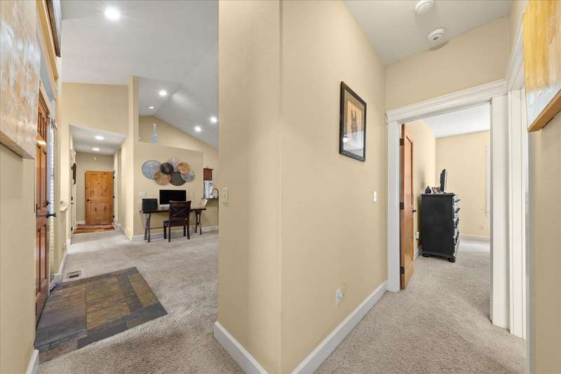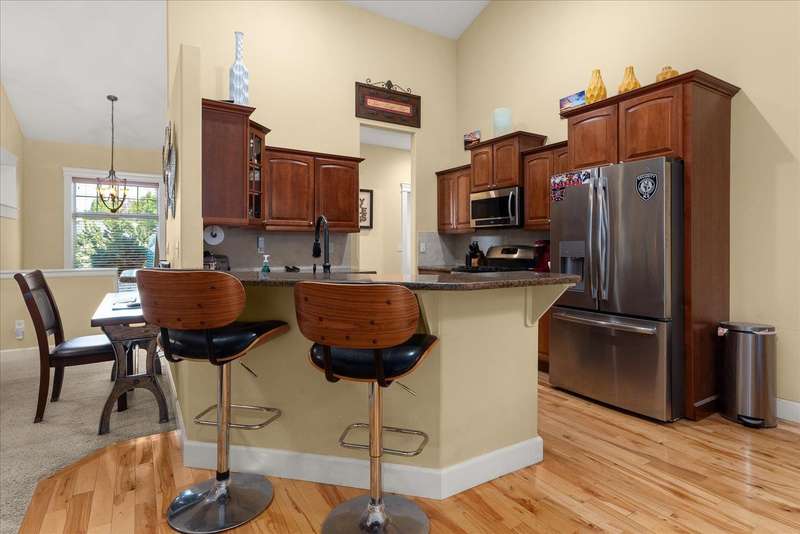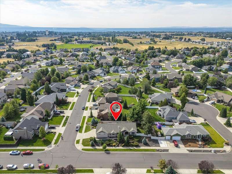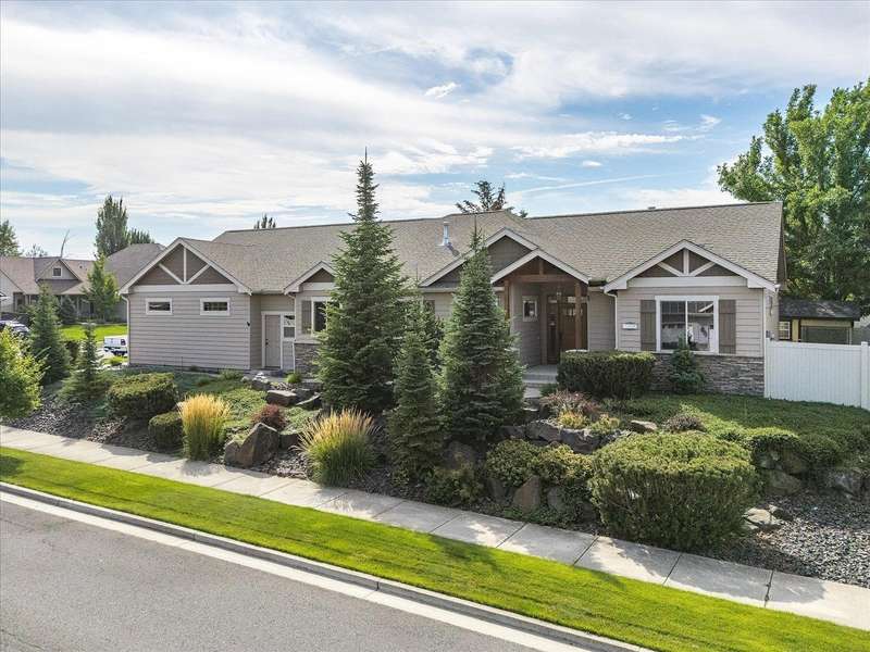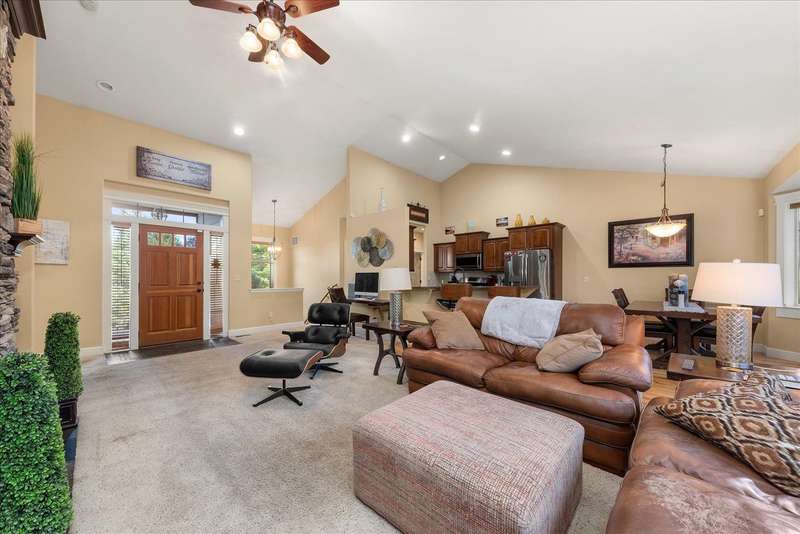 This exceptional 4-bedroom, 3-bathroom rancher in the desirable Mead School district offers over 3,700 square feet of beautifully designed living space. You will love the soaring ceilings, an open-concept layout, and upscale touches, including a stone fireplace, hardwood floors, and solid wood doors. The kitchen features abundant storage, stainless steel appliances, and granite countertops. The primary suite has everything you need—an oversized walk-in closet, soaking tub, dual vanities, and a separate shower. The newly finished lower level is the perfect gathering space for family and friends. Enjoy movie nights, a game of pool, shuffleboard, or hanging out at the bar. Don’t miss the secret storage room tucked away behind a mirror! Outdoor living is just as inviting with a spacious back deck, hot tub, and a tranquil waterfall feature. With generous storage throughout, plus a large, fully insulated, drywalled, textured, and painted 3-car garage. Don’t miss your chance to own this one-of-a-kind property.
