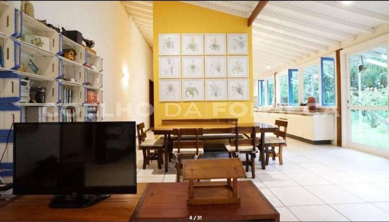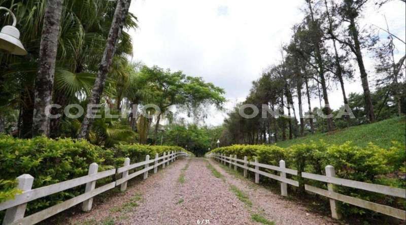 Casa principal 4 suites, salao de lazer, salao gourmet na piscina, pista de skate, campo de futebol society, pomar , horta, canil,e Capela da Abadia.