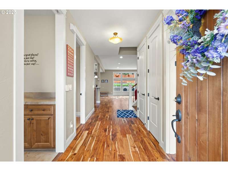 Located in a Gated community built by Bella Villa and finished in Hand troweled / Tuscany interior walls with luxury Ensuite and Kitchen. The Sellers have since added New Acacia / engineered hardwood floors throughout, New 2 tier backyard retaining wall, new grass with a new fence. Very generous side yard and private backyard to enjoy from the covered deck. The kitchen adjoins the Great room for entertaining, with complimenting upgraded features to impress your guests. You won't be disappointed in viewing this property for your consideration. Everything is neat and fits well. Tandem Garage is 20'W X 22'D 3rd bay is 14'W X 24'D gives you ample room for toys or hobbies. Mud room entry from garage makes a handy place to transition from outside in. Ring Security system can stay.