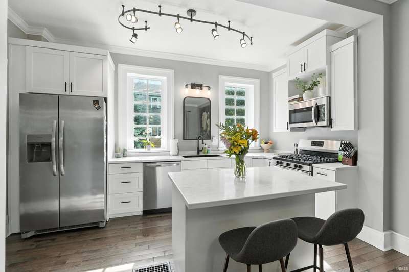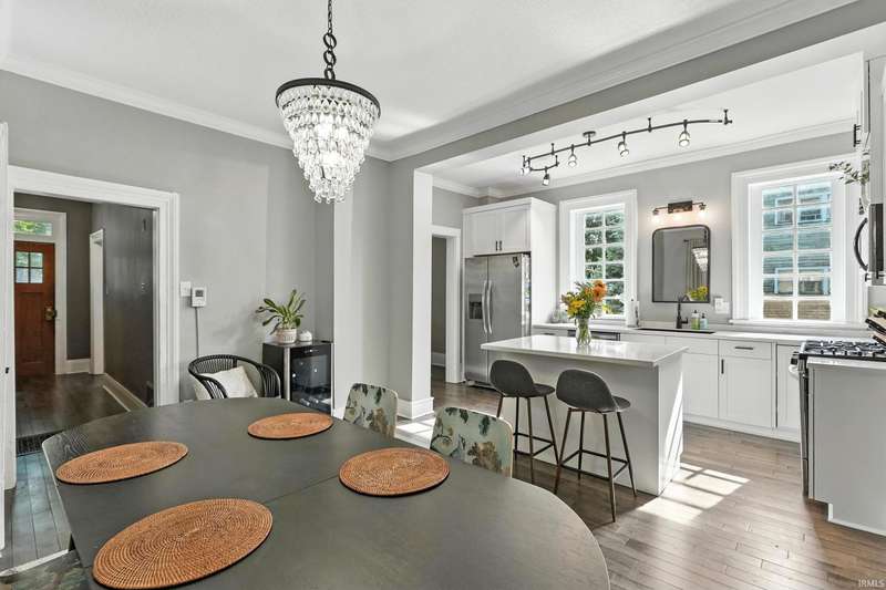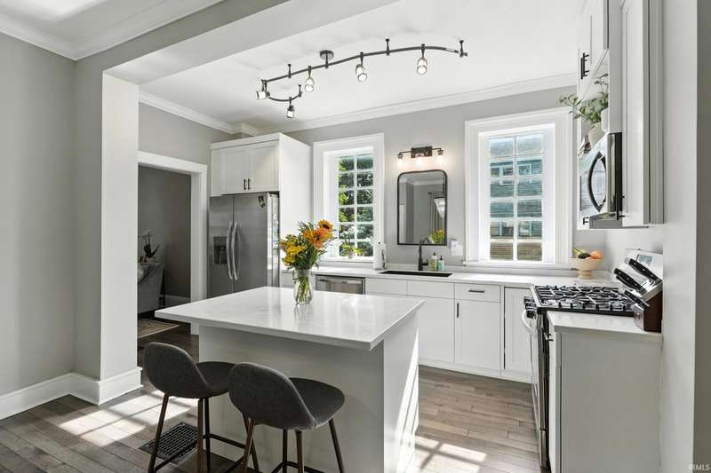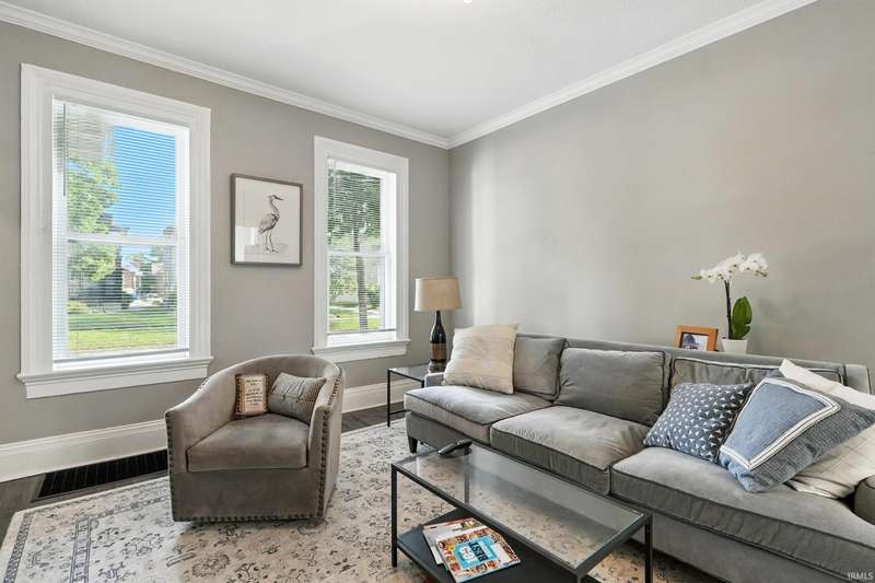 Nestled in the heart of Fort Wayne’s vibrant and historic West Central neighborhood, this thoughtfully updated home blends timeless character with smart functionality. Step inside to find inviting living spaces, new 2023 appliances (including washer and dryer), and a cozy eat-in kitchen that flows into a bonus room—perfect for a home office or creative space. The main level also features a flexible-use room ideal for a nursery, pantry, or second workspace, a convenient half bath, and a beautifully preserved full bathroom with a classic clawfoot tub. Upstairs, you’ll find three bedrooms and another full bath, including a spacious primary suite with dual closets, charming accent windows, and room to unwind. The clean, dry basement is insulated with spray foam and includes a full dehumidifier system with advanced air filtration—offering excellent storage or potential utility space. The increase in home efficiency from the foam insulation is incredible, contributing to lower energy use and year-round comfort. The home is equipped with 200-amp electrical service, and both the furnace and A/C have been recently serviced for peace of mind. Curb appeal abounds with fresh exterior paint, new front steps, professionally designed low-maintenance landscaping in both the front and back yards, and new gutters with LeafGuard installed for hassle-free maintenance. Out back, enjoy a private paved area—ideal for entertaining—and flexible off-street parking on well-maintained asphalt and gravel. This home strikes the perfect balance of original charm and modern updates—all just steps away from everything West Central has to offer.