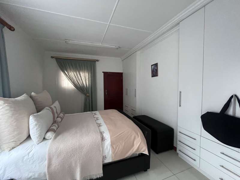 This beautiful 4-bedroom home offers space and comfort, featuring 2 bathrooms (main bedroom with ensuite), a modern kitchen, 2 lounges, and a dining area. The open-plan design creates a bright and airy feel, perfect for family living. Enjoy the convenience of a braai area and a double garage. The yard is as pristine as the house—neatly maintained and spotless. There's absolutely nothing to fix or do—just unpack and enjoy your new home! Don’t miss out—contact me today to schedule a viewing!