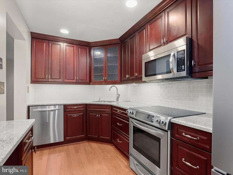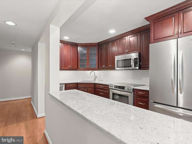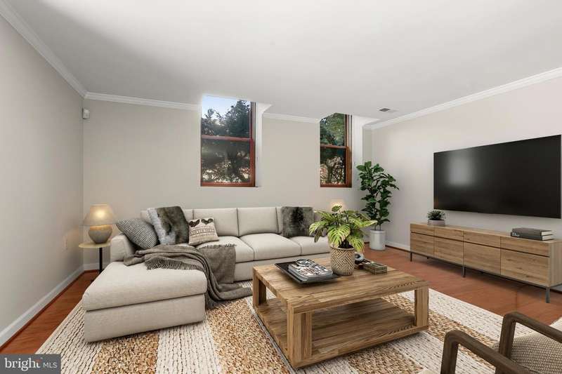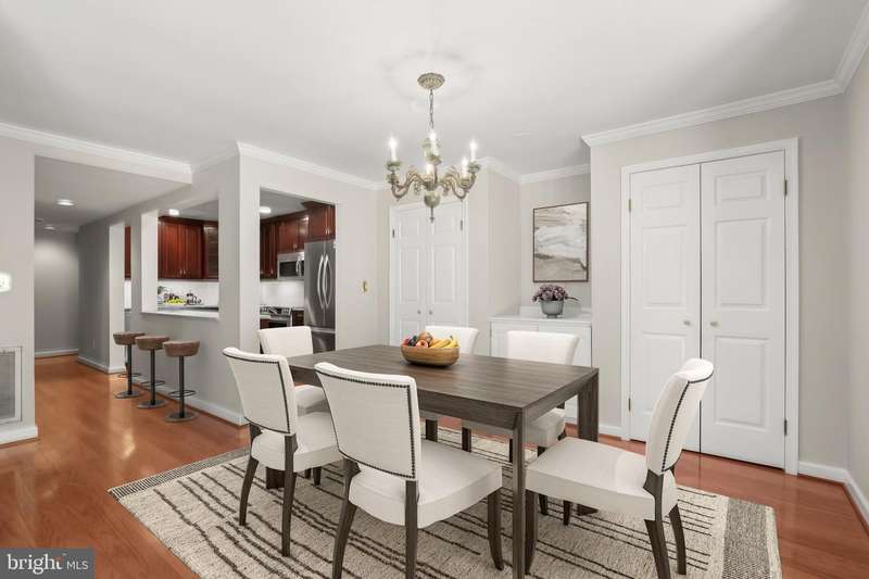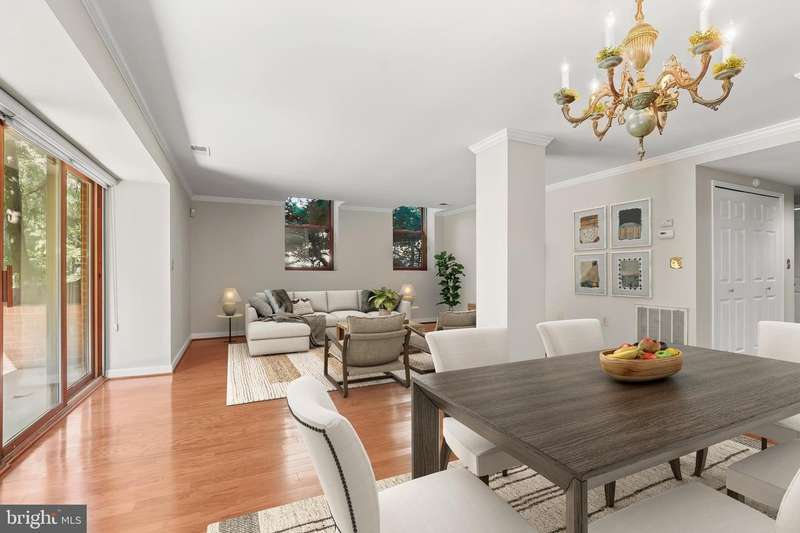 Nestled in the charming Roland Park community, this delightful 2-bedroom, 2-bathroom apartment in The Bellemore offers a perfect blend of classic elegance and modern convenience. Built in 1925, this traditional brick unit features a warm and inviting atmosphere, enhanced by crown moldings and beautiful wood floors throughout. Step inside to discover a spacious open floor plan that seamlessly combines the dining and living areas, ideal for entertaining or cozy evenings at home. The gourmet kitchen is a chef's dream, equipped with stainless steel appliances, upgraded granite countertops, and a built-in microwave, making meal preparation a joy. Enjoy the convenience of a main floor laundry area with stacking Bosch washer & dryer, ensuring that chores are a breeze. Retreat to the primary suite, complete with a luxurious en-suite bath and a generous walk-in closet, providing ample storage for your wardrobe. The second bedroom is perfect for guests or a home office, offering flexibility to suit your lifestyle. Outside, relax on your private patio, surrounded by beautifully maintained common grounds. The building offers additional amenities, including extra storage and an elevator for easy access. With an association fee that covers essential services like lawn maintenance, snow removal, and custodial services, you can enjoy a low-maintenance lifestyle. Conveniently located near public transportation and local amenities, this home is a true gem waiting for you to make it your own. Experience the comfort and charm of The Bellemore today! Note: Select interior photos have been virtually staged.