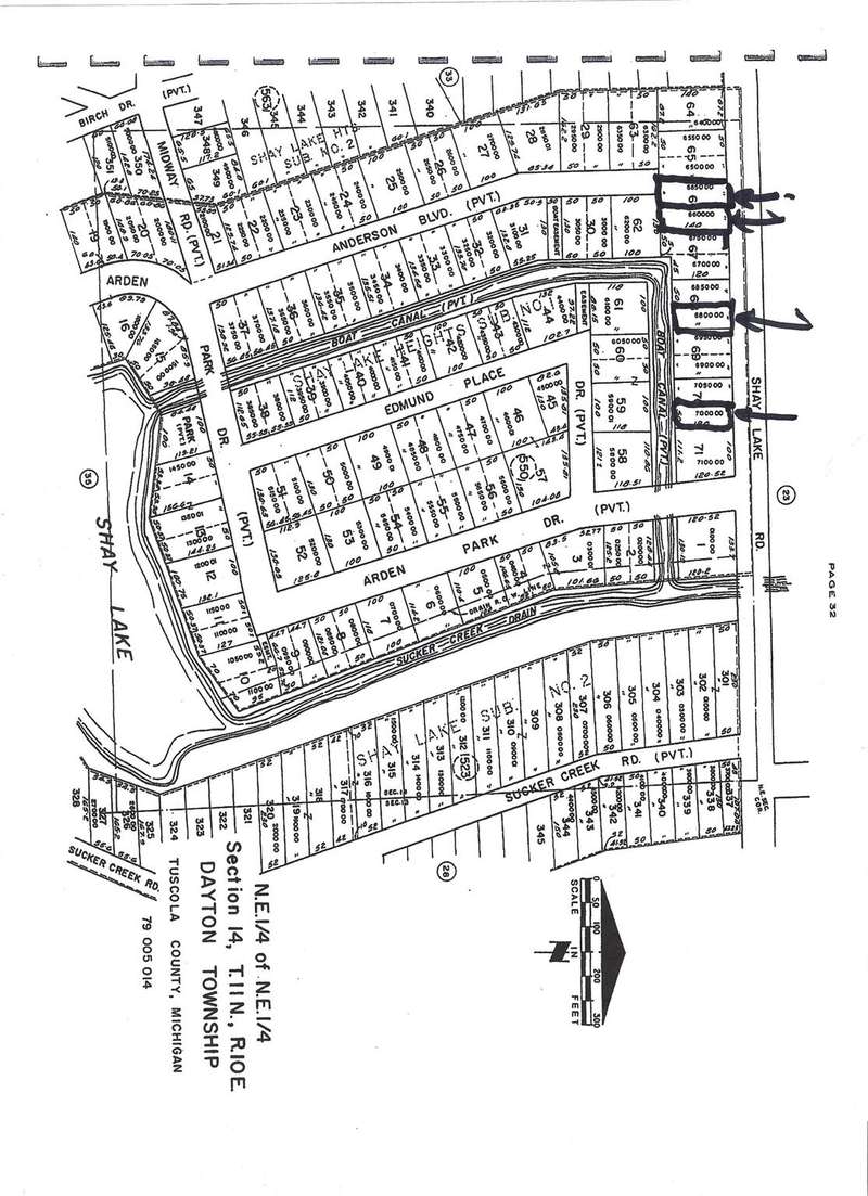 Lots located in Dayton township of Tuscola County. Part of the Shay Lake Heights Sub #1. Home owners association, $150 per year fee that includes lake access. Other lots included in picture on Shay Lake Road has a chanel running behind lot.