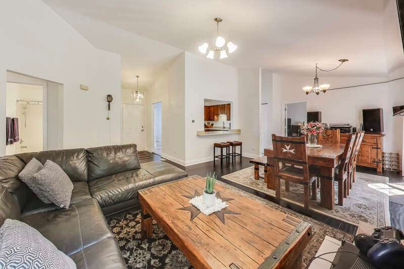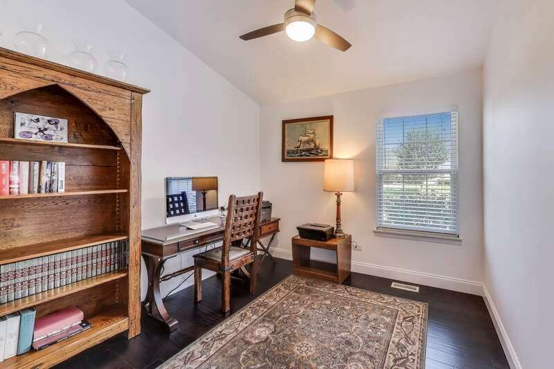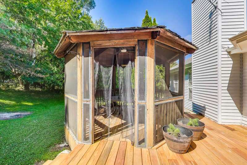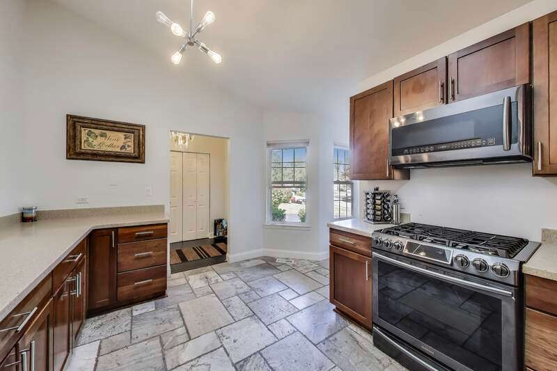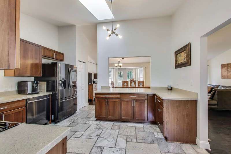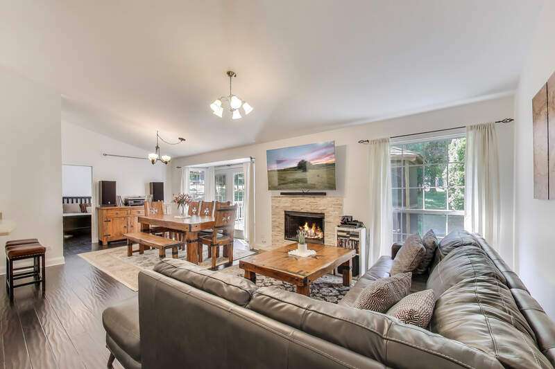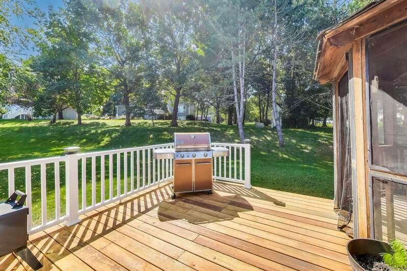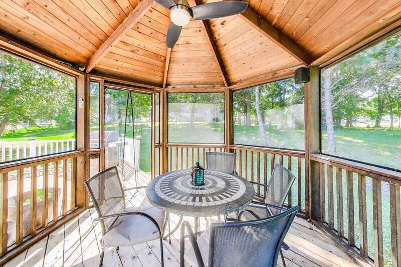 Welcome to this beautiful and ready to move in ranch. This spacious 3-bedroom, 2-bath home offers the perfect blend of comfort and style. Enjoy an open and airy feel throughout with cathedral ceilings and vaulted living room with gas fireplace. Kitchen features rich cherry cabinetry, large breakfast bar and extra cabinet storage - ideal for everyday living and entertaining. Beautiful wood and travertine flooring add warmth and elegance throughout. The primary suite includes walkin closet and a large bath with a deep soaker tub, while two additional bedrooms and a full hall bath complete the main floor. The finished basement provides abundant living space, perfect for a recreation room, home office, or guest area. Step outside to a private deck overlooking the adjacent conservation area and enjoy peaceful views from the screened gazebo. 2-car garage with side drive apron. This home is move-in ready - don't miss it!
