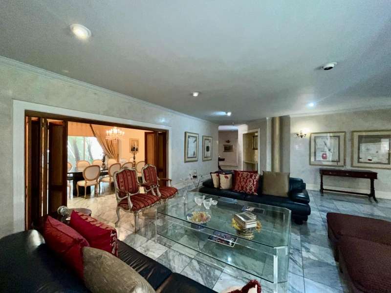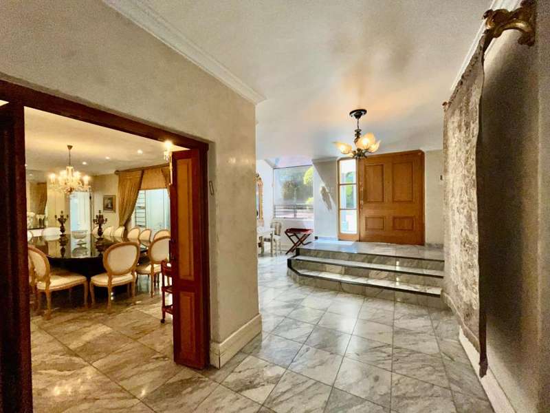 Here is an opportunity to transform a home, once the epitome of luxury and opulence and restore it to its former splendour. The solid framework provides a strong foundation for upgrades, and the spacious interiors offer considerable potential for a renovation that aligns with contemporary standards of elegance. There are 6 spacious bedrooms, some of which have balcony access. The sixth bedroom has its own independent external entrance making this a perfect work from home space. The ability to maintain separation from the main living areas, combined with ample parking, ensures privacy and ease of access. The existing squash court, whilst in need of remodelling, offers an opportunity to either restore to its original form or repurpose the space for a modern recreational facility. As the property is situated meters outside the boom, it benefits by having direct visibility from the manned station.
