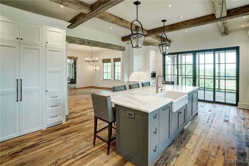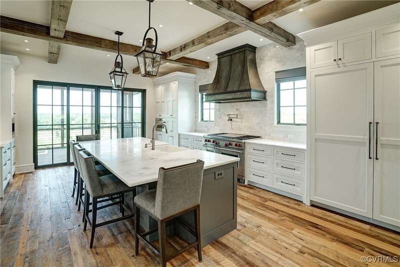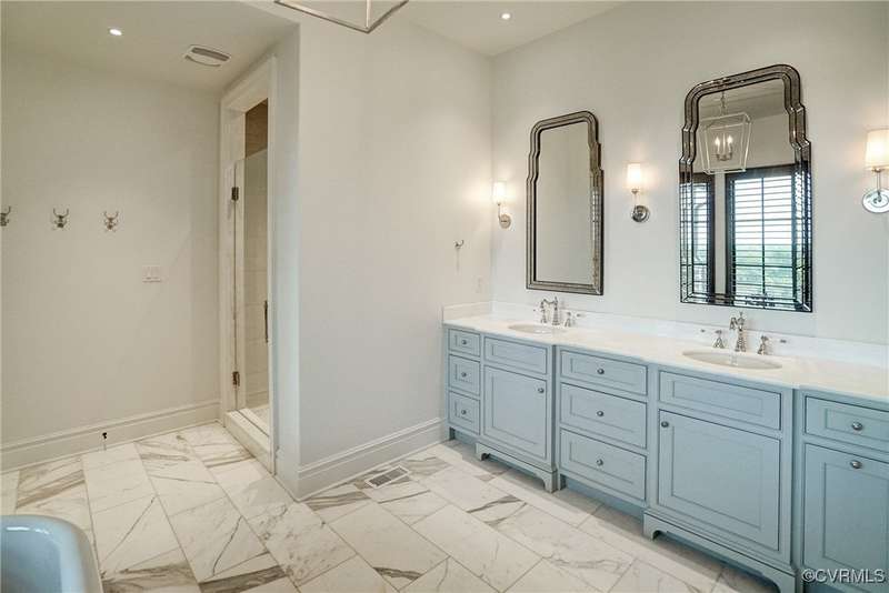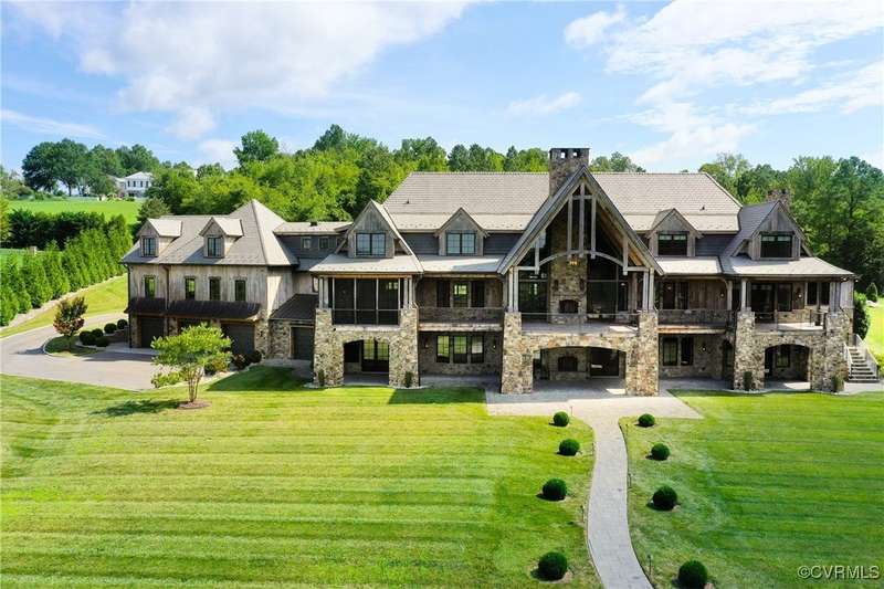 Exceptional James River views from this magnificent custom home built in 2020 by Dunkum Inc. and designed by Ensminger Architecture. Privately situated within the gated community of Pembroke on the James on the historic River Road byway close to Collegiate School, Benedictine Academy and Saint Gertrude High School. The home is appointed with DaVinci shingles, five fireplaces and a stone and brick exterior poised on a high bluff overlooking the James River. Ideally designed for a multi-generational family with private bedroom suites for everyone plus a river view private apartment with a fully equipped kitchen and living room. Key benefits include a three car garage for the main level plus a three car garage in the basement level plus a tractor garage, an elevator, a security vault, a Lutron lighting system, Geothermal heating and cooling for energy efficiency, automatic generator, outdoor lighting, irrigation system and gas lanterns. The living room is stunning with its incredible views, cathedral beamed ceiling, floor-to-ceiling stone fireplace and built-in cabinets and bookcases. The dining room with river views is open to the living room and kitchen. The fabulous marble kitchen is accented with natural wood beams and is equipped with a Wolf range, steam oven, coffee system, Sub-Zero refrigerator and freezer, Cove dishwashers and a pot filler faucet. The kitchen connects to the screened porch with the La Cantina folding door system maximizing your connection to the outdoors. In addition, expand your entertaining to the rear IPE decking with a floor-to-ceiling wood-burning stone fireplace with vaulted porch ceiling. The luxurious primary suite has a stone fireplace, a pair of closets and a marble luxury bath. A first floor bedroom suite plus private study complete the first level. Upstairs you'l find two living areas plus two more family suites. The lower level boats a family room with bar and stone fireplace, a recreation room, media room, gym and office with full bath. James River access.