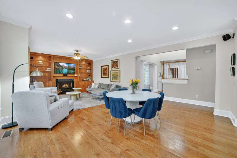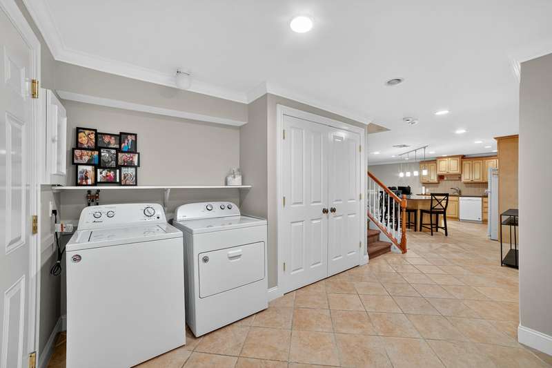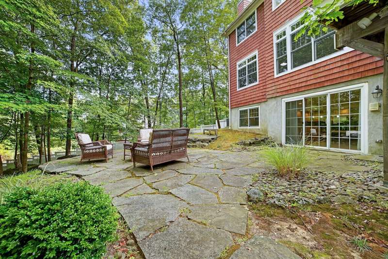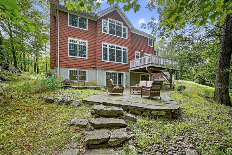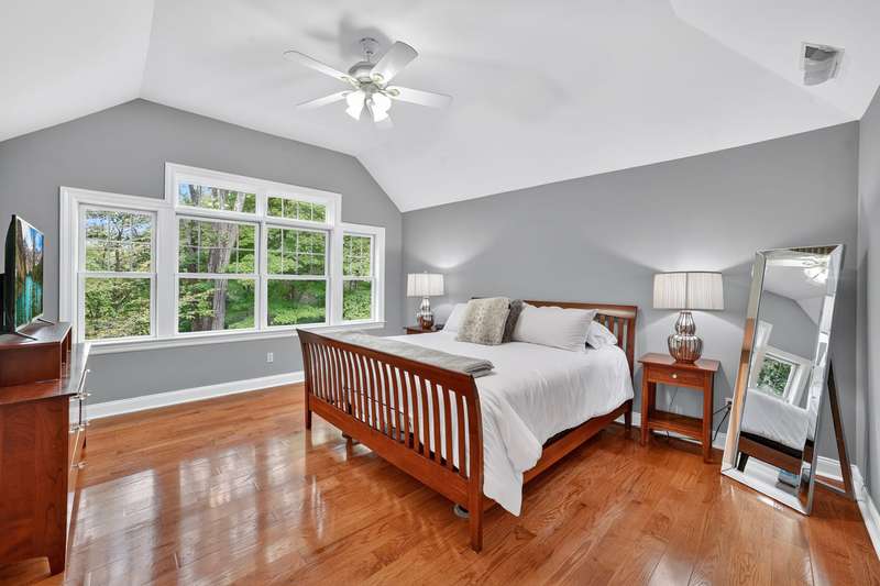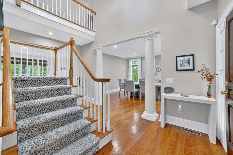 This Stunning Front Porch Center Hall Colonial sits majestically on beautifully landscaped parklike property in the cul de sac with a spectacular approach. Enjoy the greenery and privacy from the front porch, back deck or patio. The Center Hall Grand Entryway with high ceilings leads to the formal dining room and living room, these rooms are interchangeable based on your living needs. The large bay and double windows allow for so much natural light. So many options in this spaciously designed custom appointed home. The Great room with open floor plan to the Gourmet Chefs Kitchen will not disappoint. The views to your backyard are magnificent amid the greenery and seasonal plantings. The great room is expanded for table seating or extra couch and TV space with custom full wall solid wood built ins to include the perfectly situated fireplace as the focal point. Love to Cook, or Just Love to Eat, the Gourmet Eat in Kitchen with center island, cooktop and hood vent, calls for everyday meals and inviting entertaining. Grand staircase to the landing of the upper level living quarters include 5 bedrooms, Fifth bedroom can be used as a bonus room or a bedroom. The Master Bedroom En-suite is your private oasis with scenic views and large spaces. Two Walk in closets, and a Spa like bathroom, jacuzzi tub, separate stand up oversized shower, and two separate vanities. The Wide hallways to all bedrooms and bathrooms provide a grand feel. Each of the additional four bedrooms are spacious, with large closets and lovely views, with hall access to two bathrooms. Two of the bedrooms have a bathroom that has a jack & jill feel. The basement is a dream... Detailed in everyway for all your living and entertainment needs and so much more...Space for the entire family to Relax together, Game room, Playroom, Work from home office, Mother/Daughter space for Multi-generational living, Au Pair quarters. Your choice! A super efficient Radiant floor heating system services this lower level. Oversized Sliding glass doors to the outdoor slate paved patio provides for your very own private oasis with an expansive backyard. The Private and Organic feel of the outdoor space surrounding this entire property is like no other... Many possibilities for backyard fire pit nights, sporting games, and outdoor amenities, You will live your dream life here!