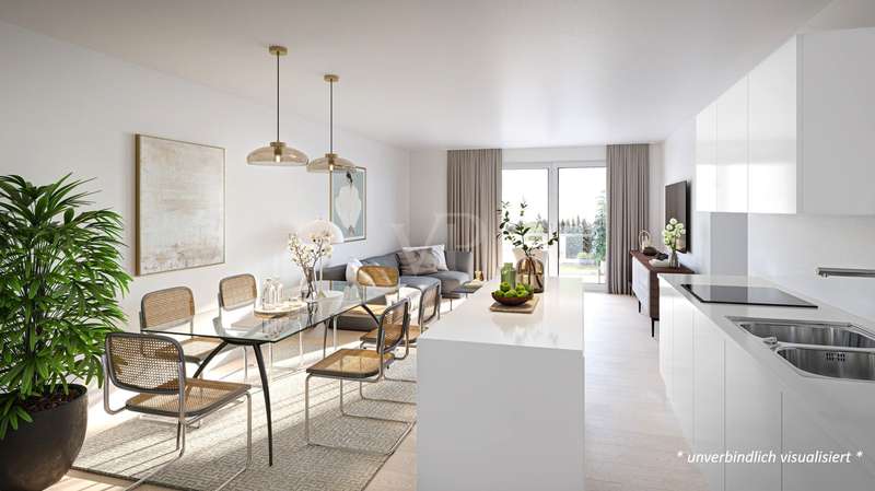 The 3.5-room apartment on offer on the 1st floor has a size of approx. 98 m² and impresses with its advantageous layout and bright, spacious rooms. The daylight bathroom and the beautiful, covered balcony with a view of the greenery offer you pleasant living comfort at an exclusive level. The elevator and level-access shower allow barrier-free living for all age groups. The apartment has high-quality oak parquet flooring and oversized tiles. The central and quiet residential location as well as the good connections to Ludwigsburg and Stuttgart make this well-designed apartment even more attractive.