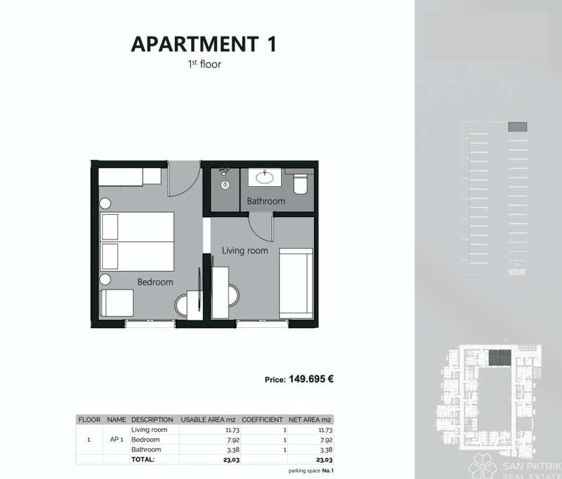 The interiors are finished with great attention to detail: bathrooms with kerok furniture resistant to water and impact, large-format ceramics, matte white sanitary ware with gold details, indirect lighting, designer interior doors and Diere security entrance doors. Apartments are equipped with a smart management system via app, while the entire complex is under video surveillance, ensuring safety and comfort.