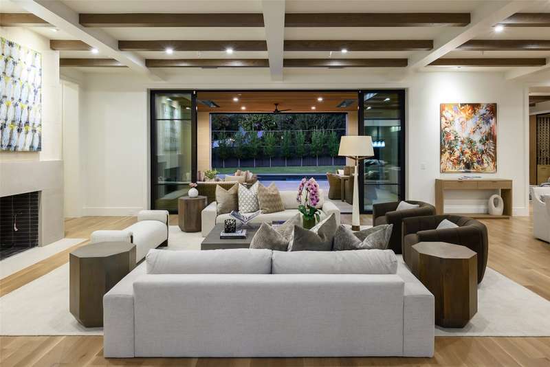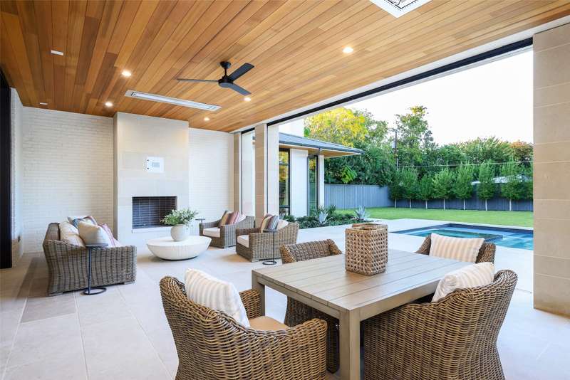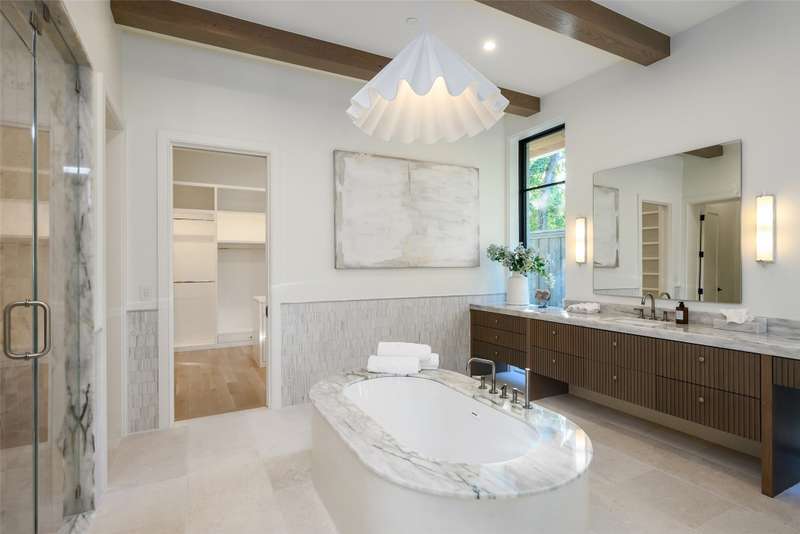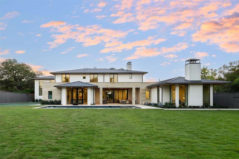 New construction masterpiece by Hudson Construction Group and Janson Luter Architects, located on a fully gated 0.675-acre lot in the prestigious heart of Preston Hollow. This light and bright home features an open floor plan designed for effortless entertaining year-round. The first floor offers a spacious primary suite, a guest bedroom, and formal living and dining areas, along with a gourmet kitchen that seamlessly flows into the breakfast area. Upstairs, the second floor features three generous ensuite bedrooms and a media room, a flexible space that can serve as a sixth bedroom or a fully equipped gym. Additional highlights include a large walk-in pantry with a scullery kitchen, two utility rooms, a private study, a comfortable lounge room with a sizable wine closet, and an elevator for easy access to all levels. Step outside to your backyard oasis, complete with a living area, sparkling pool, sports court, and a spacious yard.