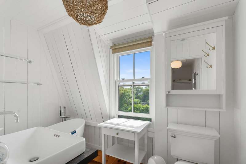 With a striking presence overlooking Nantucket Sound and just moments from the vibrant pulse of downtown, this distinctive compound is infused with a laid-back West Coast spirit while honoring the vintage charm of Oak Bluffs. Airy and effortlessly elegant, the four-bedroom main house has been masterfully updated, introducing refined, contemporary comforts, designed for every season. Tucked to the rear of the property, a private guest house-affectionately known as The Nest-has undergone a similar transformation and offers a private escape. Adjacent to the main home, the charming bunk house completes the ensemble, perfectly complementing this unique and inviting expansive compound. Though the wraparound porch invites you to linger with its endless ocean views, the nearby beaches, boutique shops, acclaimed restaurants, and the contagious energy of Circuit Avenue and the Harbor are all steps away, offering something for everyone to enjoy. For those seeking flexibility, the home's established rental history further highlights the desirability of both the property and its coveted location. An exciting opportunity to own in one of Oak Bluff's iconic settings! The Nest is a 616-square-foot guest house with a private deck, an outdoor shower, and a parking area. The living space is located on the first floor and has a full bath. The upstairs bedroom, with a private balcony, overlooks Farm Pond to Nantucket Sound. Mini-splits provide heat and air conditioning. The Lilac House -This fun bunk house, perfect for the younger generation, is open-concept, has a full bath, front deck with waterviews, and a private outdoor shower and deck. Mini-split provides heat and air conditioning.