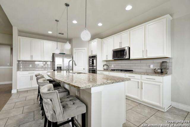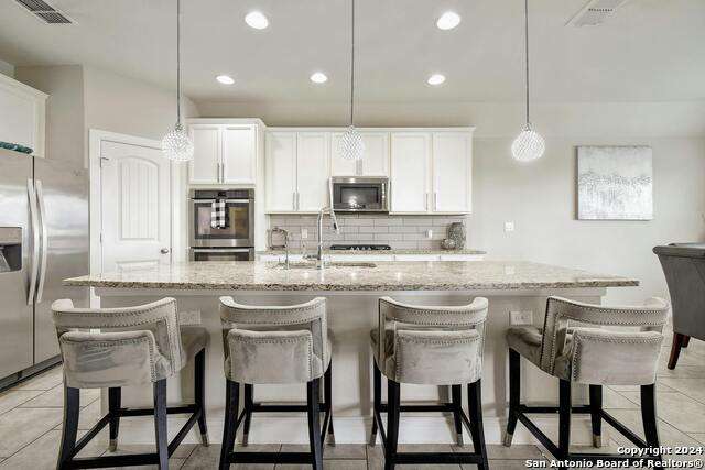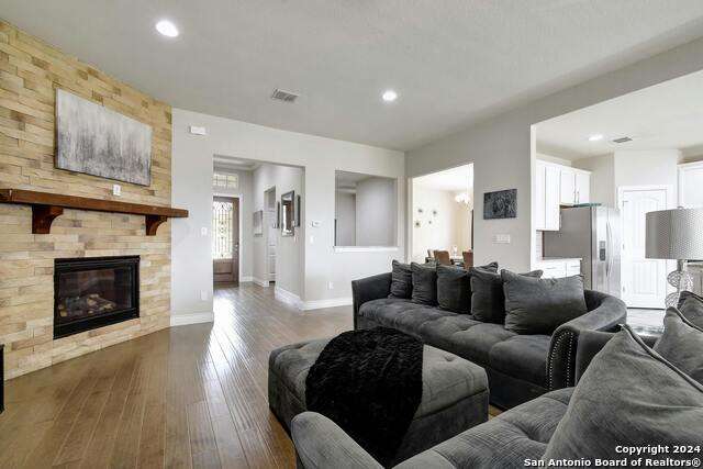 SELLER OFFERING $10,000 IN CONCESSIONS TO BE USED AT BUYERS DISCRETION! Well appointed spacious home in desirable Indian Springs Subdivision. Light bright open floor plan. Kitchen features double oven, granite counter tops, gas cooking, spacious island. Cozy fireplace in living room. Wood flooring with carpeting in bedrooms. Separate study with french doors. Separate work station/Bar area conveniently located next to main living area, kitchen and dining room. Large Primary bedroom with ensuite bathroom featuring a walk in shower. Ample size closets. New carpet in all bedrooms. Covered patio with large yard. Great location, amenities and school! Come home, Relax and enjoy the spectacular view from this home's covered patio or enjoy the fun community pool!