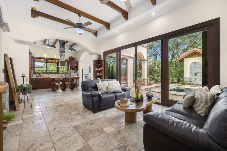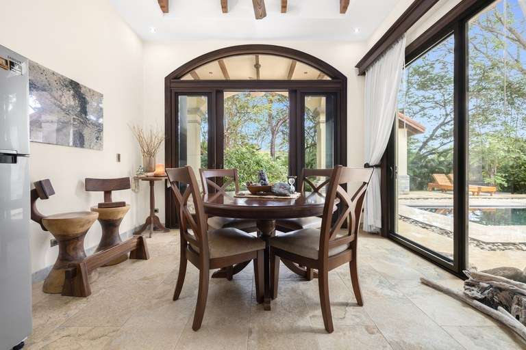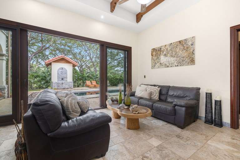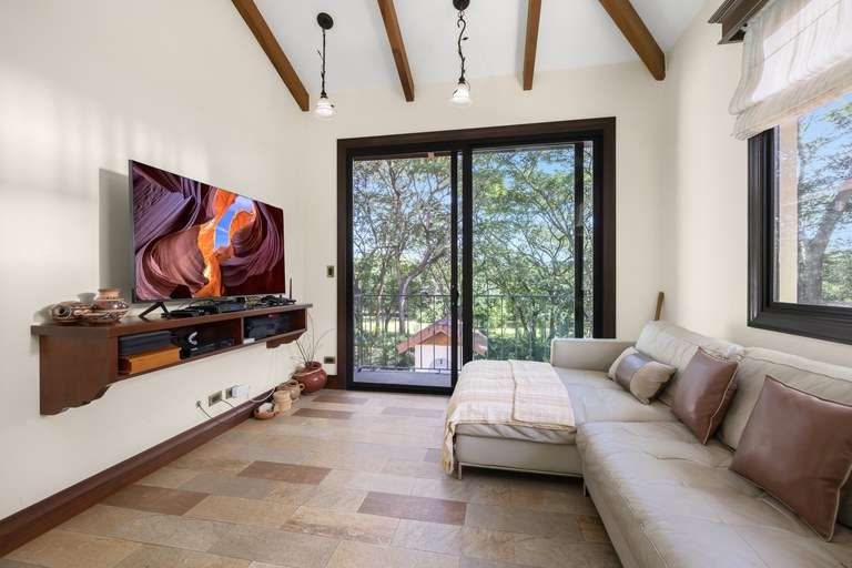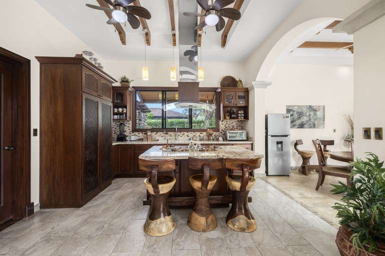 At the center of this community is Casa Serenity, a property that embodies the charm and tranquility of Las Brisas. Situated on half a hectare of land, Casa Serenity is surrounded by lush landscaping, well-maintained gardens, and trees that provide shade and freshness, creating an atmosphere of peace and privacy. This two-story home features authentic and carefully designed spanish colonial architecture, with details that capture the essence of Hacienda Pinilla's classic style. The outdoor living areas, spacious terraces, and elegant pool area integrate seamlessly into the property, creating ideal spaces to enjoy the tropical climate and share unforgettable moments with family and friends.