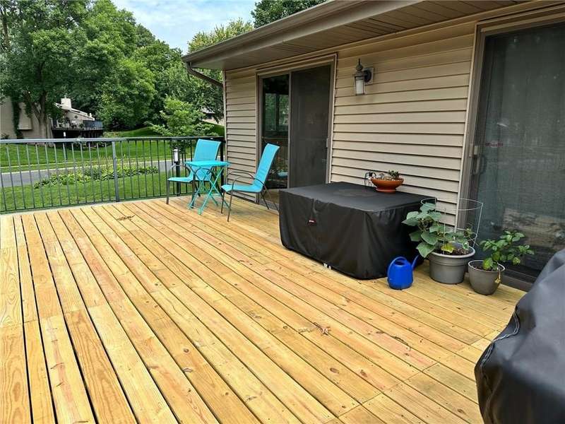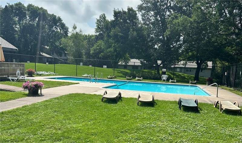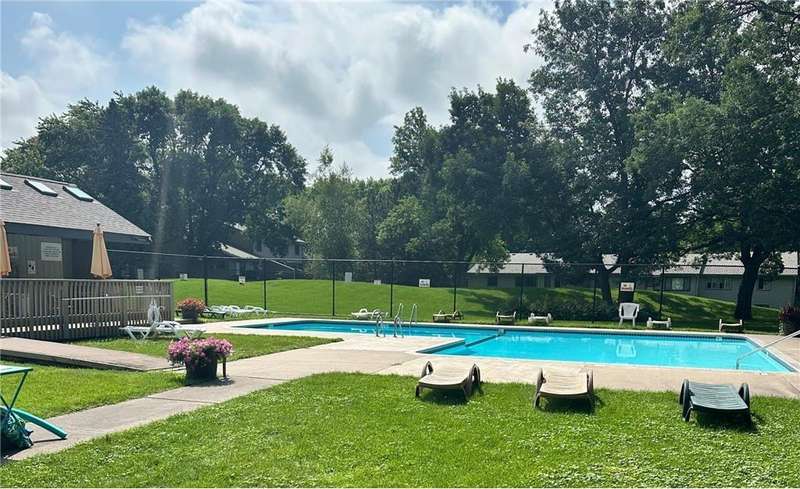 End unit townhome in a private treed setting. Has three bedrooms, vaulted ceilings, hardwood floors, patio door in primary bedroom leading out to the expansive deck. The deck is 24x12- plenty of room to entertain. All new deck boards, new roof and newer water heater. Enjoy the Association's in-ground pool and tennis courts. Convenient location.